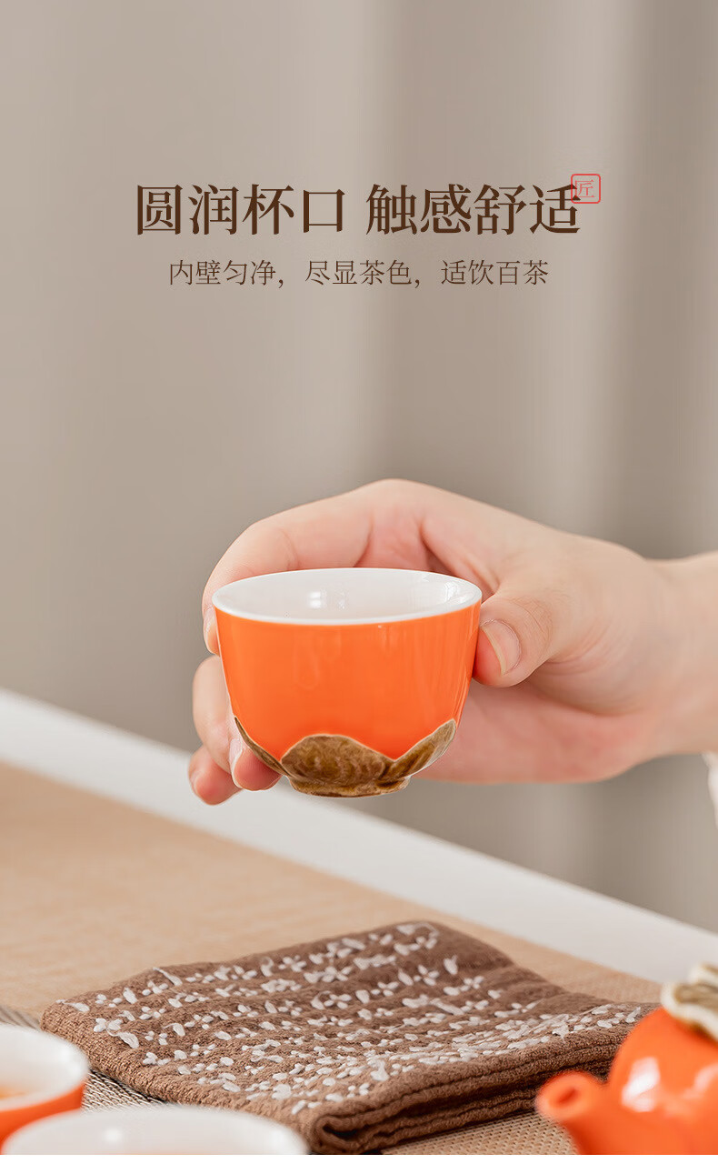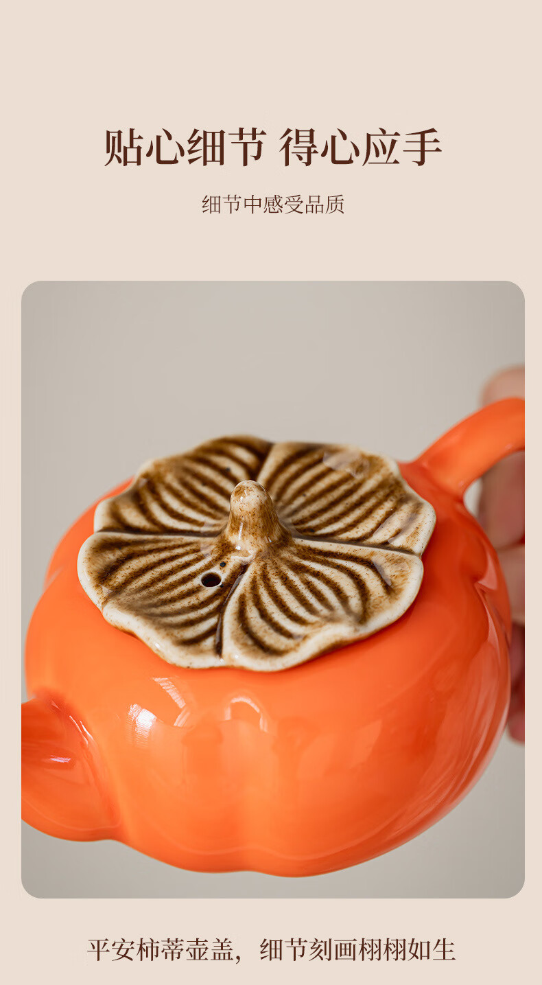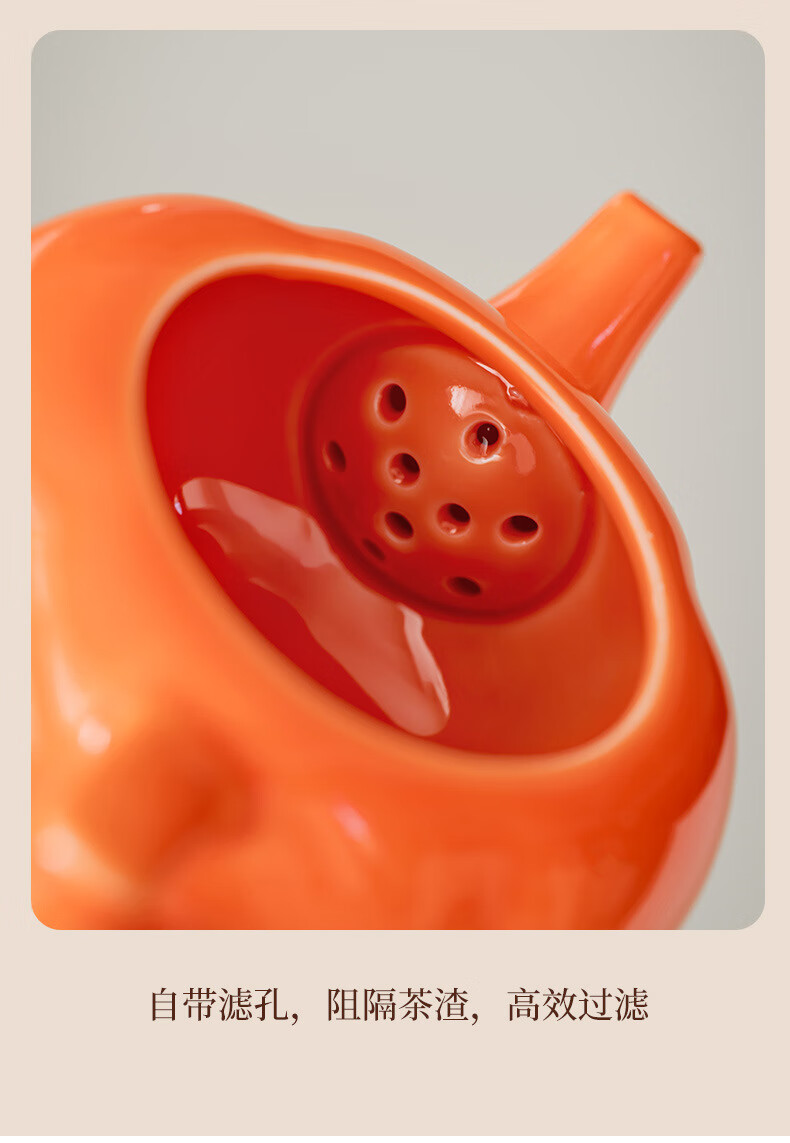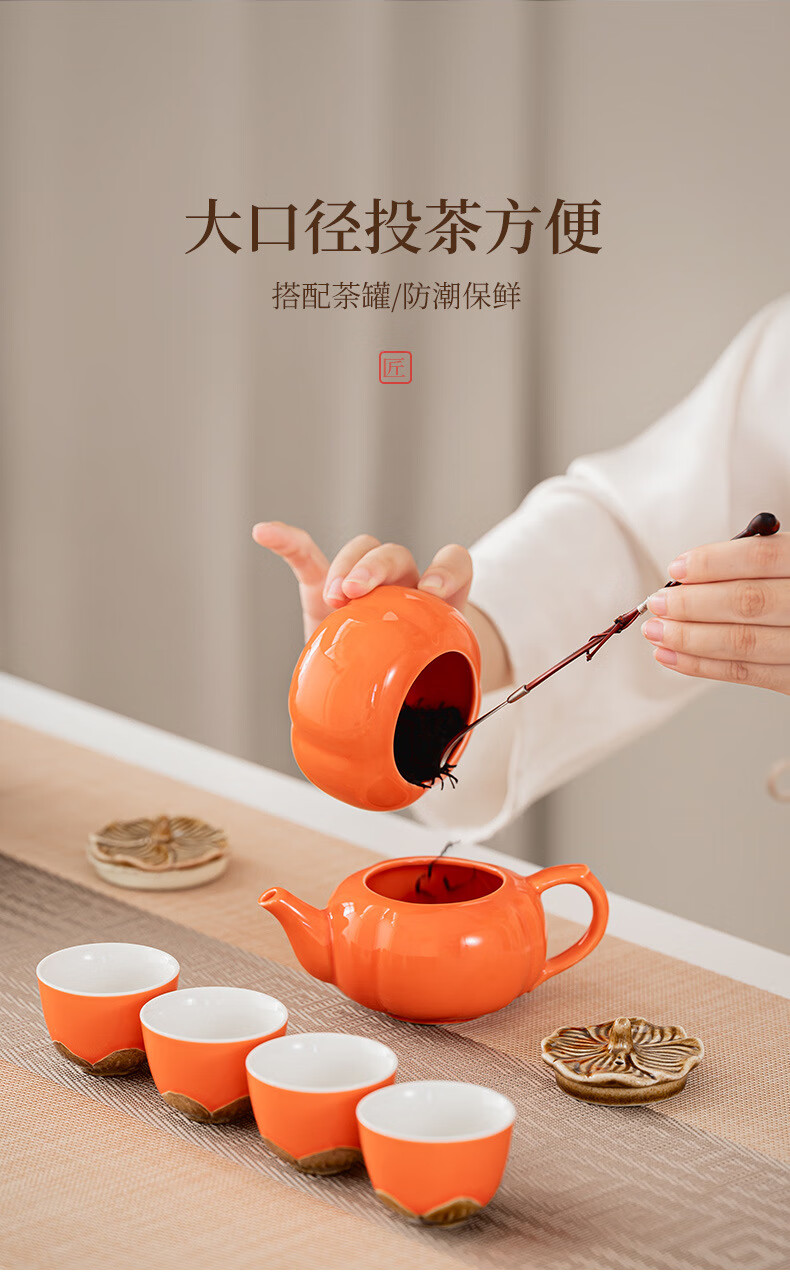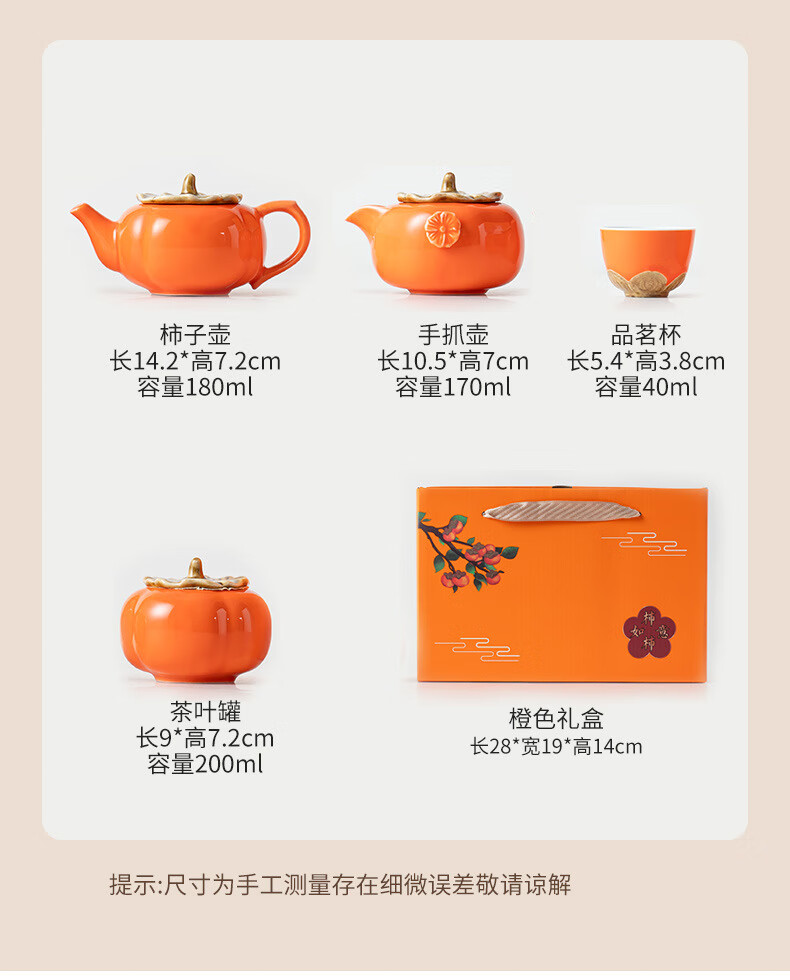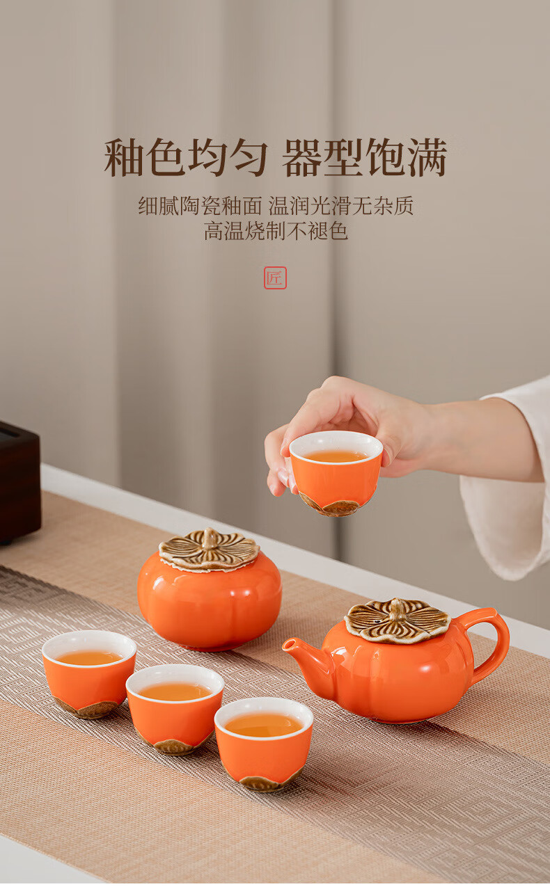 Qianliyuan Company's small gifts for business opening events, customized practical tea sets, annual meeting prizes, and souvenirs for customers. Orange-Persimmon Pot, one pot, four cups + can (orange gift box)