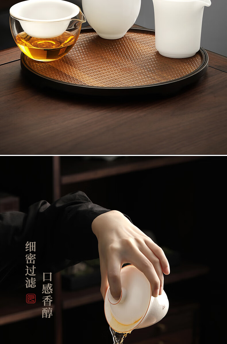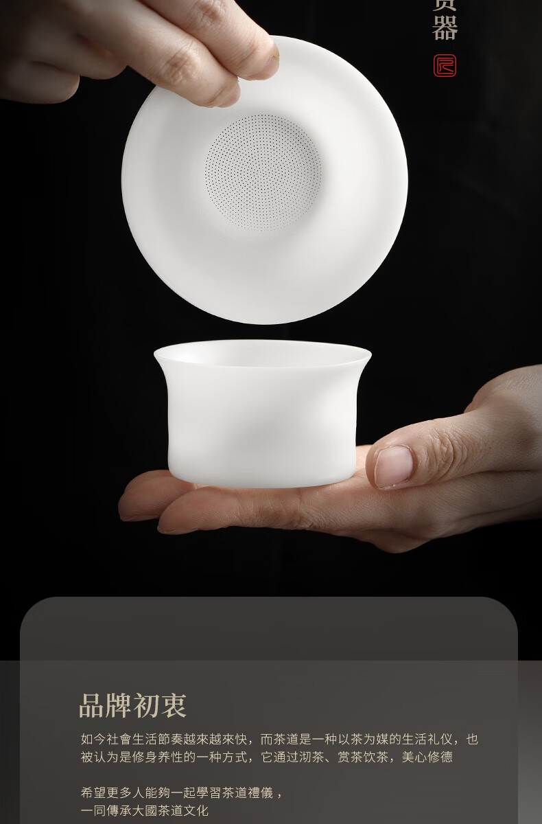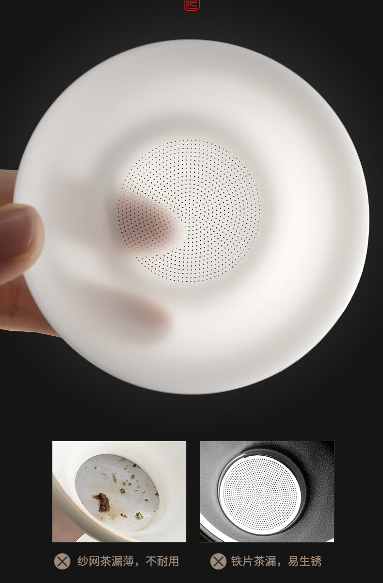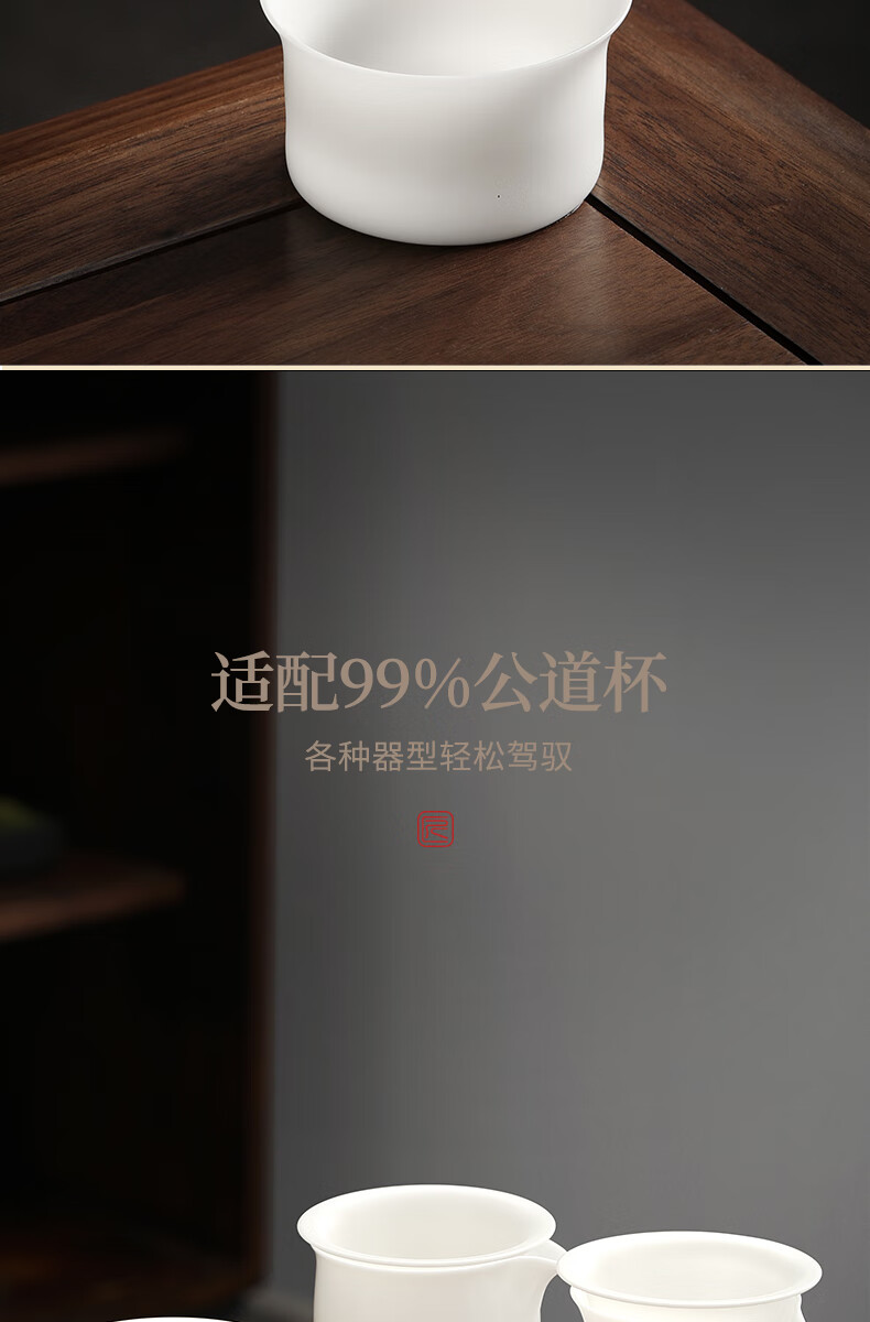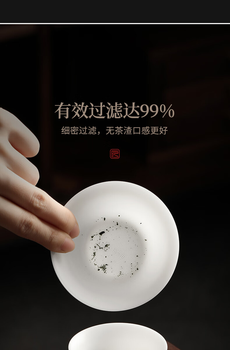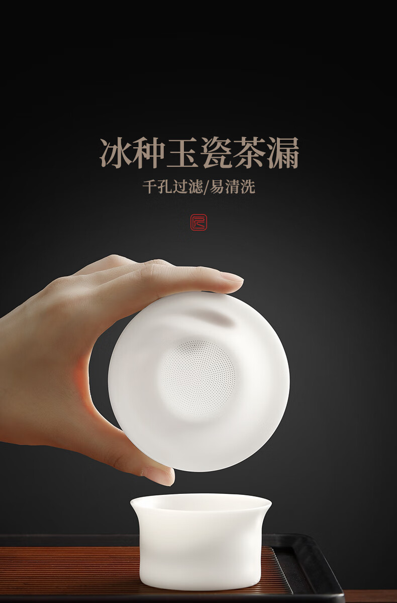 Shangyanfang Ice-seed mutton-fat jade tea leakage tea filter white porcelain tea filter mesh tea tea all-in-one ceramic new tea strainer unburned ice-seed white gel tea leakage set (1000 holes)