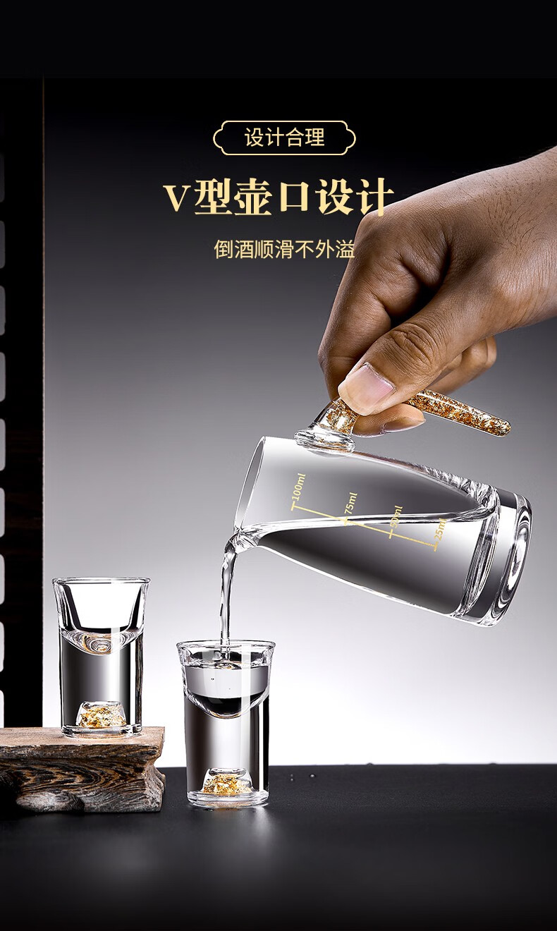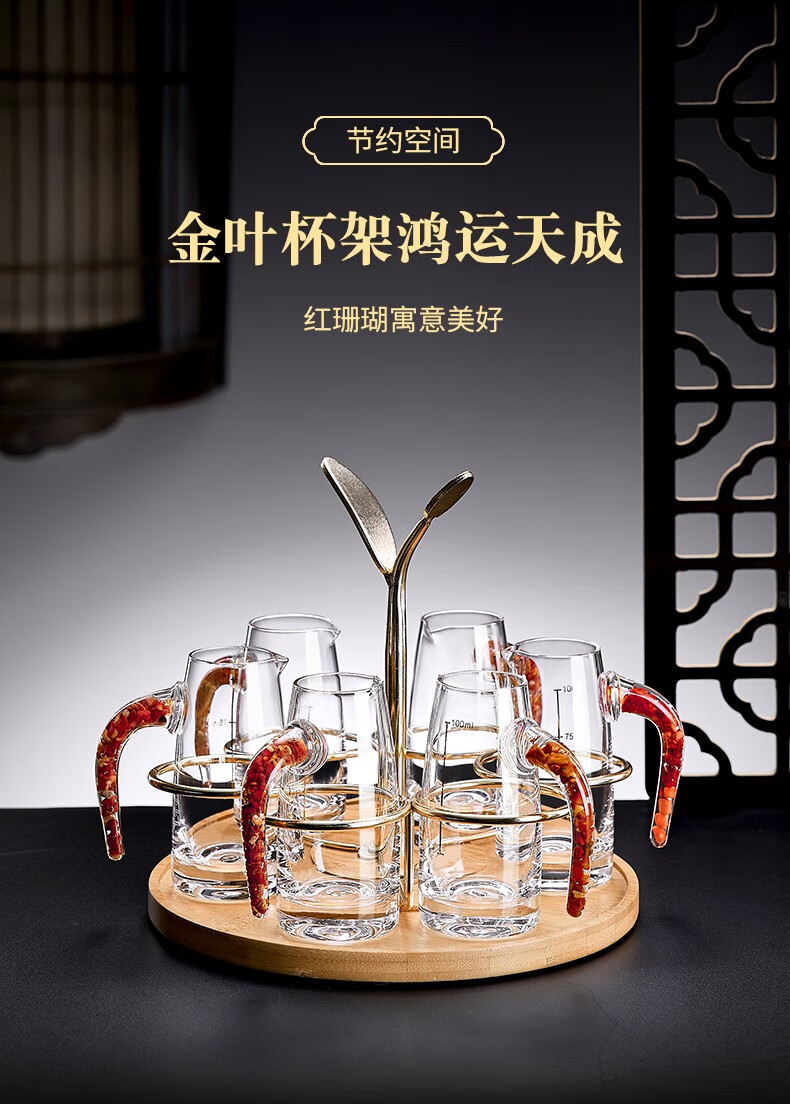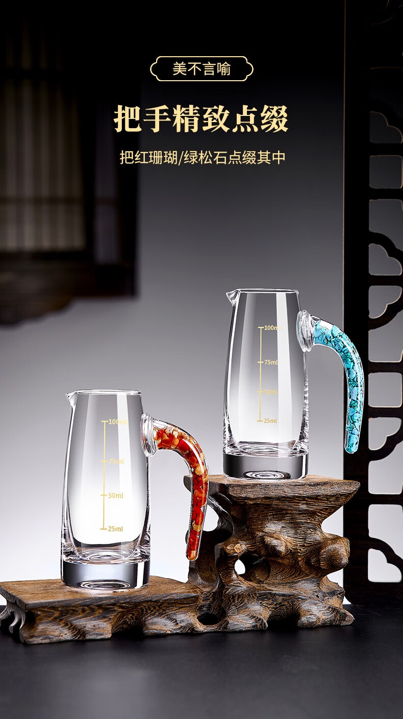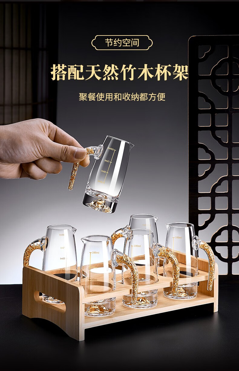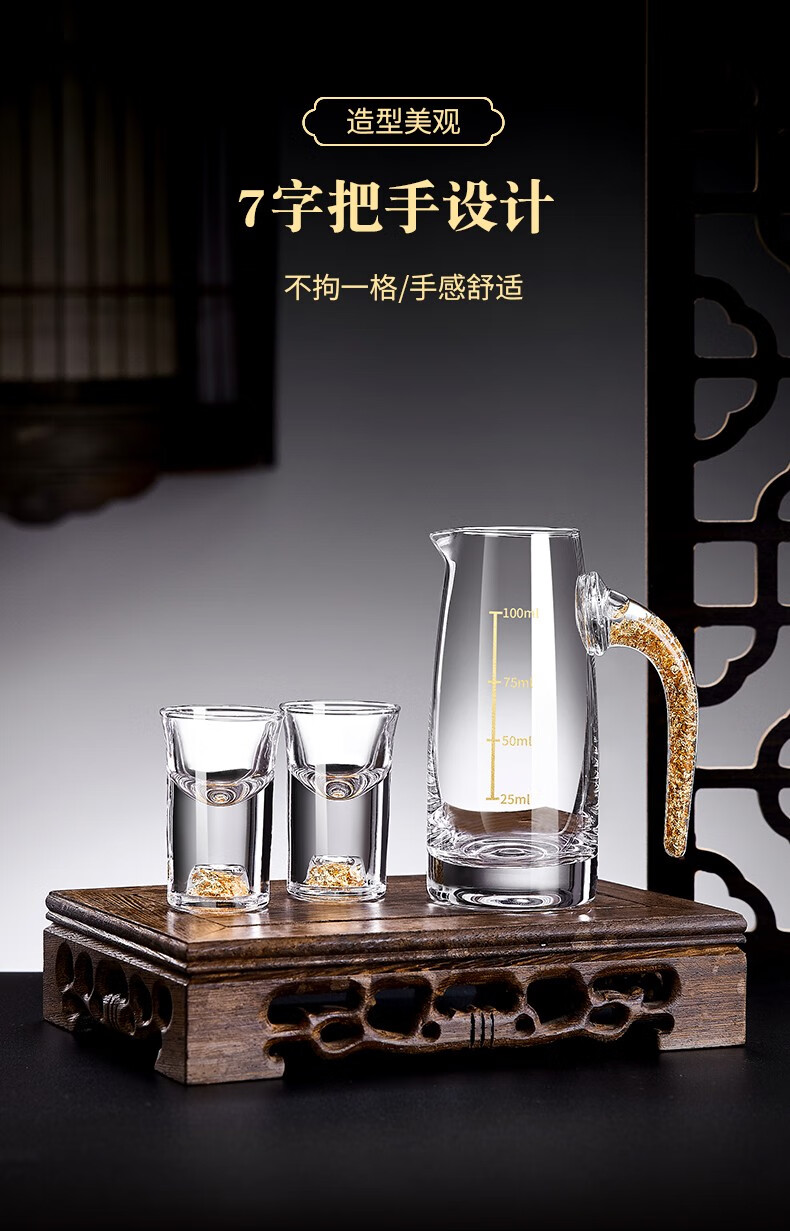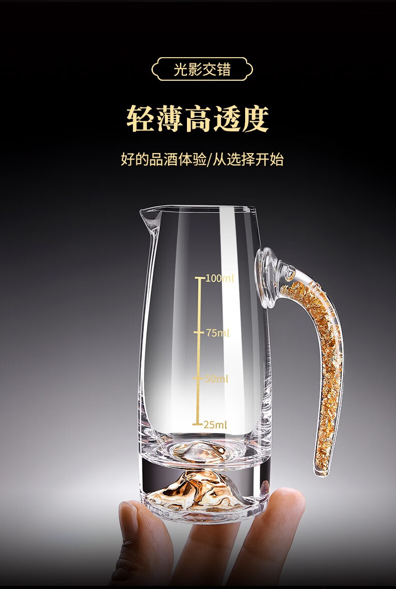 Green Apple Liang Liang Liquor Wine Divider Set Home Small Wine Measuring Glass Wine Glass Red Wine Decanter with Scale 6 Gold Foil Wine Divider x6/100ml
