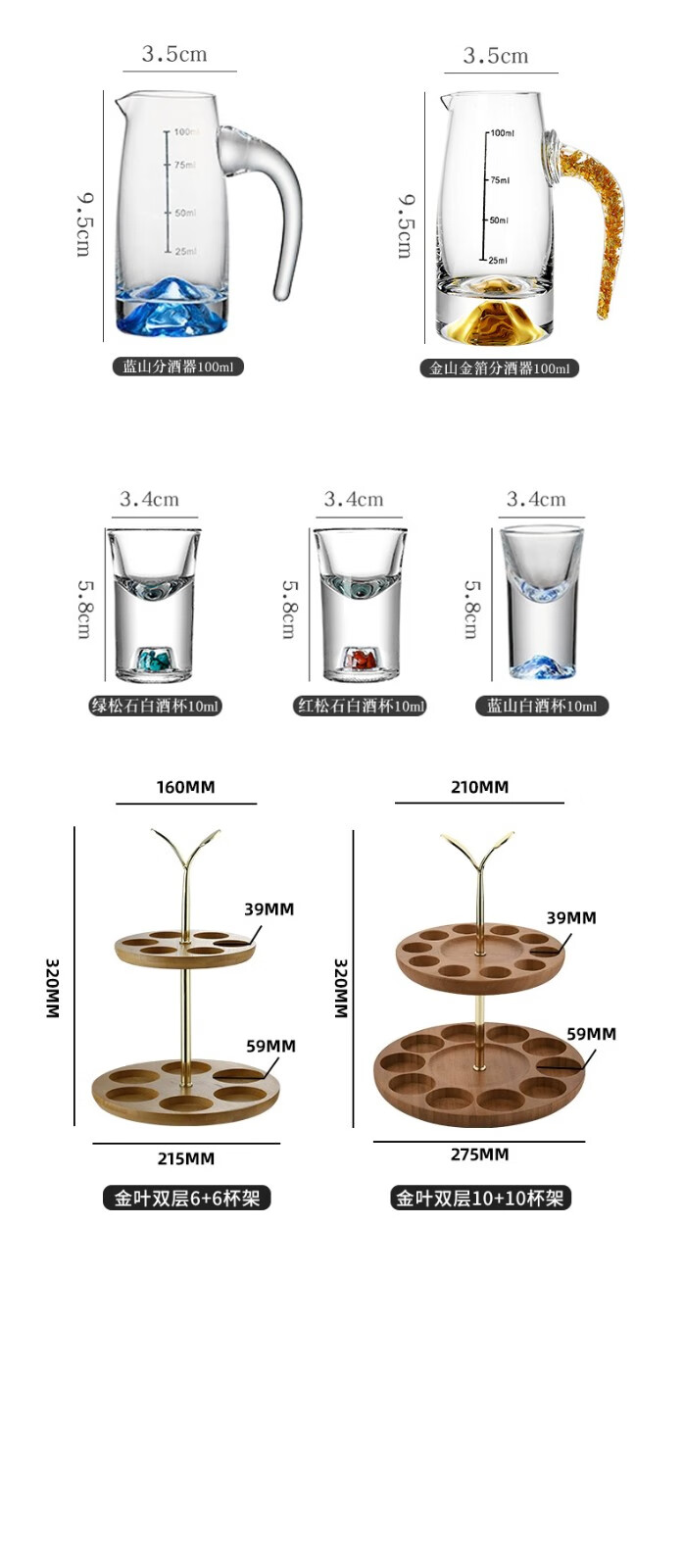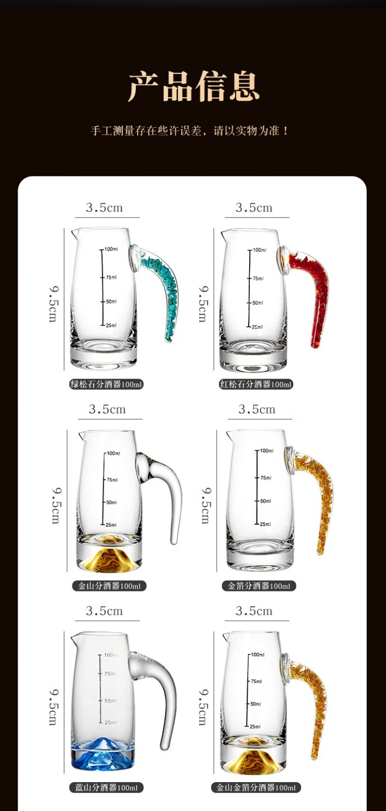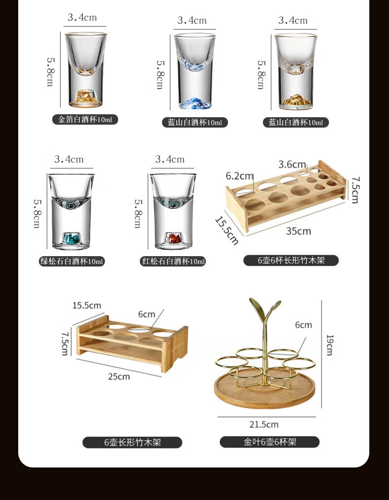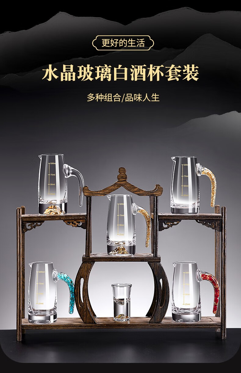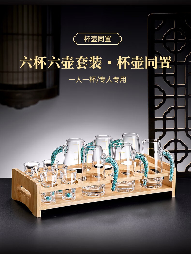 Green Apple Liang Liang Liquor Wine Divider Set Home Small Wine Measuring Glass Wine Glass Red Wine Decanter with Scale 6 Gold Foil Wine Divider x6/100ml