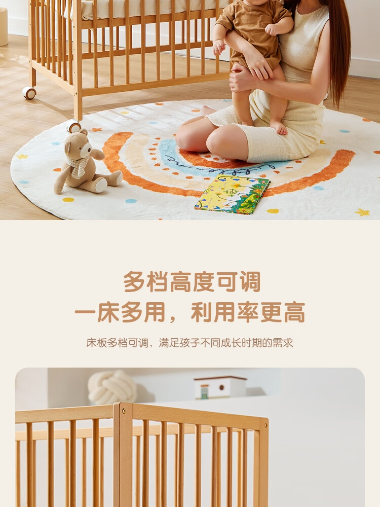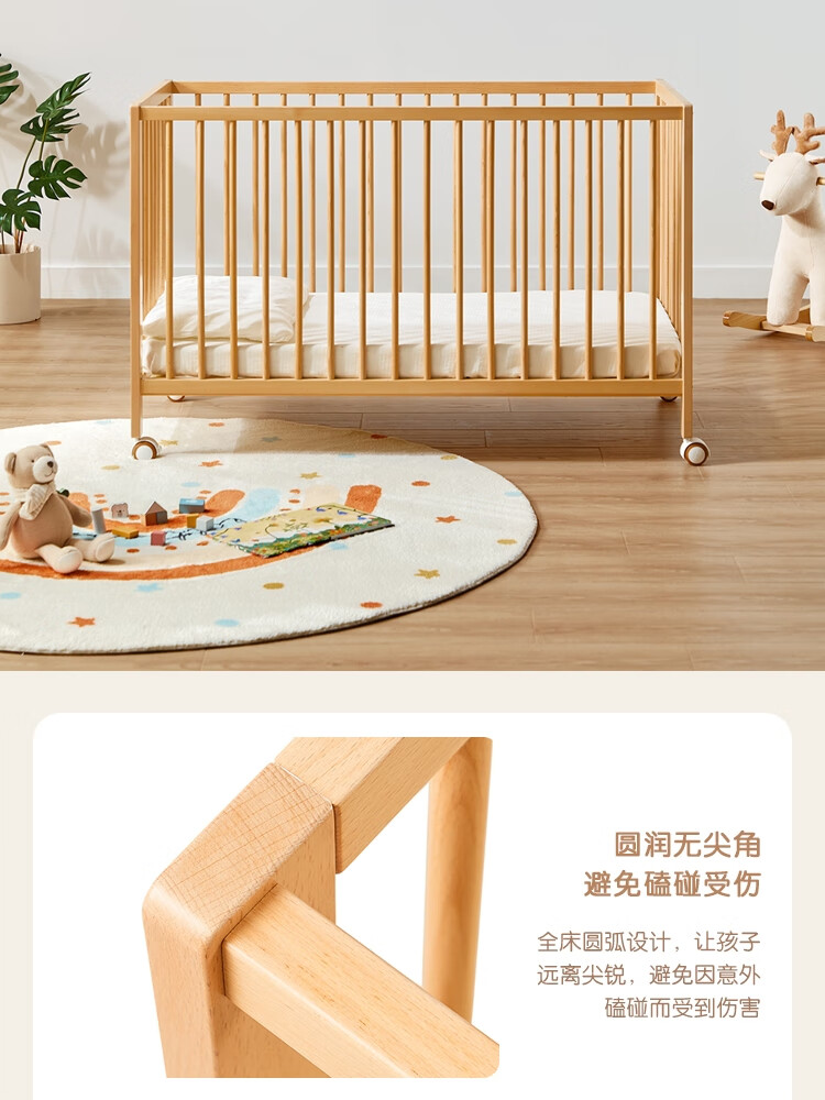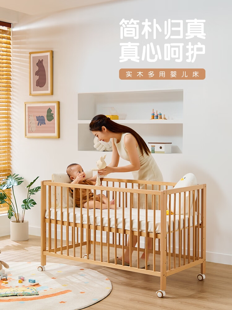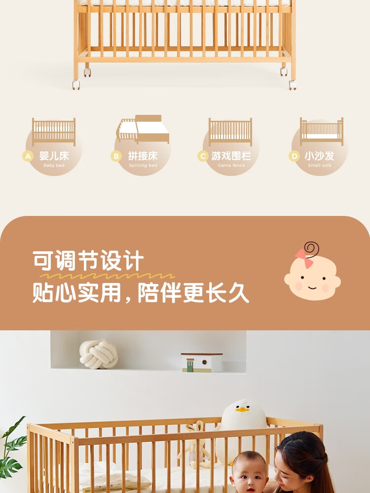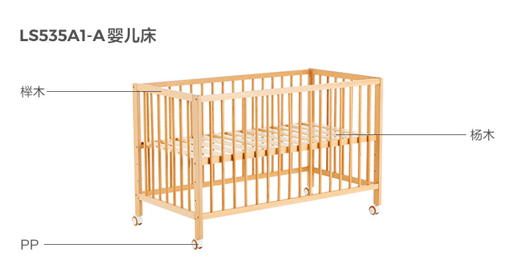 LINSY KIDS Lin's home crib spliced large bed all solid wood bed multi-functional removable baby bed LS535 crib (0.6*1.2) + mattress