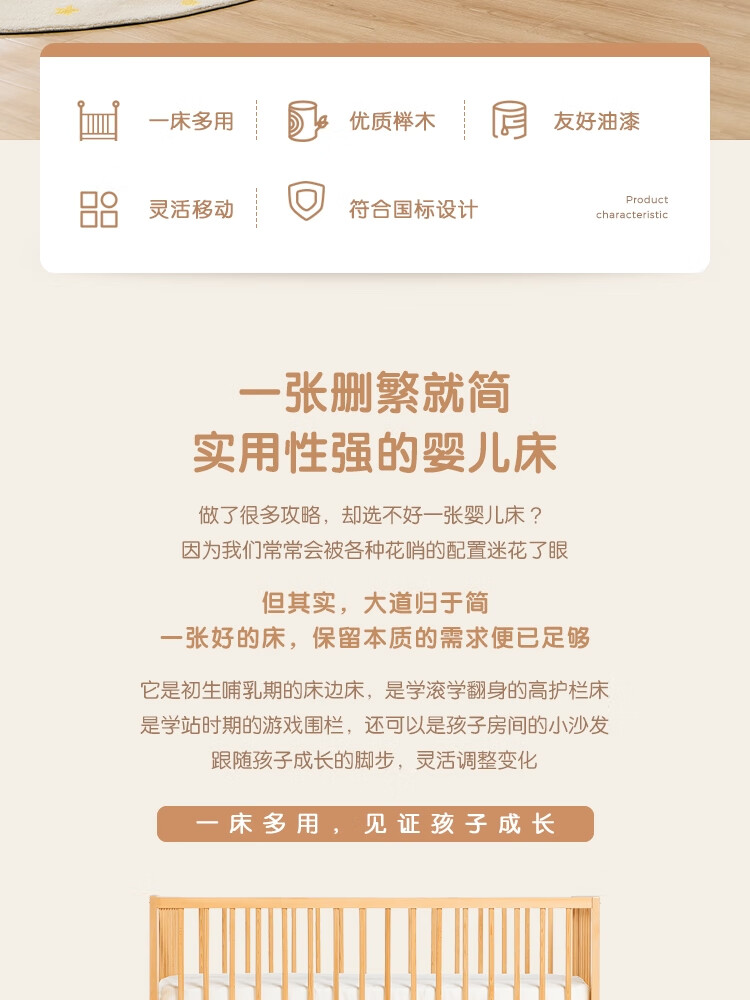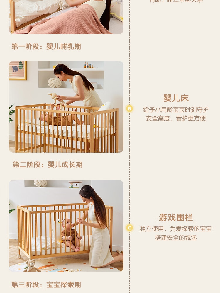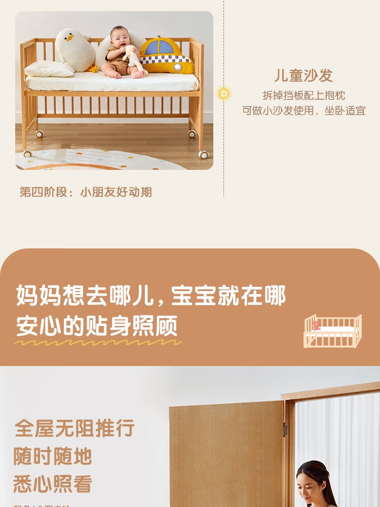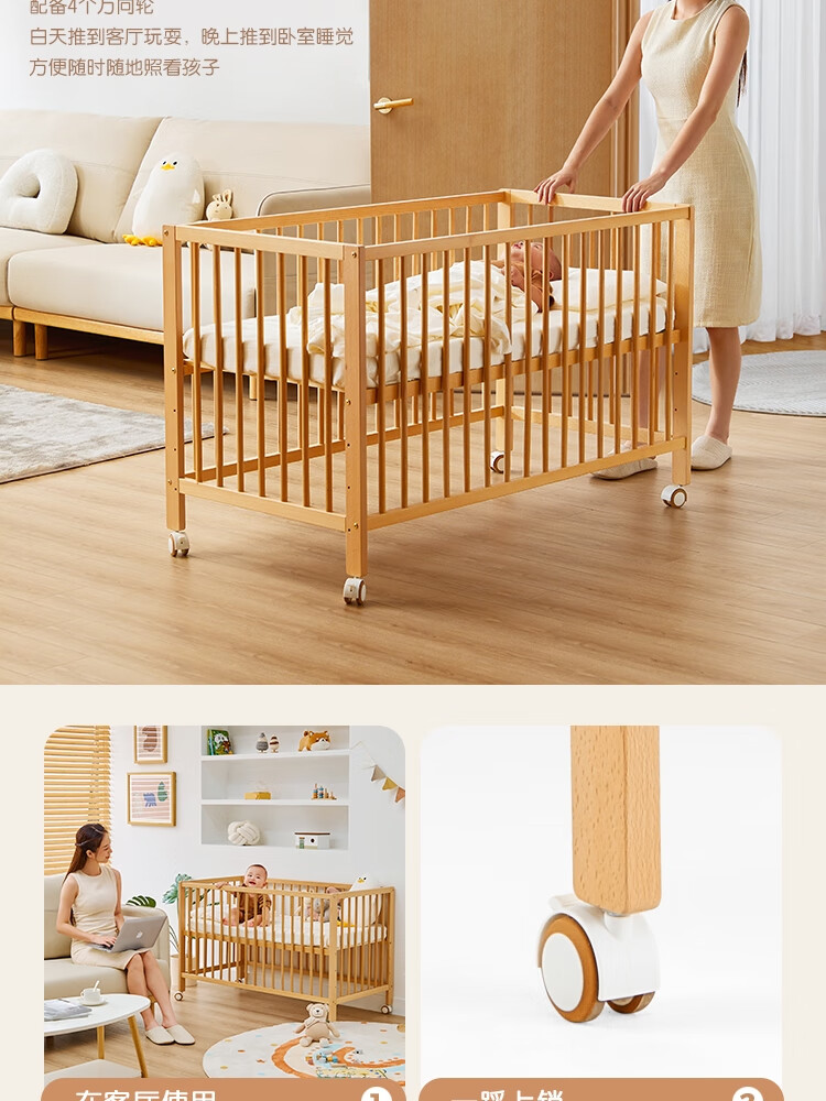 LINSY KIDS Lin's home crib spliced large bed all solid wood bed multi-functional removable baby bed LS535 crib (0.6*1.2) + mattress