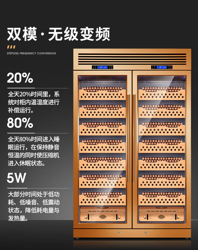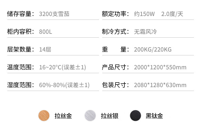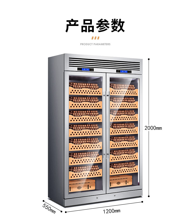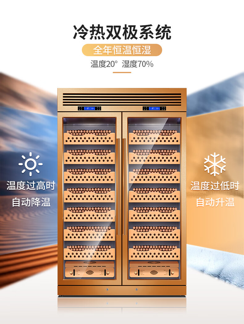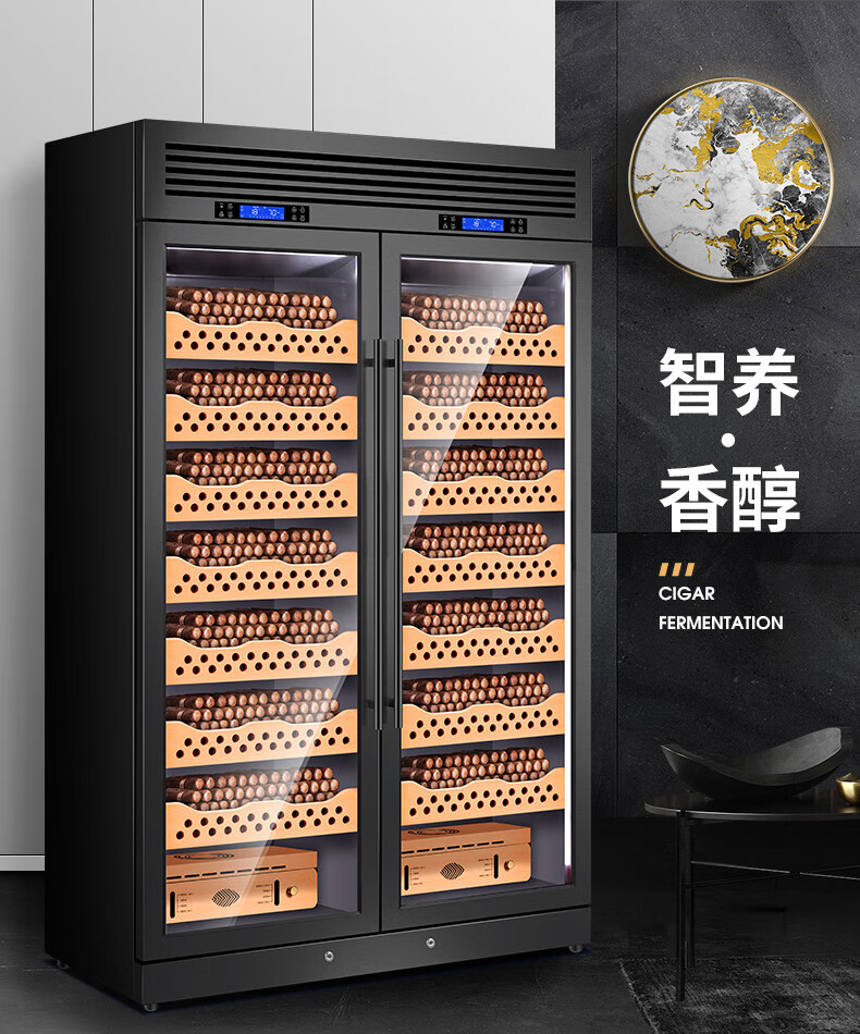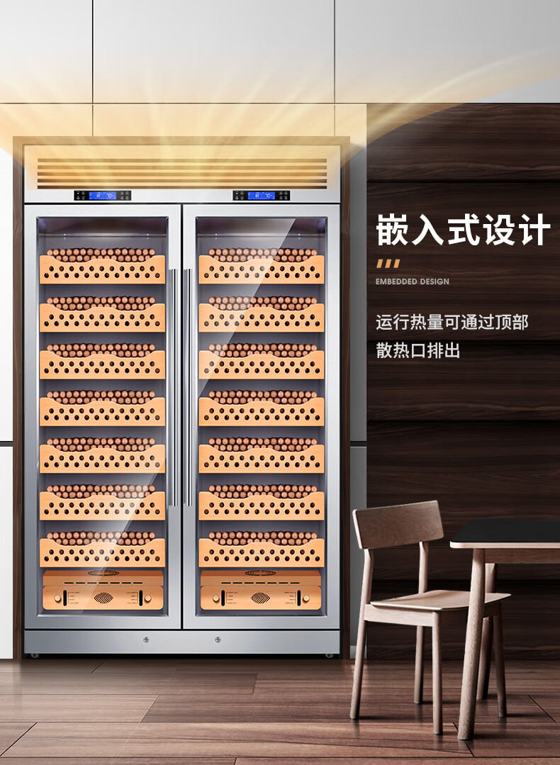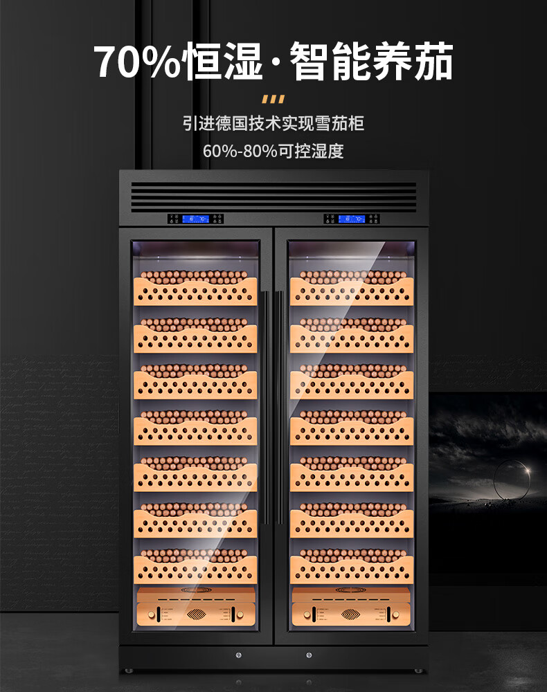 FUKE FK-340WB variable frequency constant temperature and humidity dual temperature Krupp stainless steel cigar cabinet red wine cabinet double doors need to be customized large capacity commercial black titanium (double door cigar cabinet)