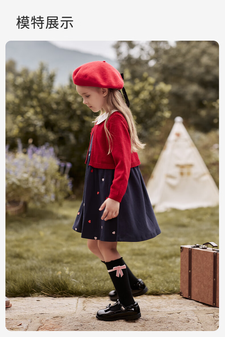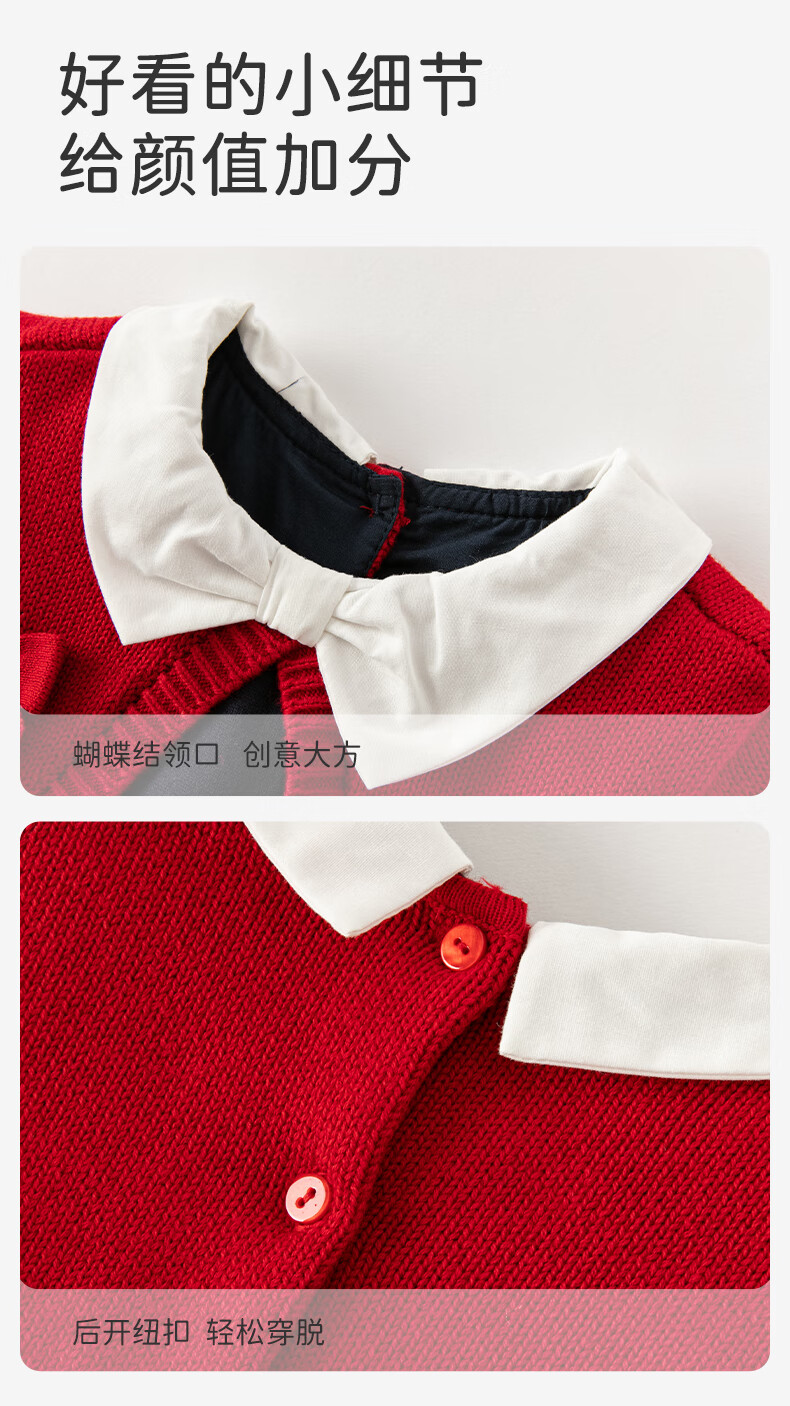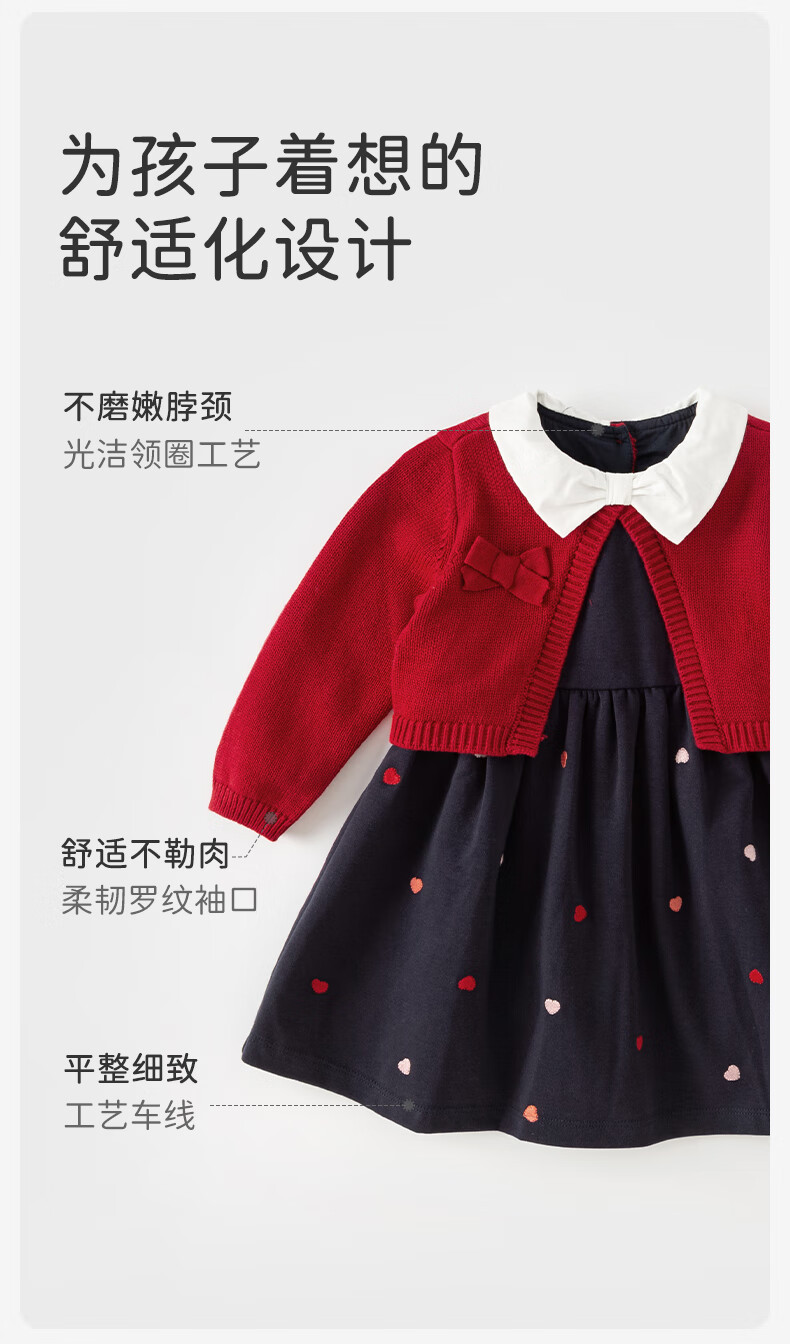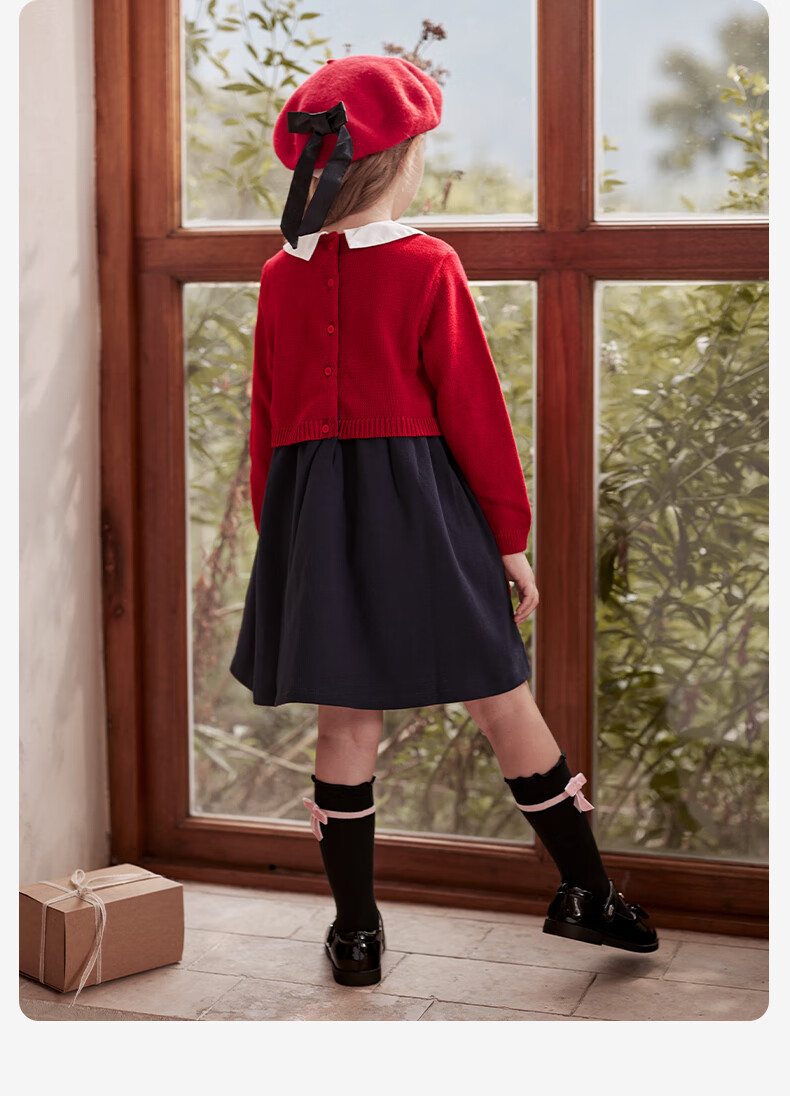 DAVE&BELLA children's clothing New Year's model children's skirt girls' dress fake two-piece baby princess dress autumn and winter infant clothes red-N 90 cm (recommended height 80-90cm)