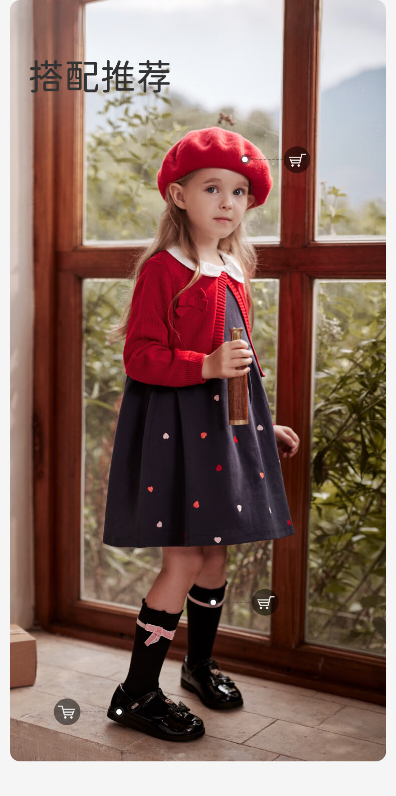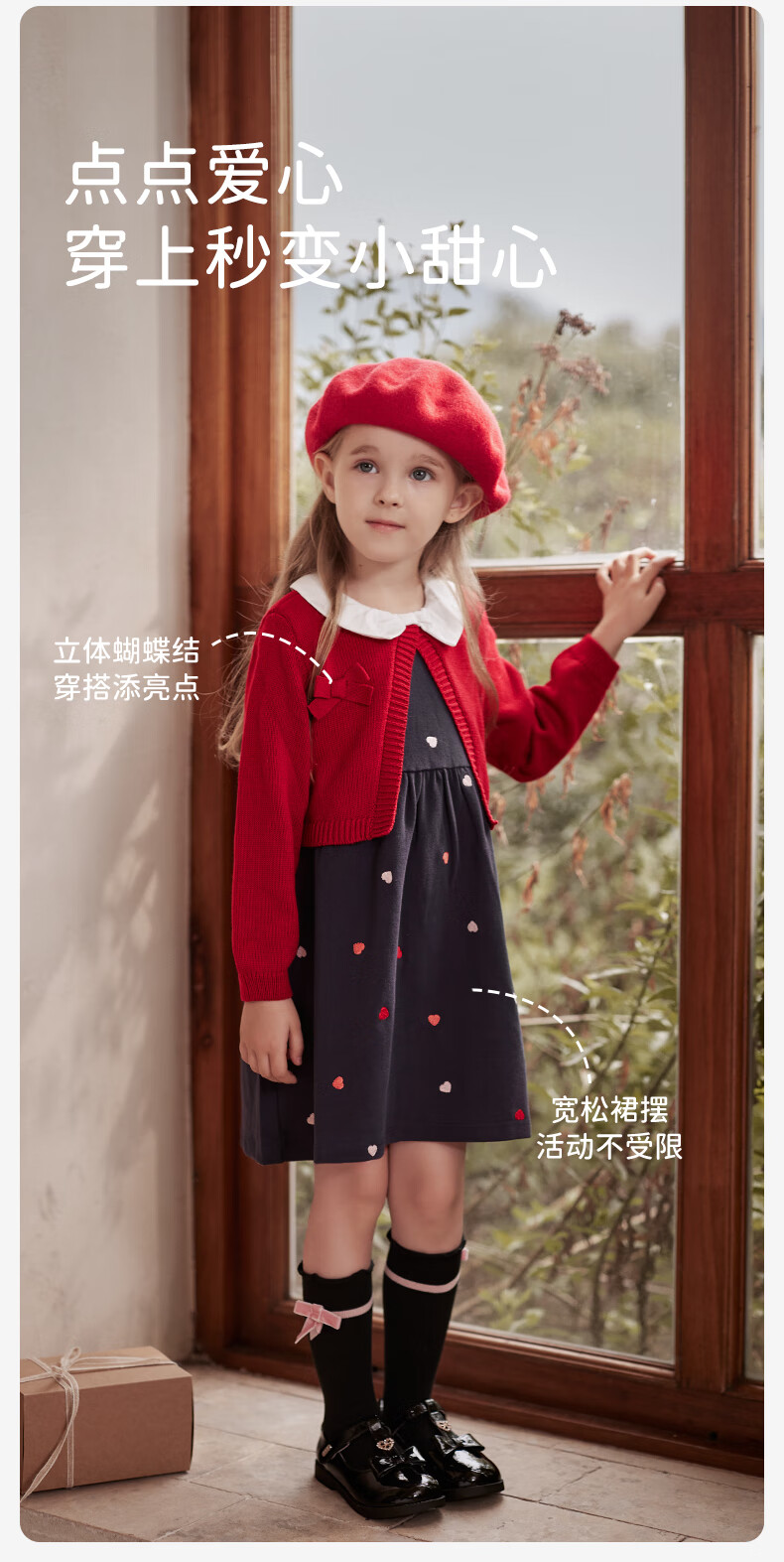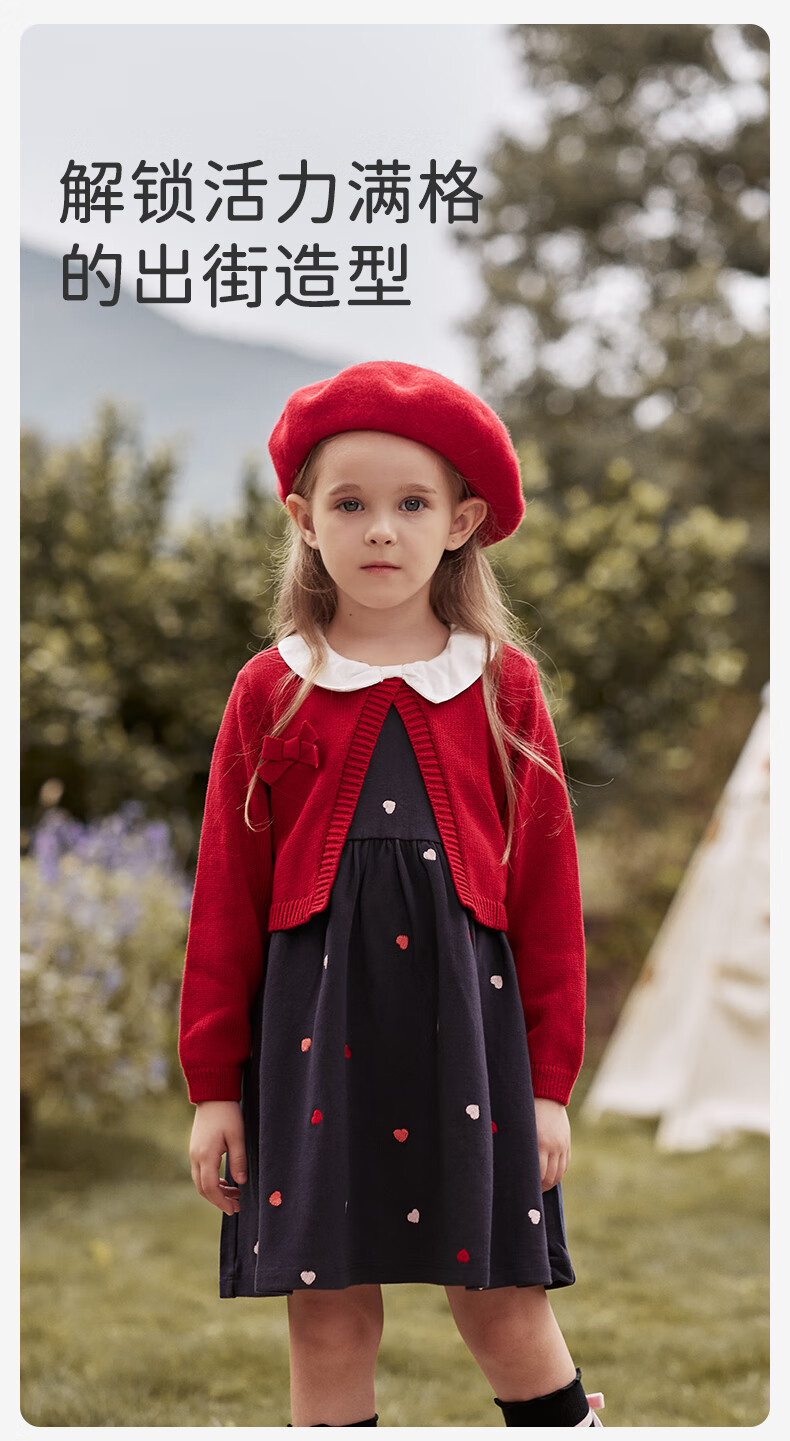 DAVE&BELLA children's clothing New Year's model children's skirt girls' dress fake two-piece baby princess dress autumn and winter infant clothes red-N 90 cm (recommended height 80-90cm)