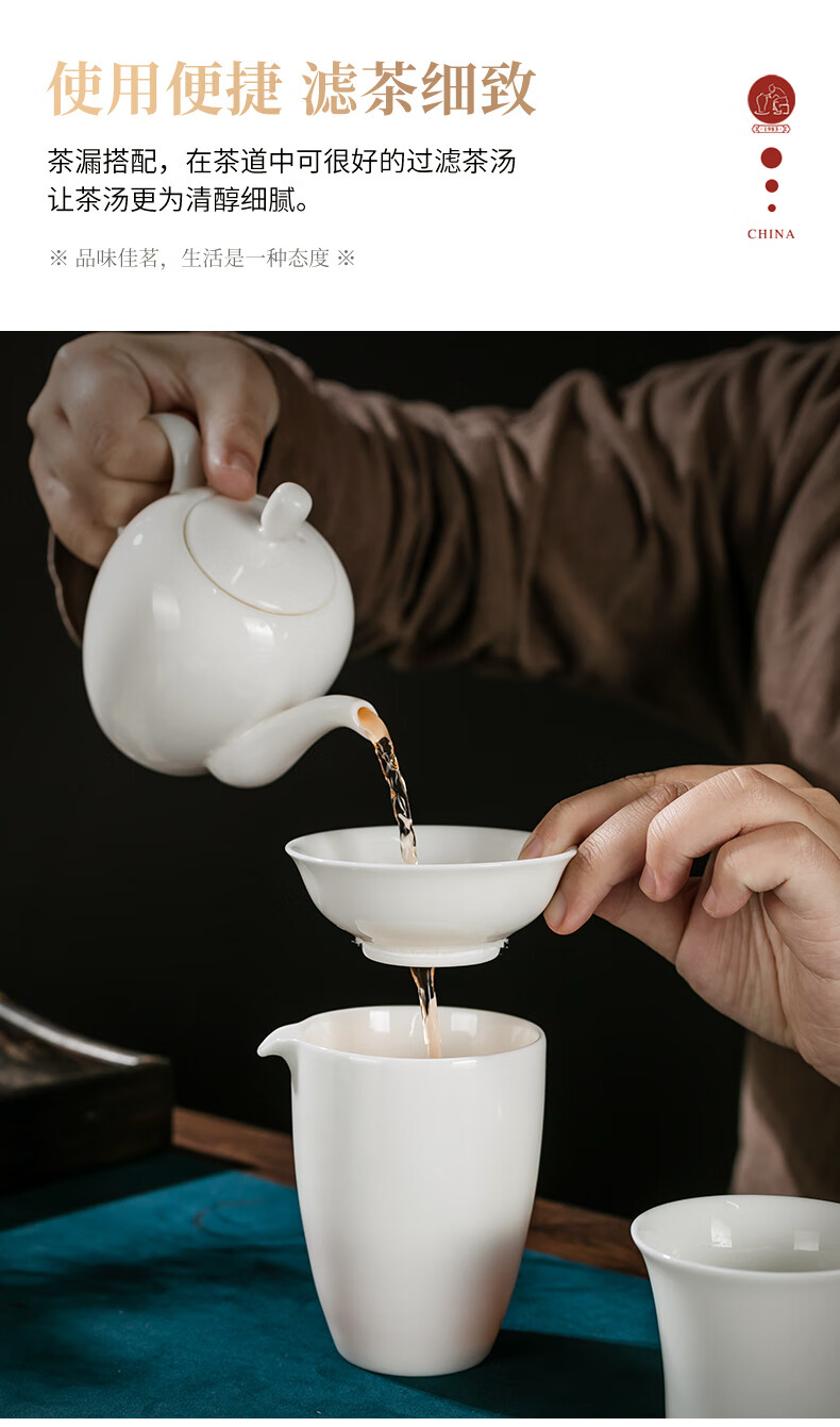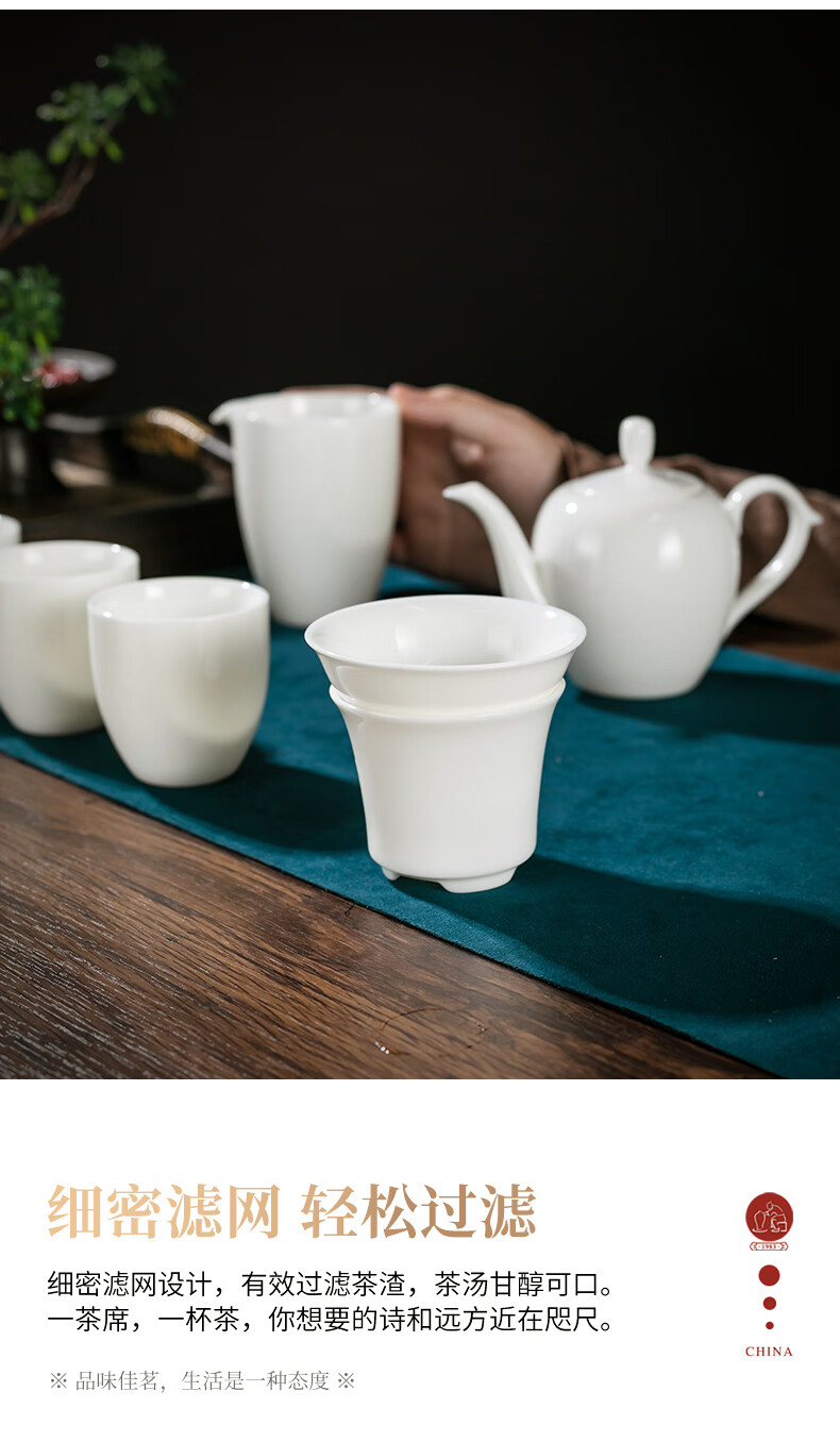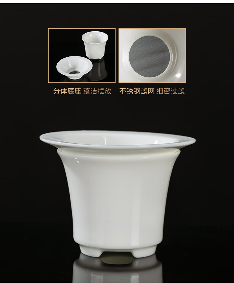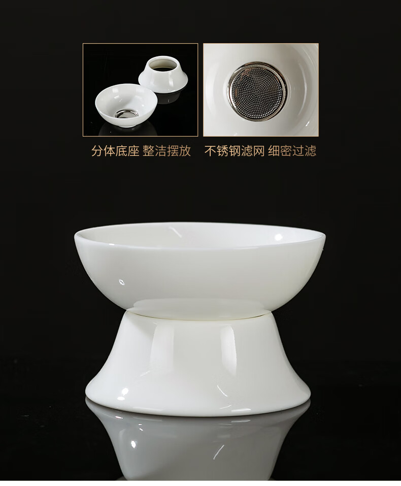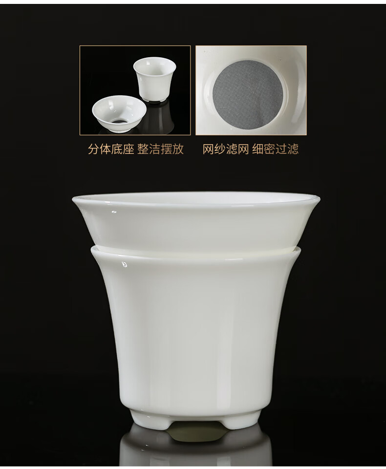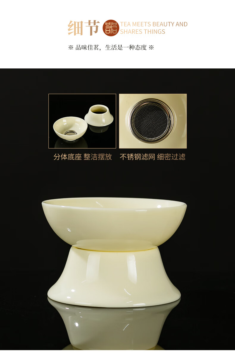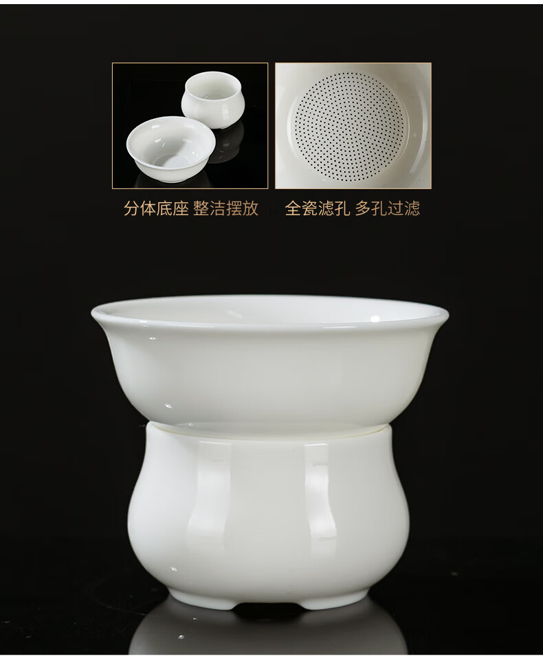 Yuantao kiln tea drain white porcelain all-ceramic hole integrated tea filter ceramic tea net stainless steel tea separator tea filter tea purple sand tea drain ordinary base
