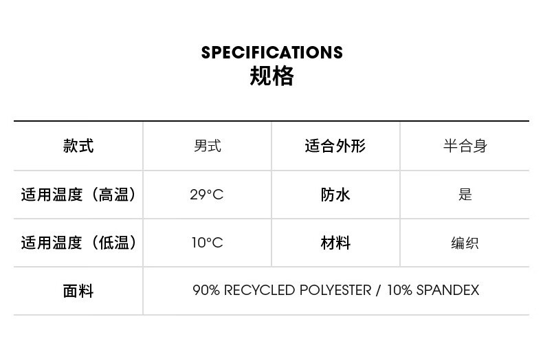China (cm) 165 / 88-90 170 / 96-98 175 / 108-110 180 / 118-122 185 / 126-130