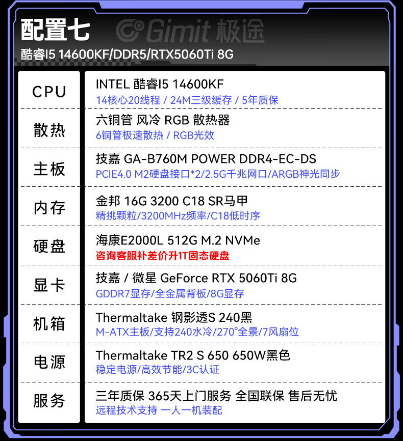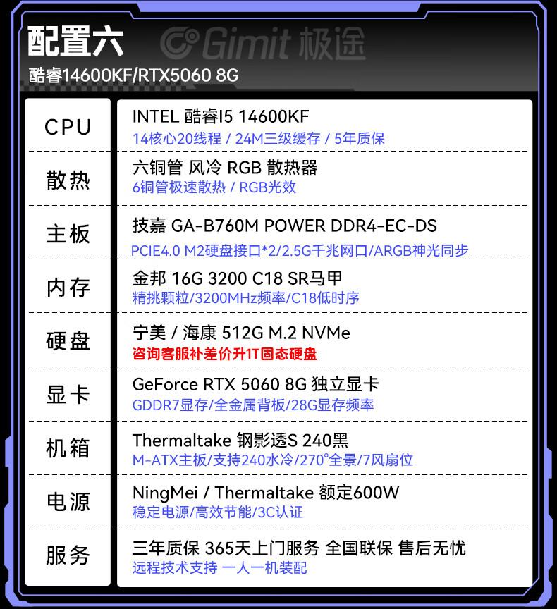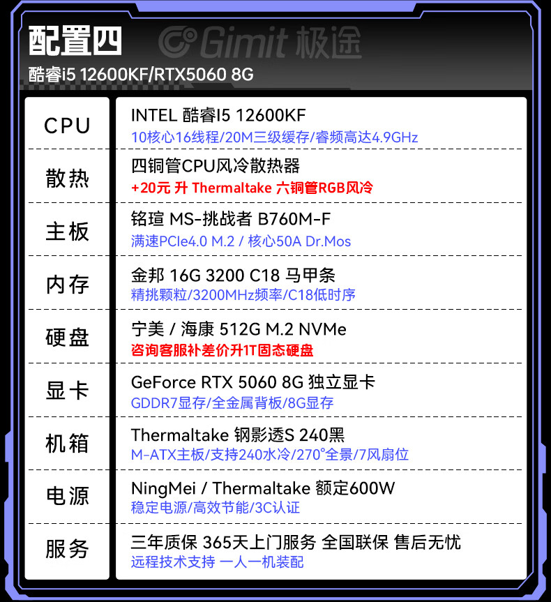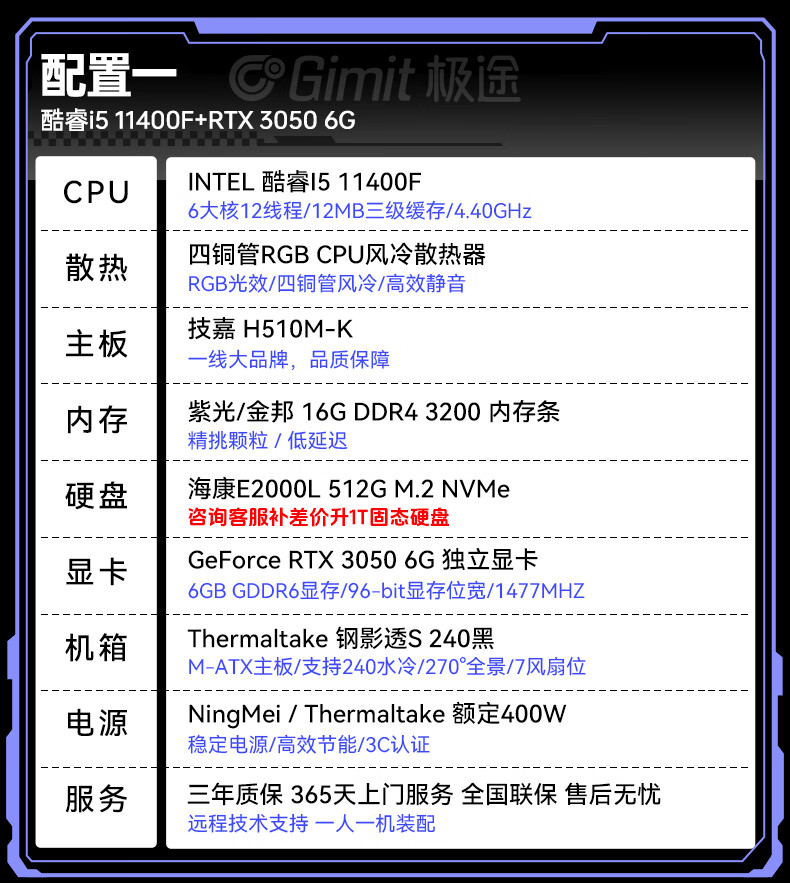 Gimit i5 12400F/13400F/12600KF/14600KF/5050/4060Ti/5060Ti graphics card game e-sports desktop computer host DIY assembly machine I5 11400F丨3050丨with one