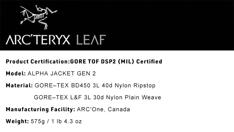 ARC TERYX Military Bird LEAF ALPHA JACKET Weatherproof Tactical Military Version SV Jacket Hard Shell Crocodile Color (GEN2.2) Latest Cro M