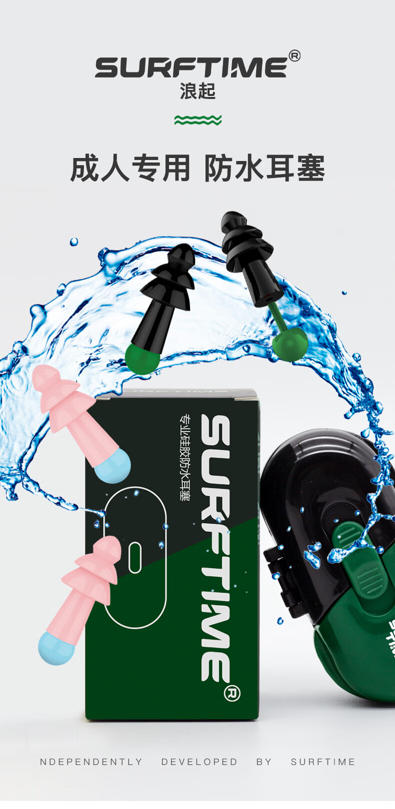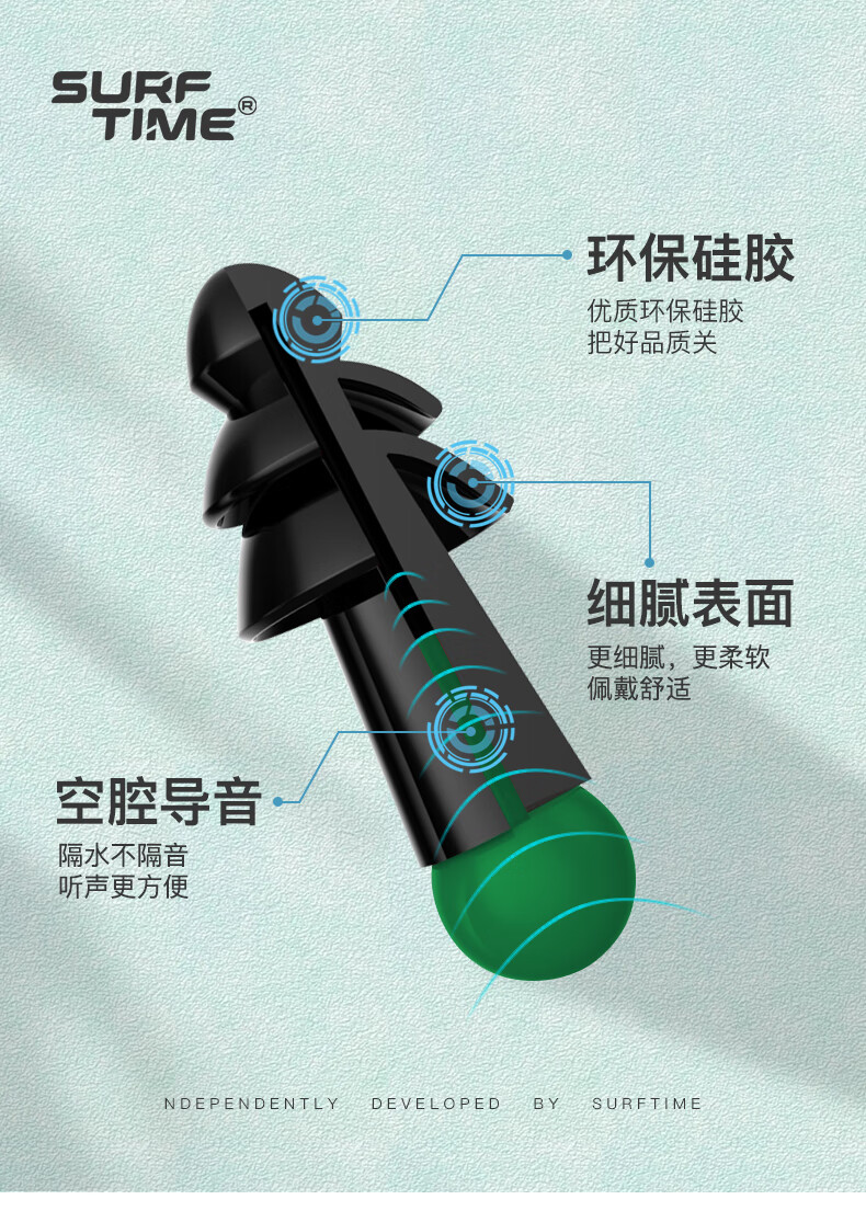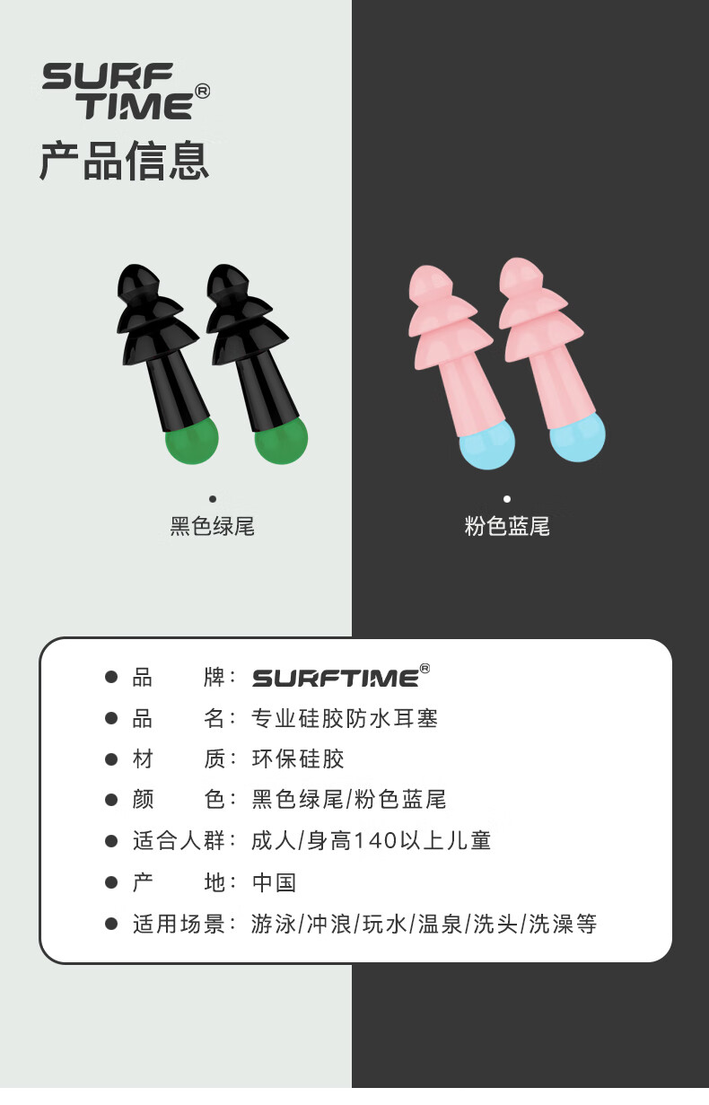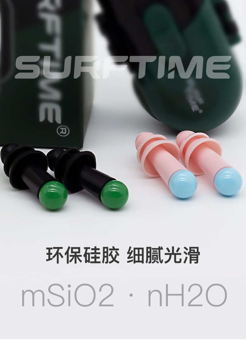 Langqi (SURFTIME) professional waterproof swimming earplugs for adults to prevent otitis media, bathing, shampooing, earplugs and nose clip equipment, black green tail earplugs