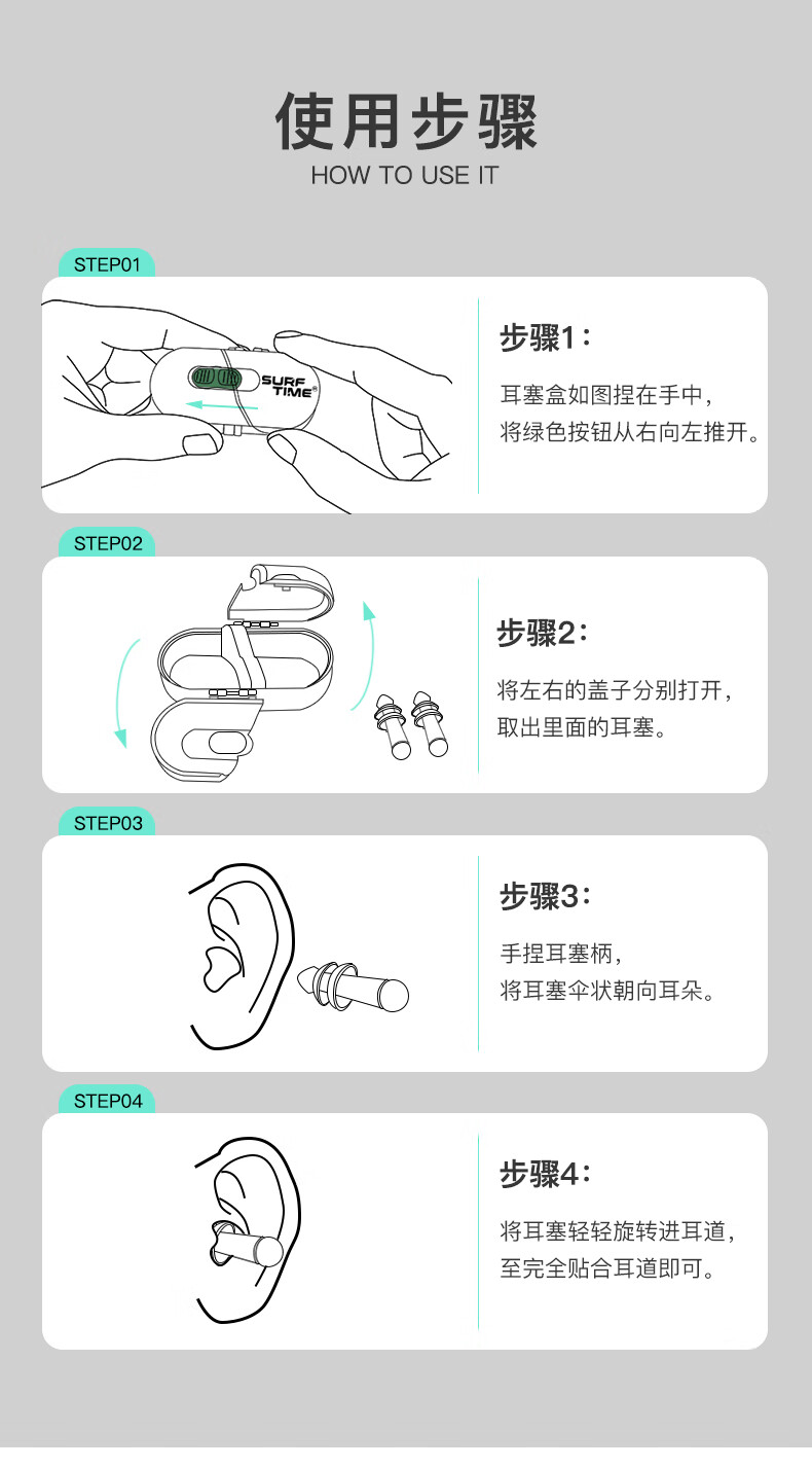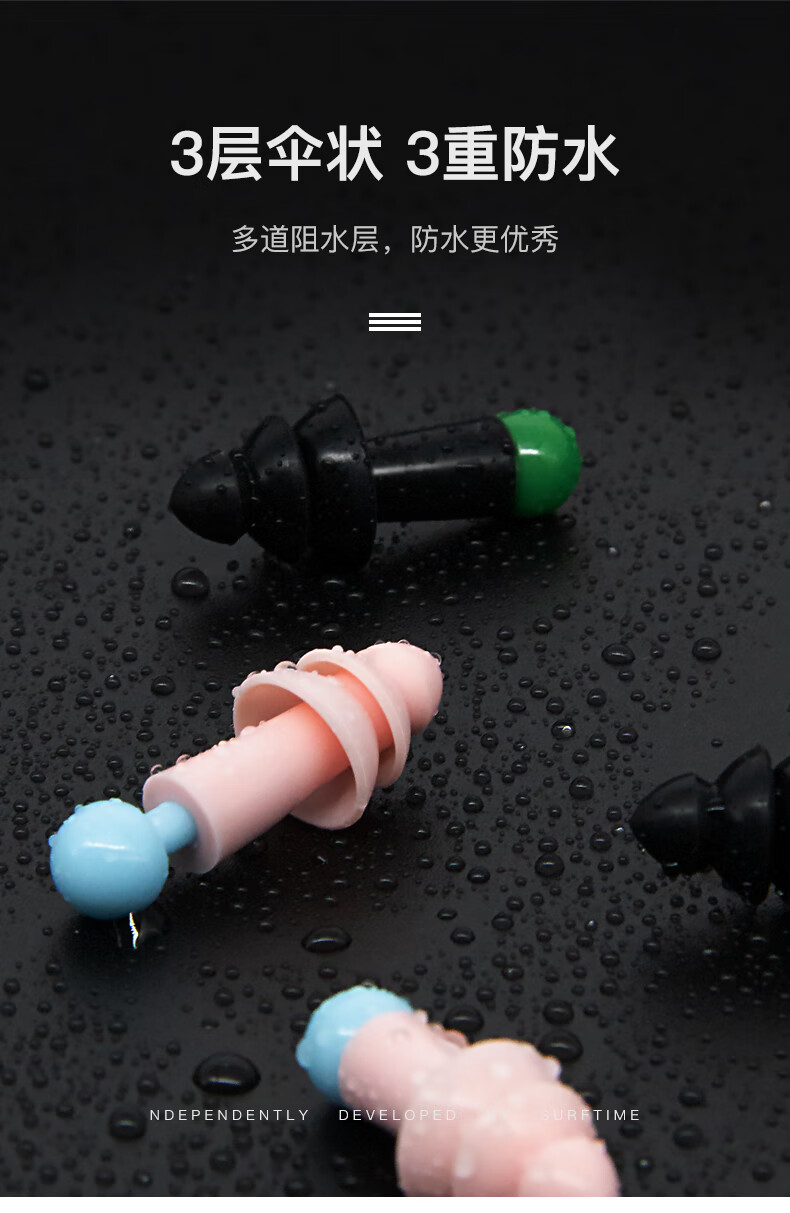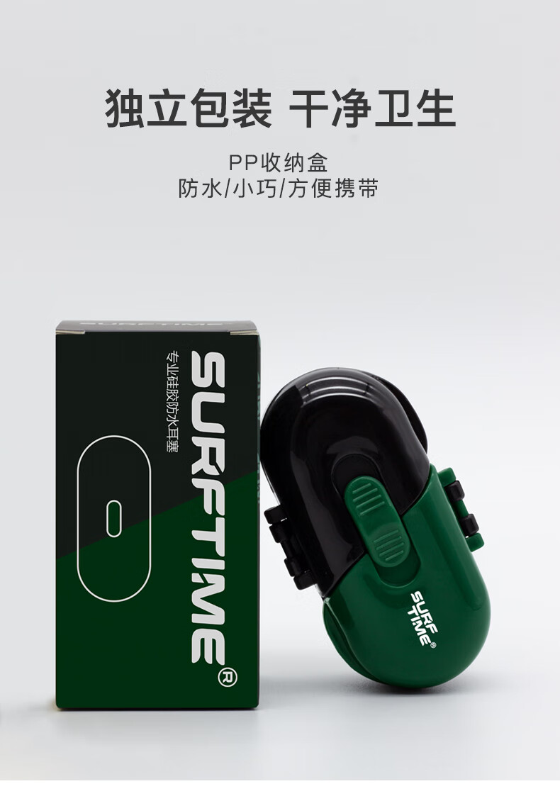 Langqi (SURFTIME) professional waterproof swimming earplugs for adults to prevent otitis media, bathing, shampooing, earplugs and nose clip equipment, black green tail earplugs