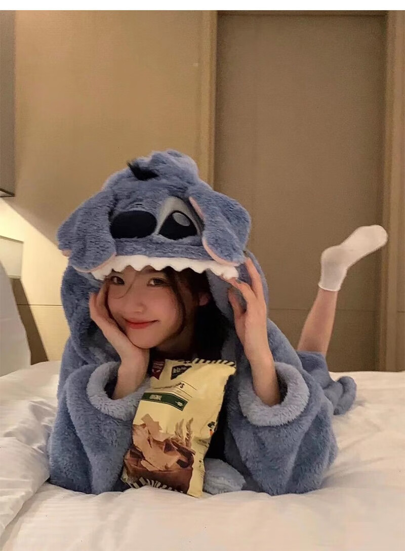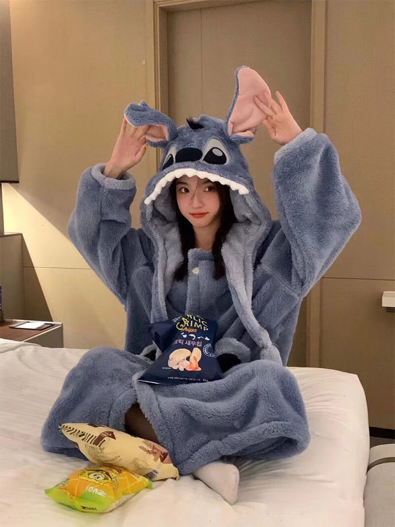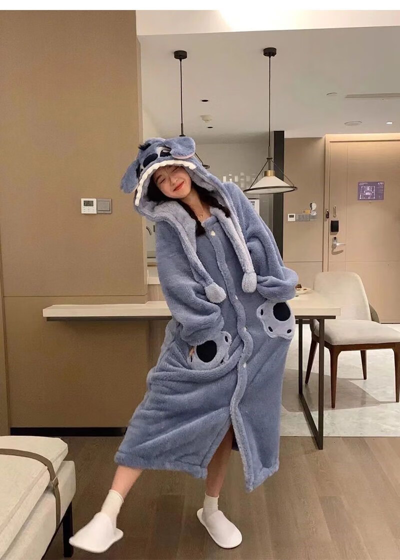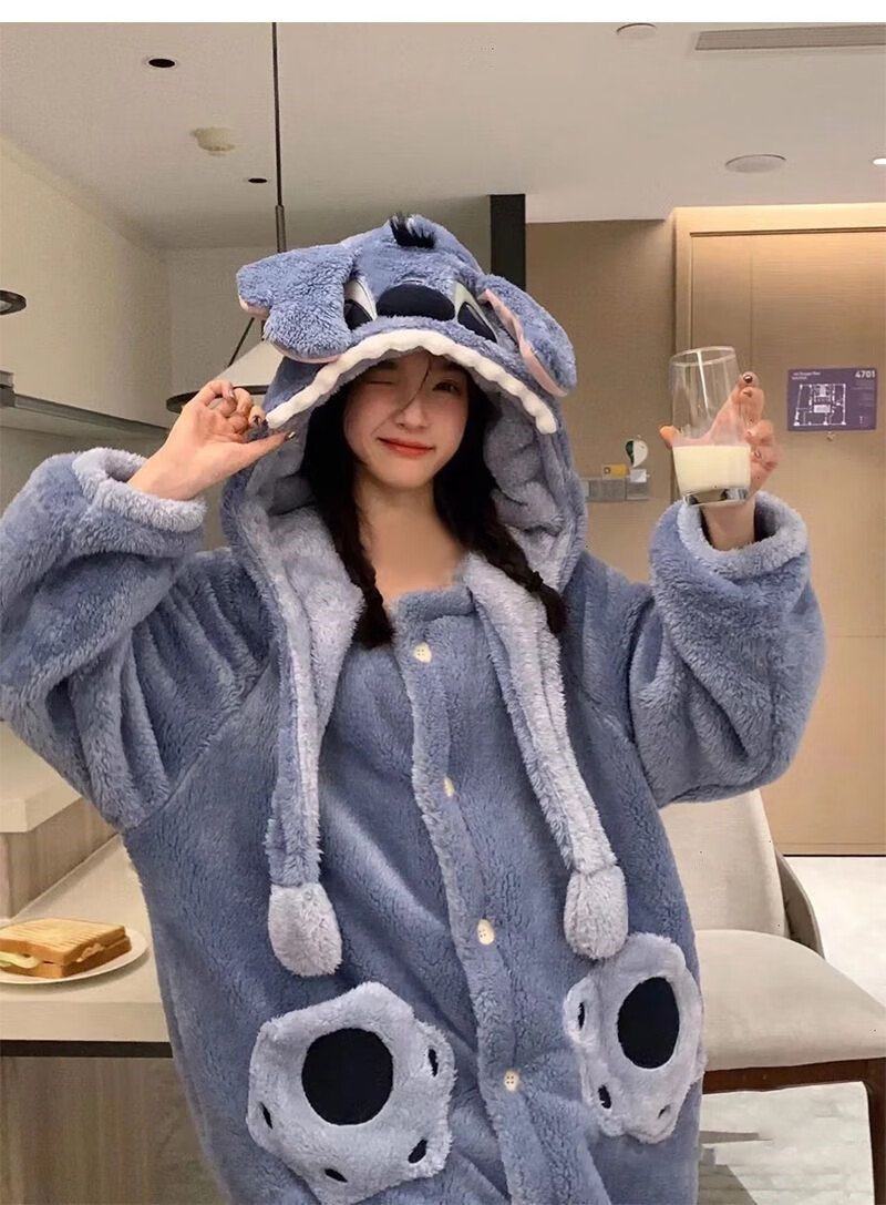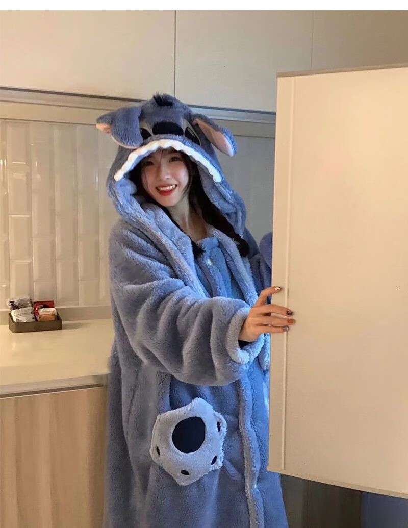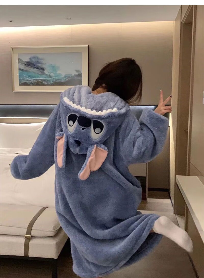 TULX large size pajamas 200Jin Jin is equal to 0.5kg Stitch Cartoon Autumn and Winter Coral Velvet Long Nightgown Couple Internet Celebrity Style Pajamas for Men Blue Stitch Unisex Style 2XL 170-200Jin Jin is equal to 0.5kg High Quality Velvet