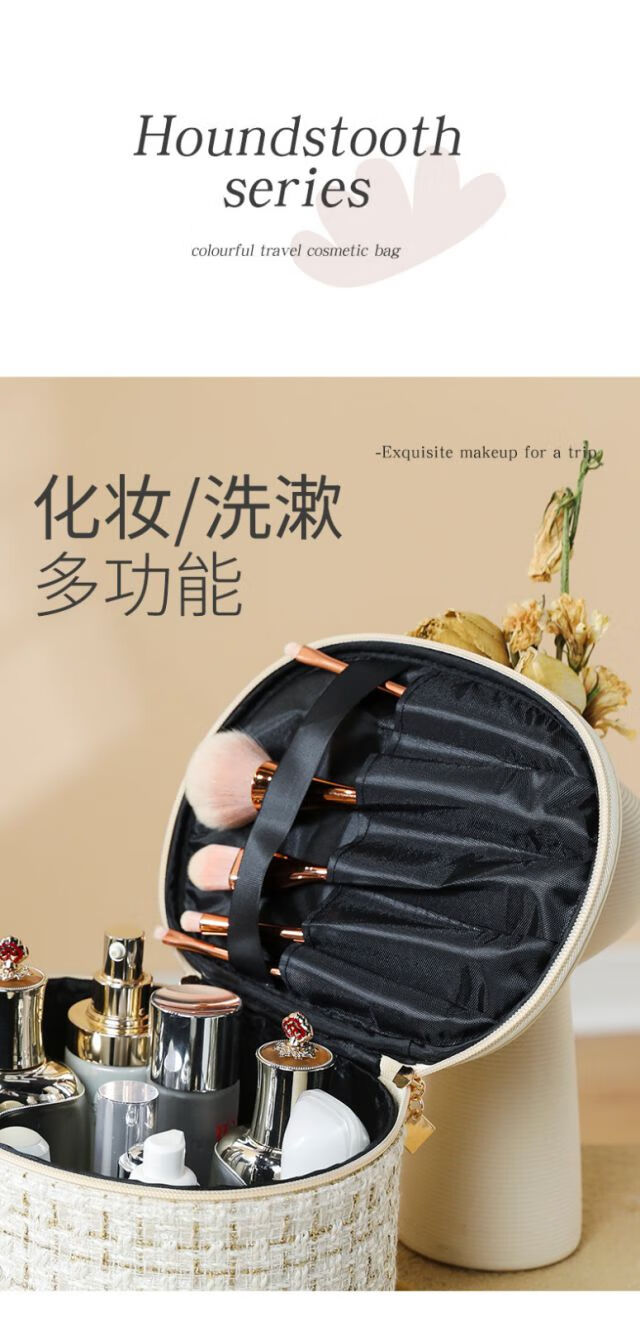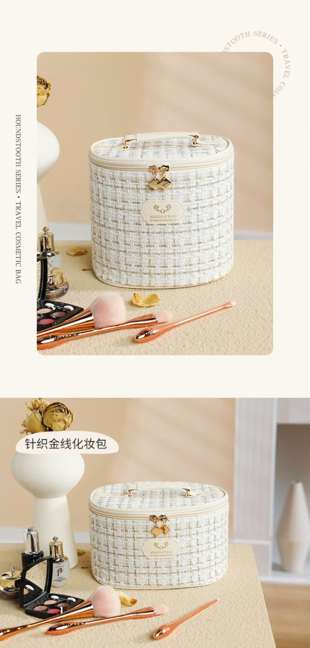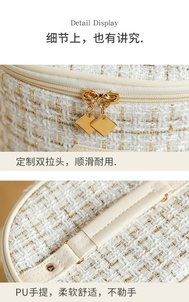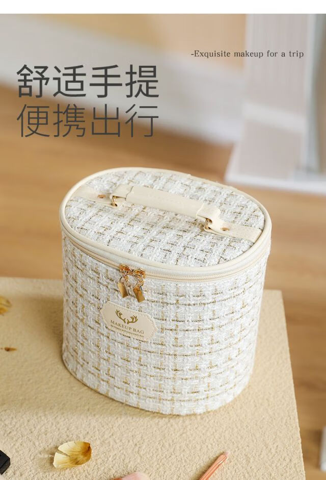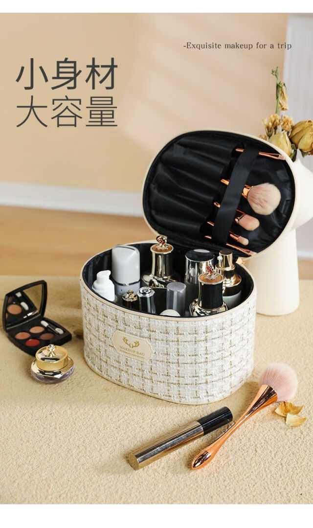 Small fragrance cosmetic bag, skin care products and cosmetics storage bag, easy to carry when traveling, large capacity toiletries storage bag, fashionable and versatile round portable cosmetic bag, low bucket small size - apricot milk white, see main picture
