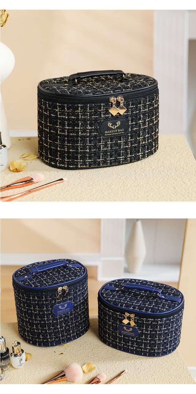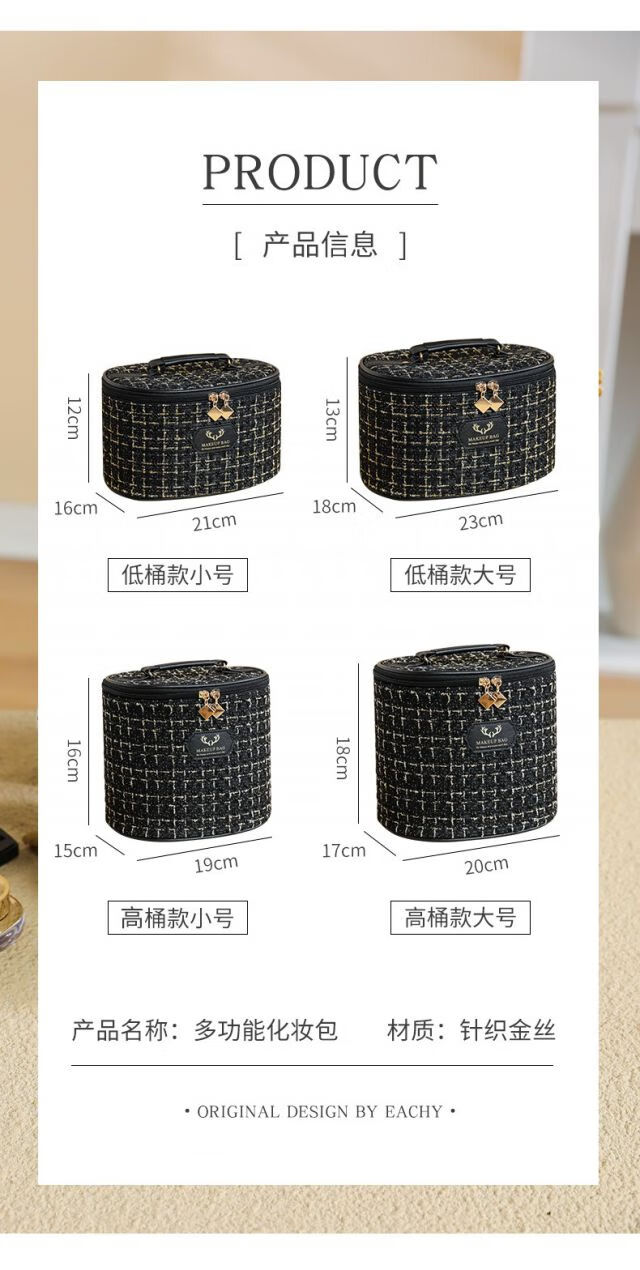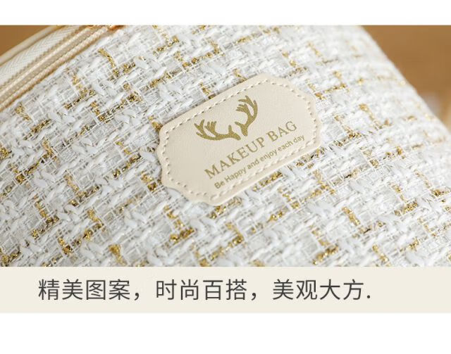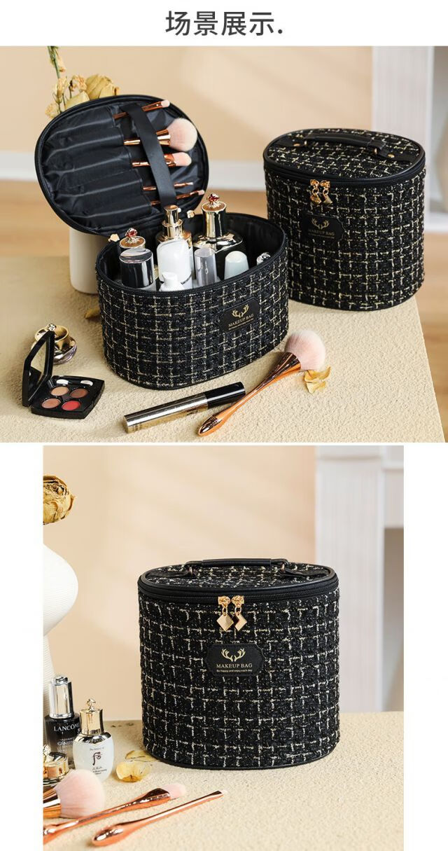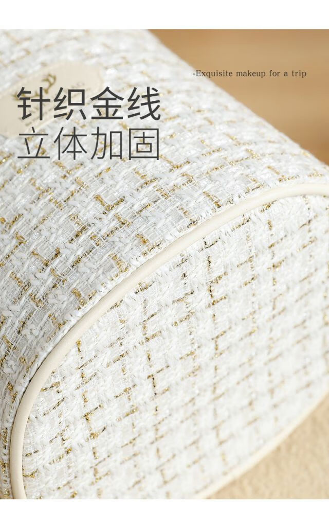 Small fragrance cosmetic bag, skin care products and cosmetics storage bag, easy to carry when traveling, large capacity toiletries storage bag, fashionable and versatile round portable cosmetic bag, low bucket small size - apricot milk white, see main picture