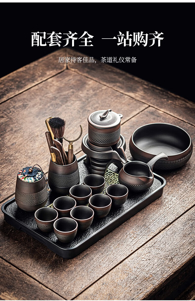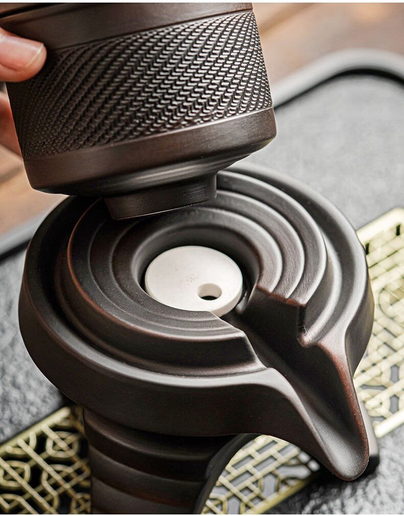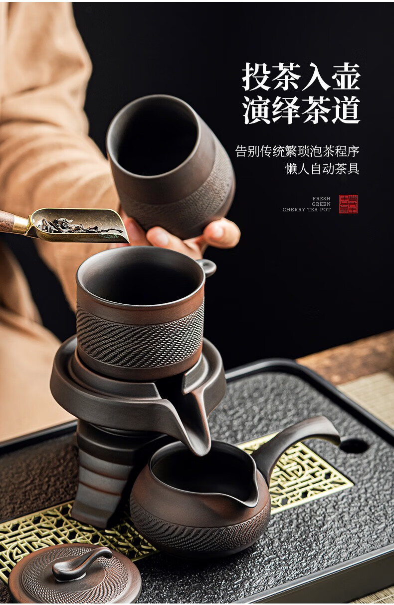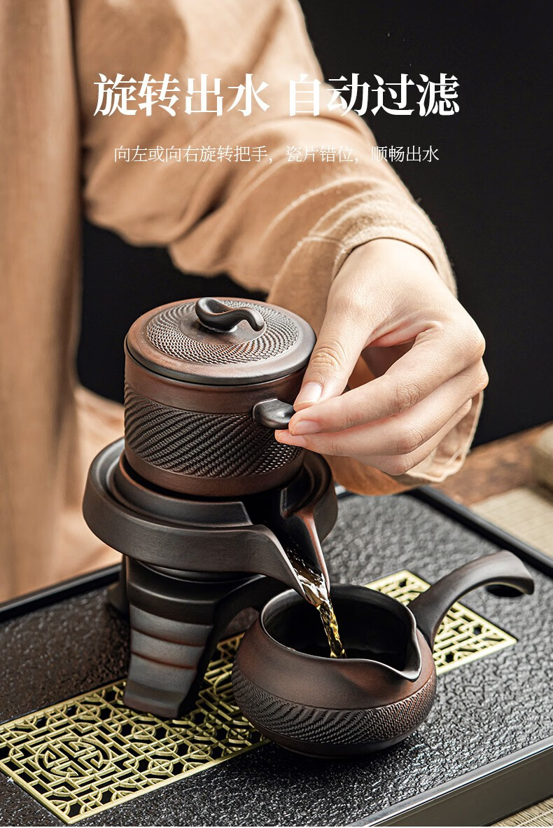 Tang Feng Purple Pottery Kung Fu Tea Set Purple Clay Retro Covered Bowl Tea Cup Household Teapot Set Stone Mill Lazy Anti-scalding Tea Making Artifact Purple Pottery Automatic Tea Maker + Male Cup