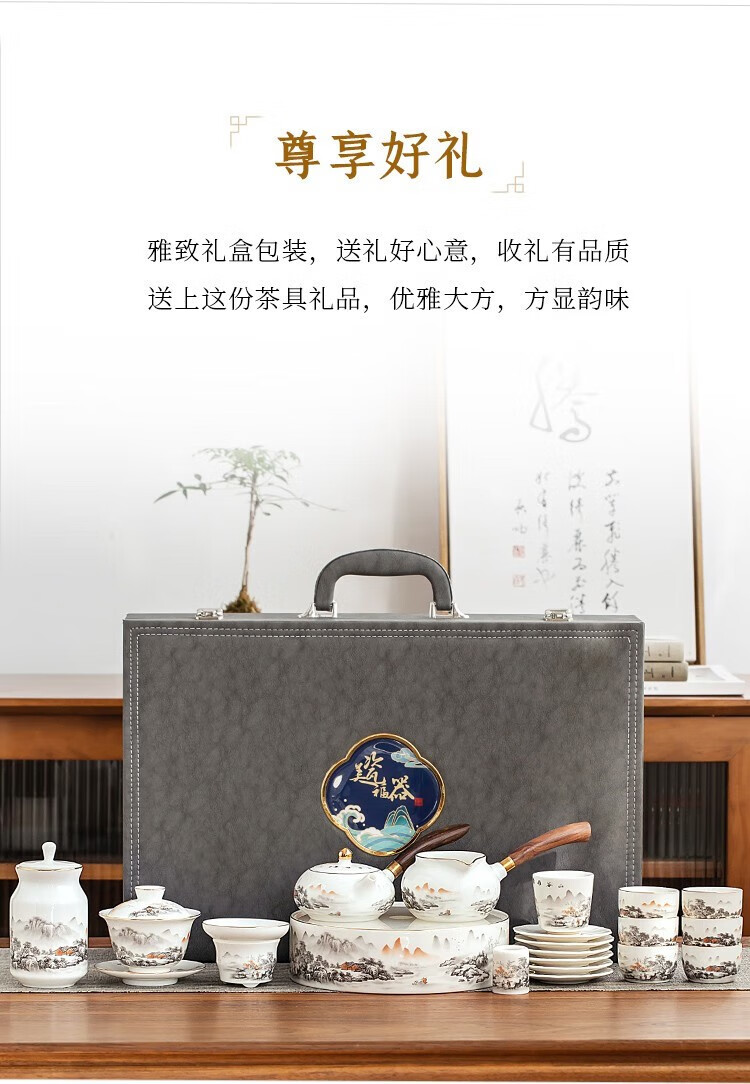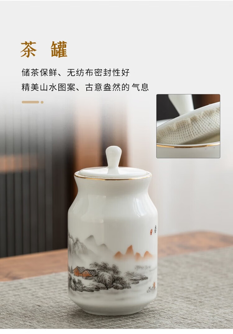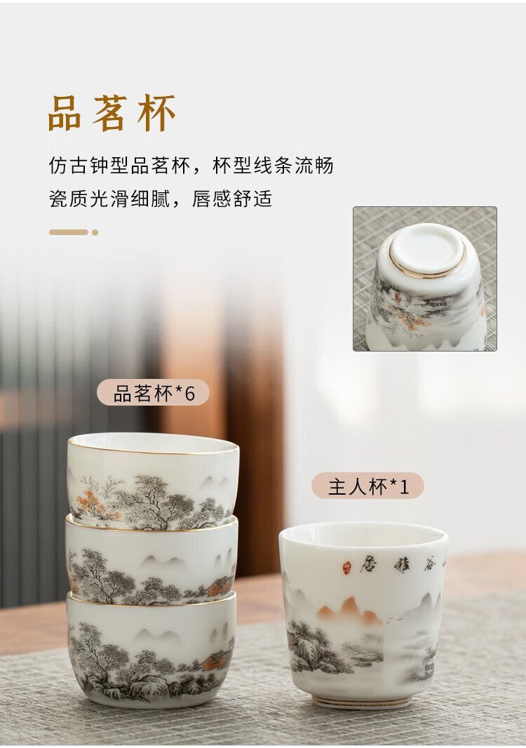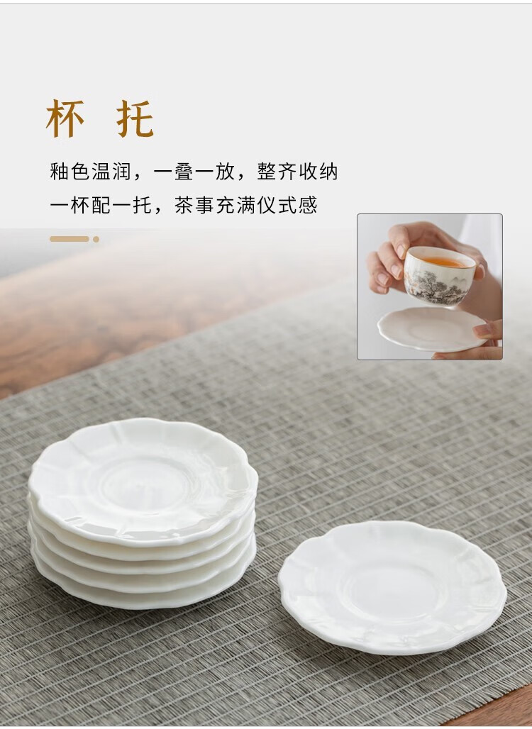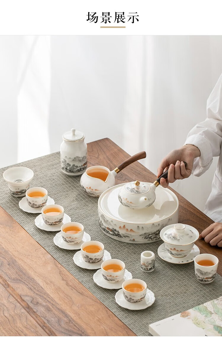Gold inlaid jade Kung Fu tea set Chinese white mutton fat jade porcelain household ceramics white porcelain tea making set gift gift box ink Jiangshan side handle jade plate mutton fat jade porcelain set