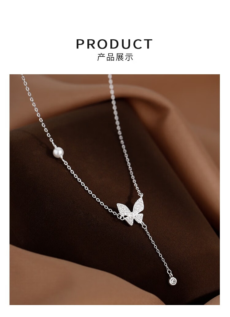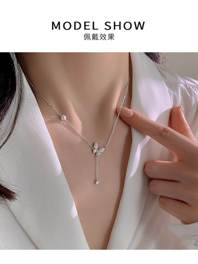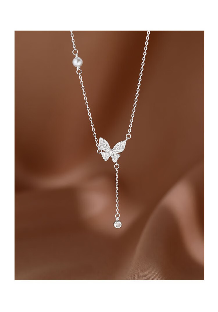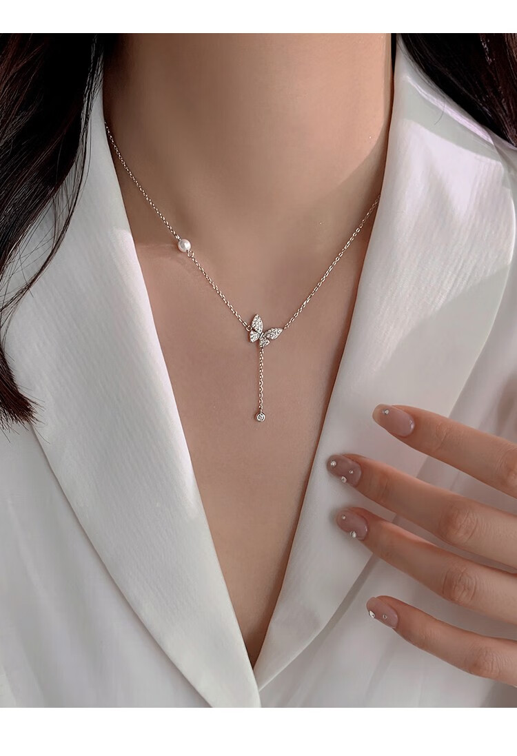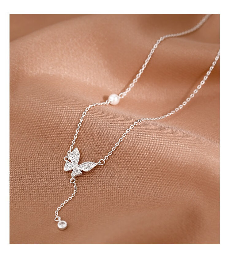 Farcoko Butterfly Necklace Women's Silver Clavicle Chain Tassel Necklace Small Fresh Birthday Gift for Girlfriend and Wife Silver-Butterfly Clavicle Chain