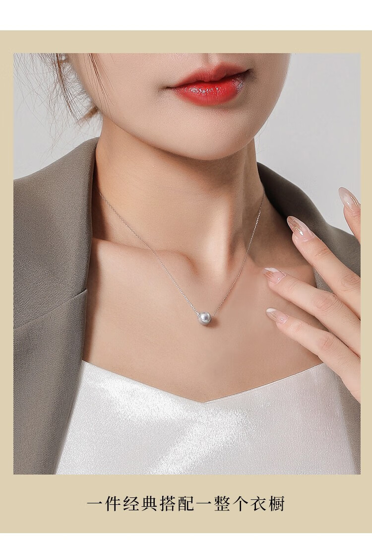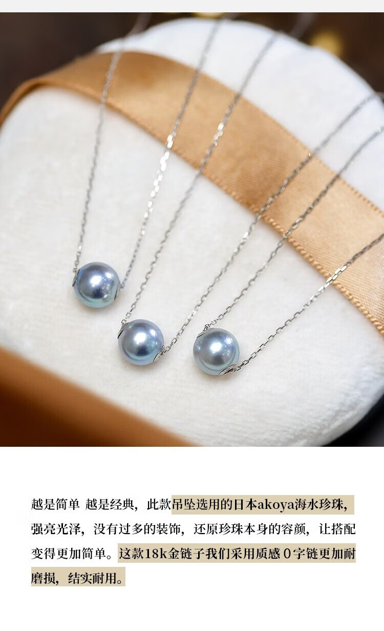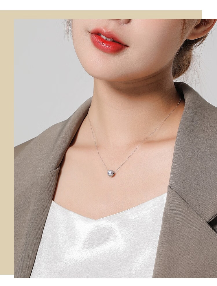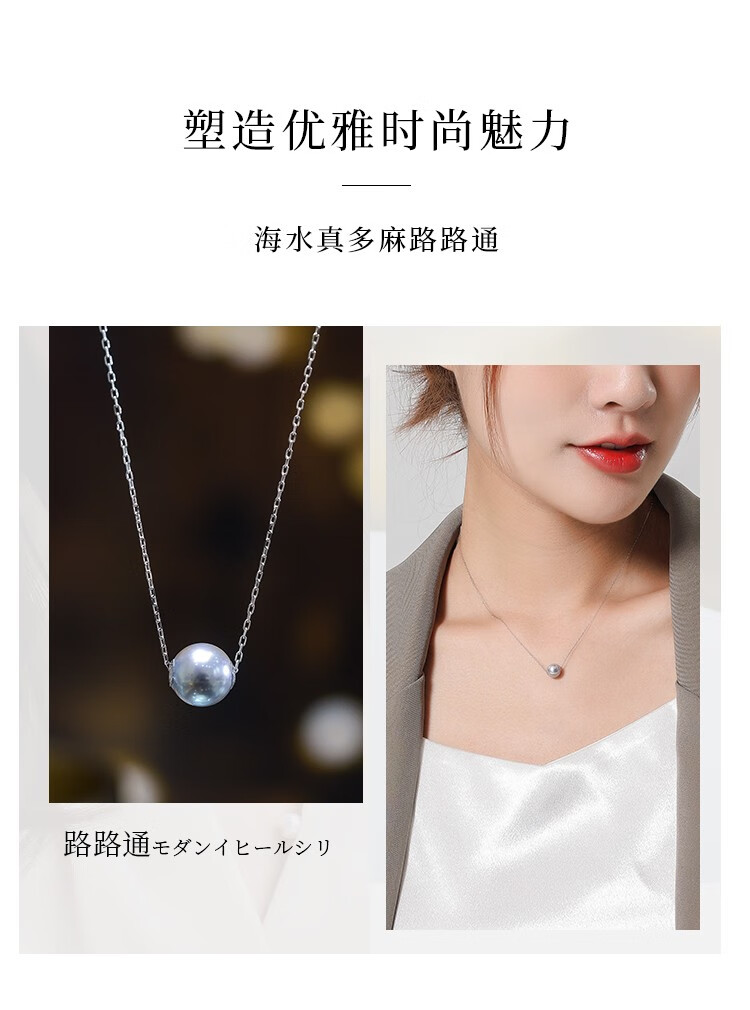 WEIYAN Zhen Duo Ma Pearl Pendant 18K Gold Round Seawater Pearl Passepartout Pendant Single Bare Bead Clavicle Chain Women's O-shaped Chain 7-8mm
