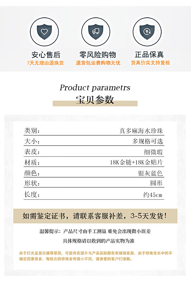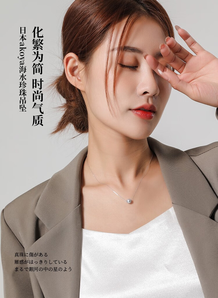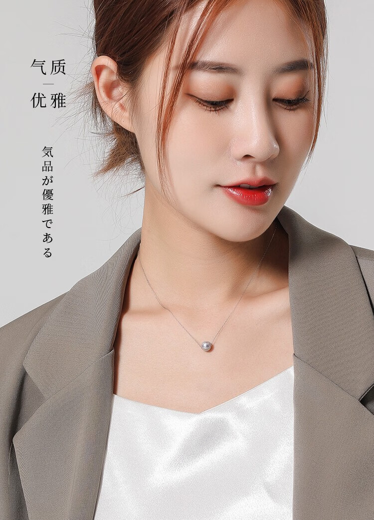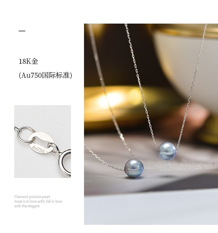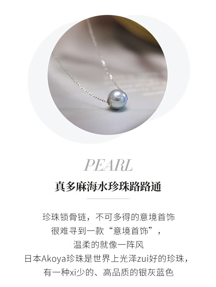 WEIYAN Zhen Duo Ma Pearl Pendant 18K Gold Round Seawater Pearl Passepartout Pendant Single Bare Bead Clavicle Chain Women's O-shaped Chain 7-8mm