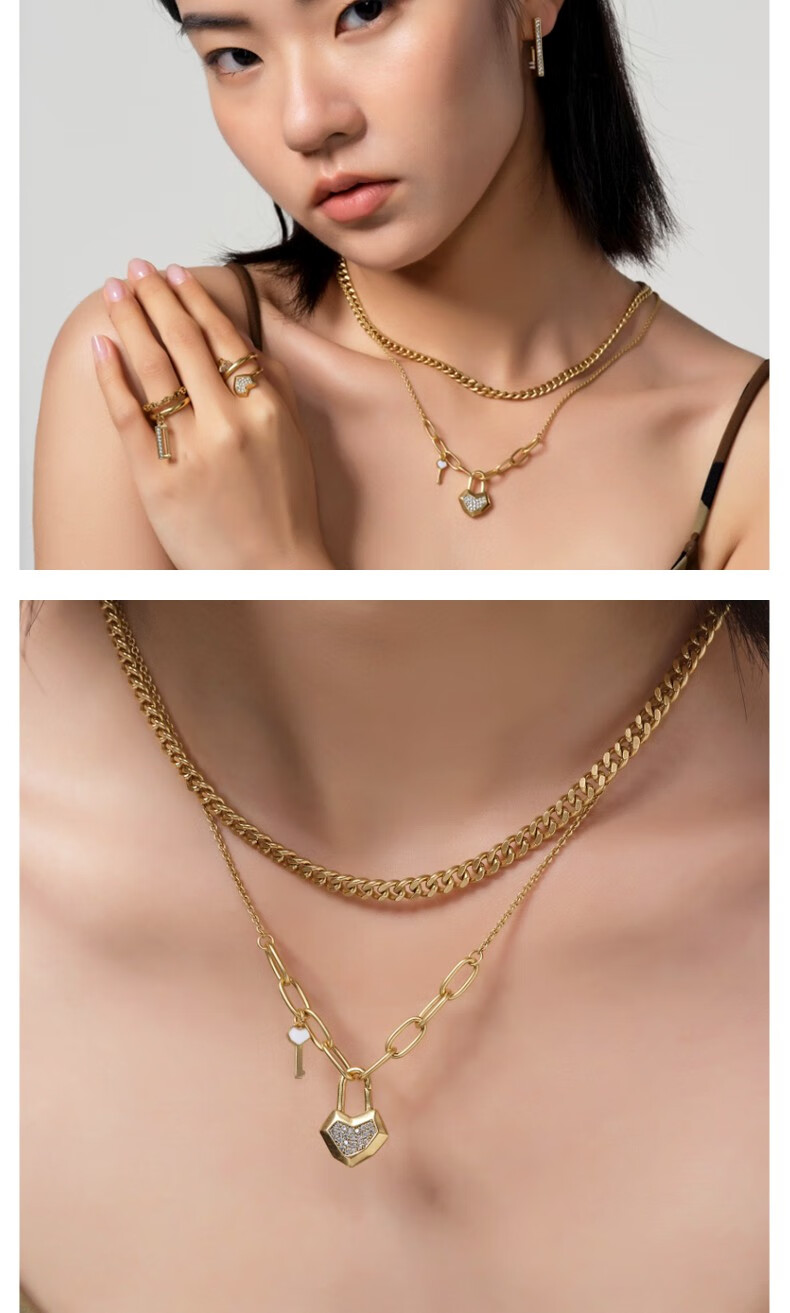 Fellala original design lock necklace for women, fashionable, simple and versatile, personalized plain chain, trendy gift for girlfriend, white