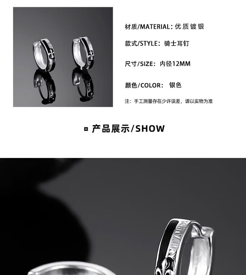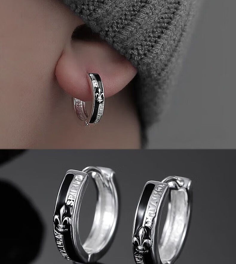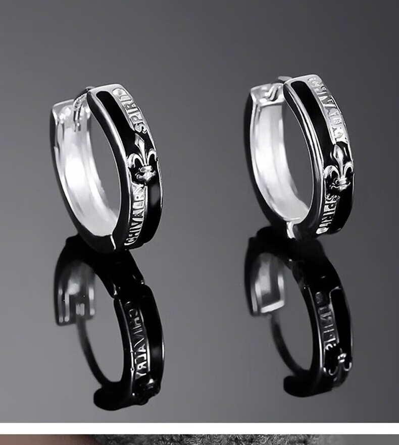 QMXD earrings men's trendy single knight earrings men's European and American retro trend personality niche design high-end student earrings pair