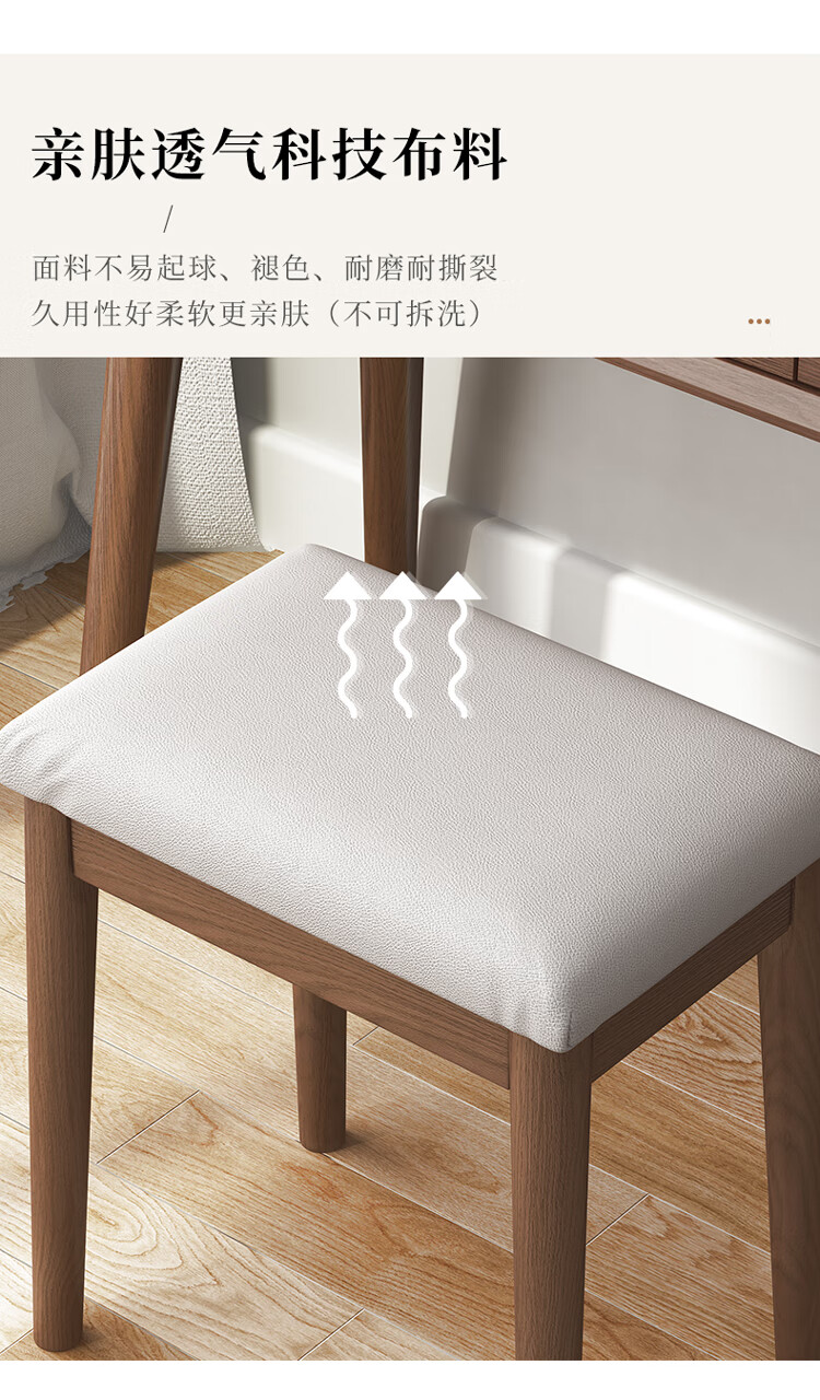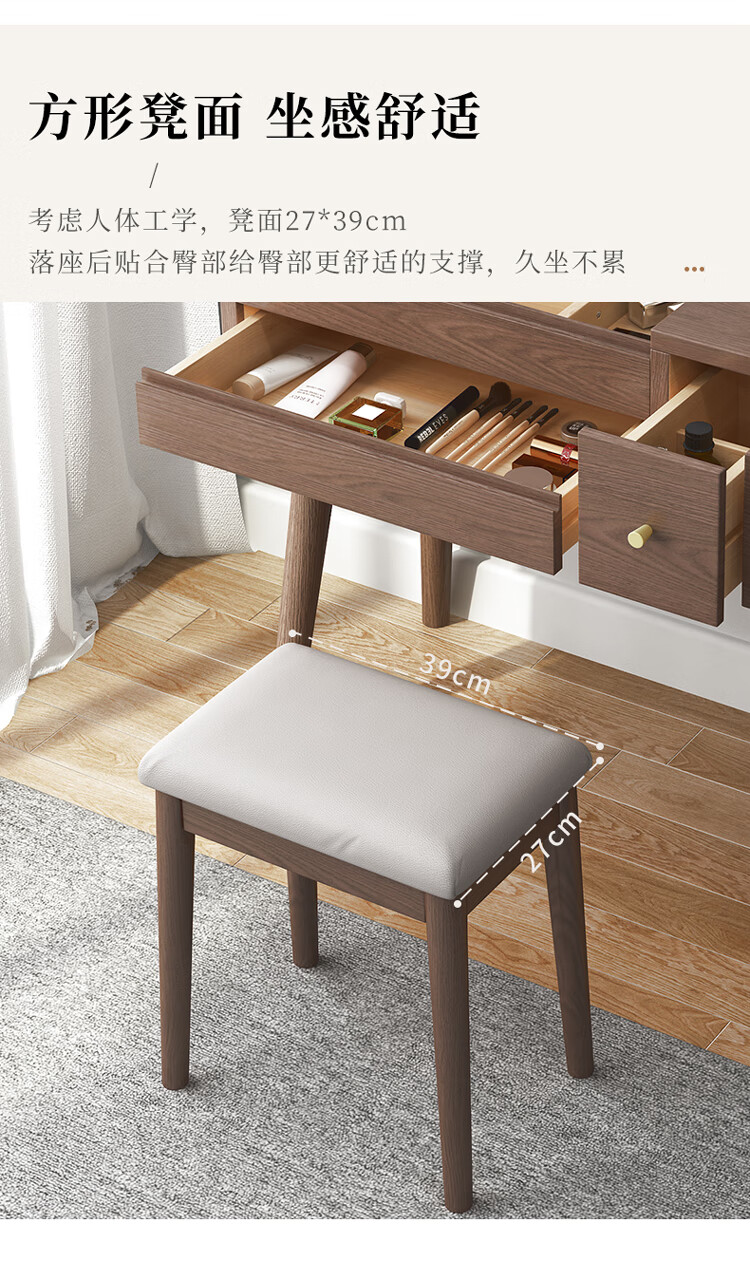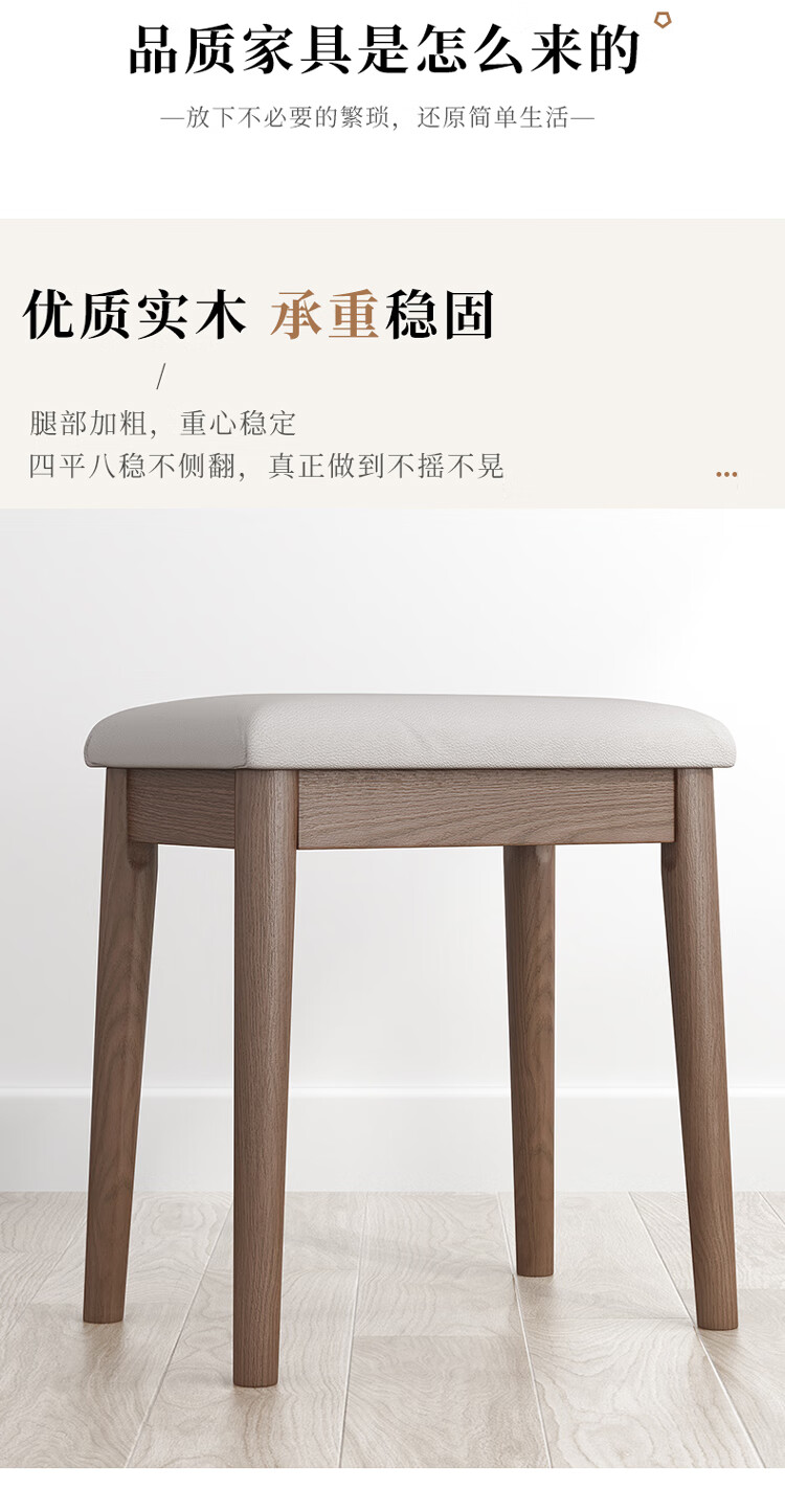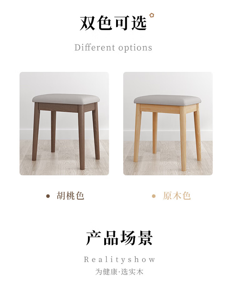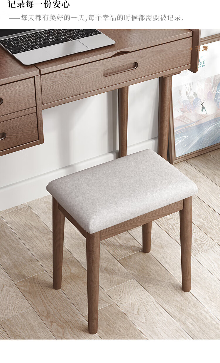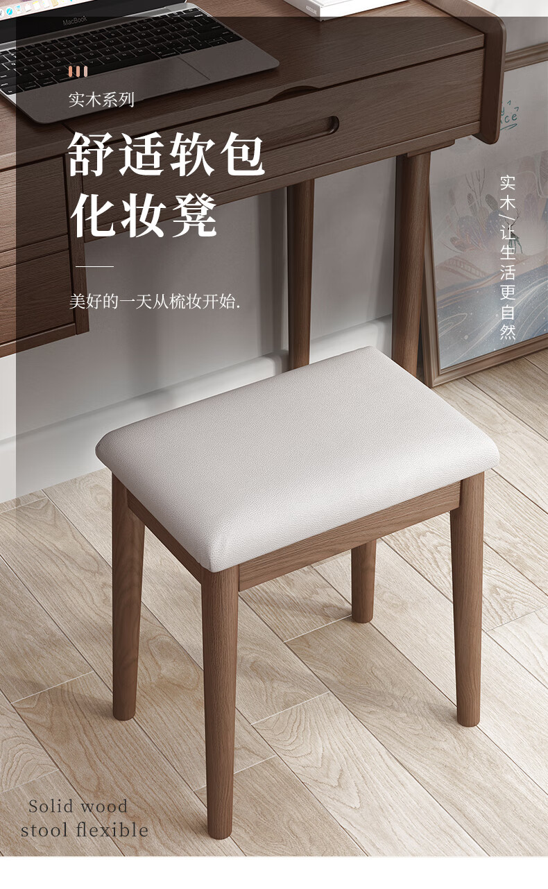 Baiyuda Solid Wood Dressing Stool Modern Simple Soft Bag Stool Home Dressing Table Cosmetic Chair Bedroom Wood Color