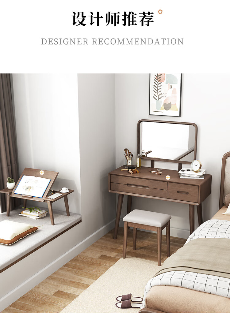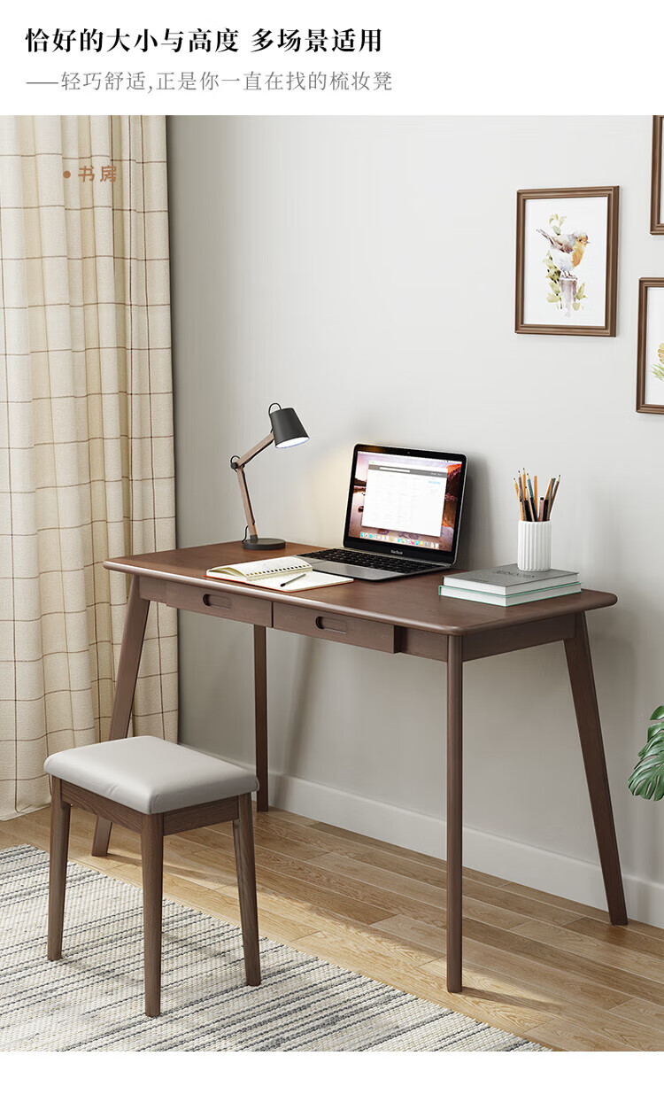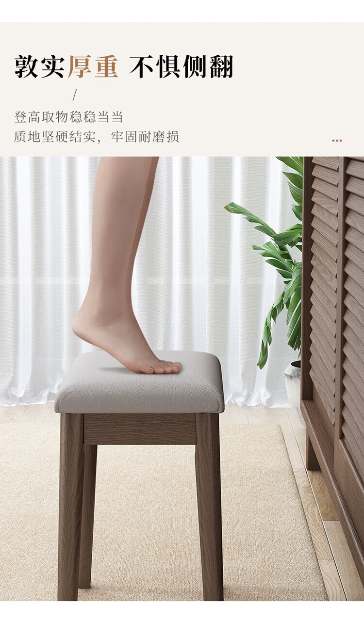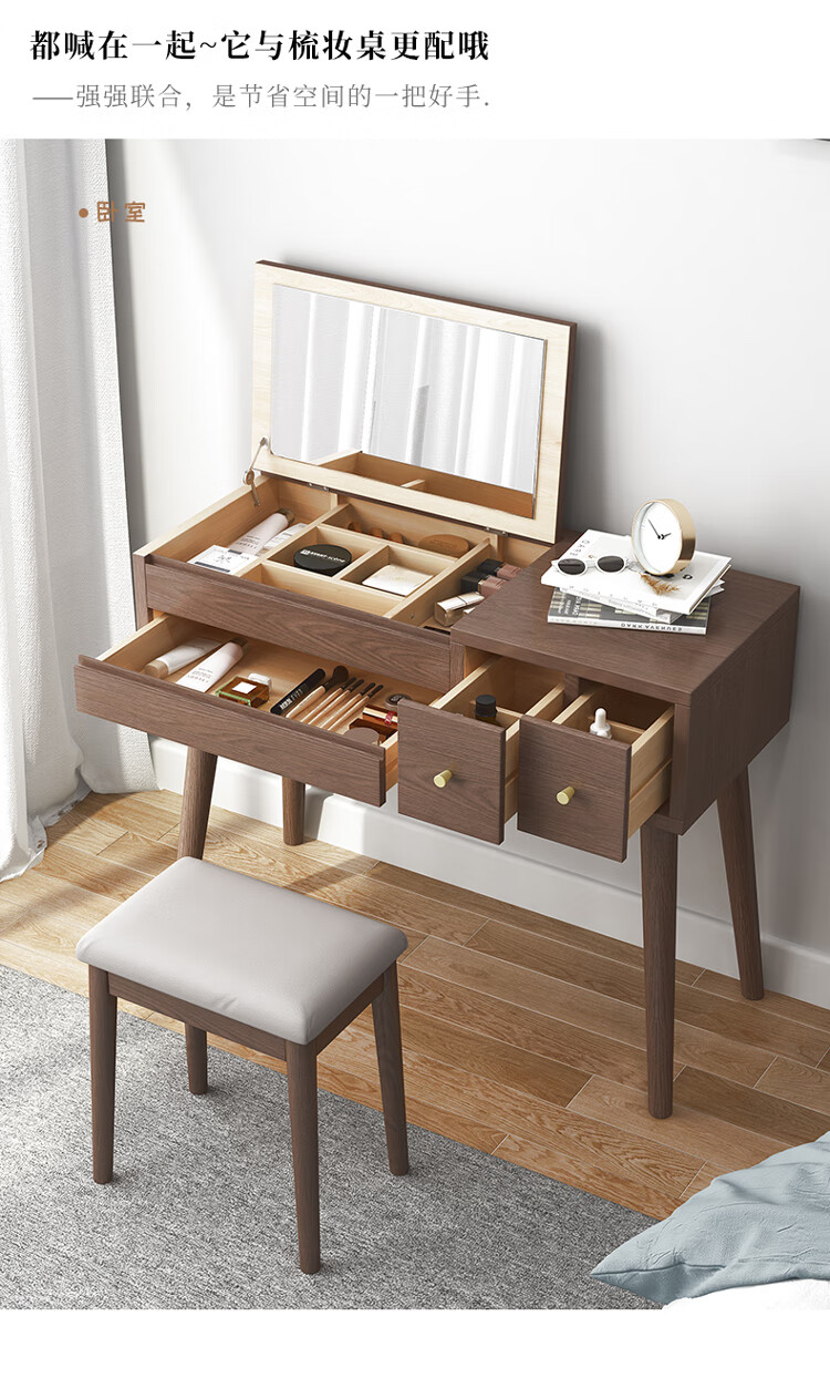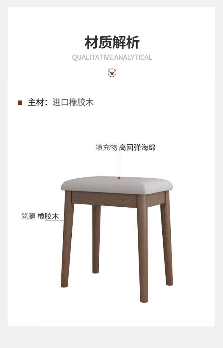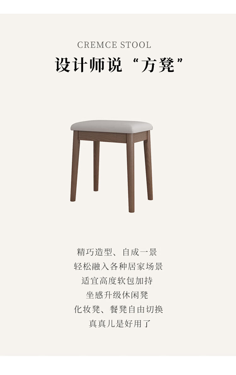Baiyuda Solid Wood Dressing Stool Modern Simple Soft Bag Stool Home Dressing Table Cosmetic Chair Bedroom Wood Color