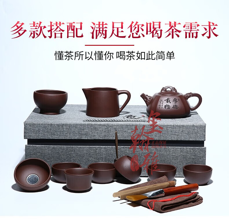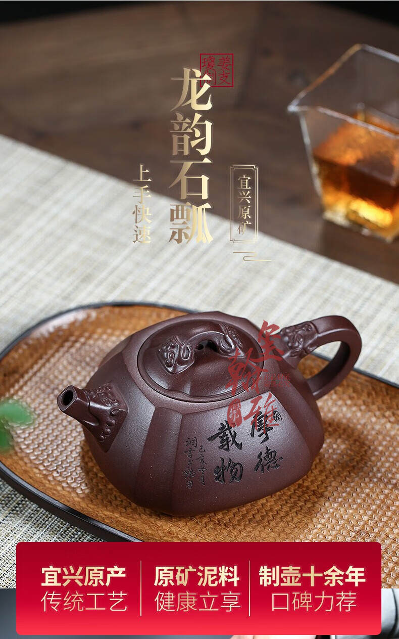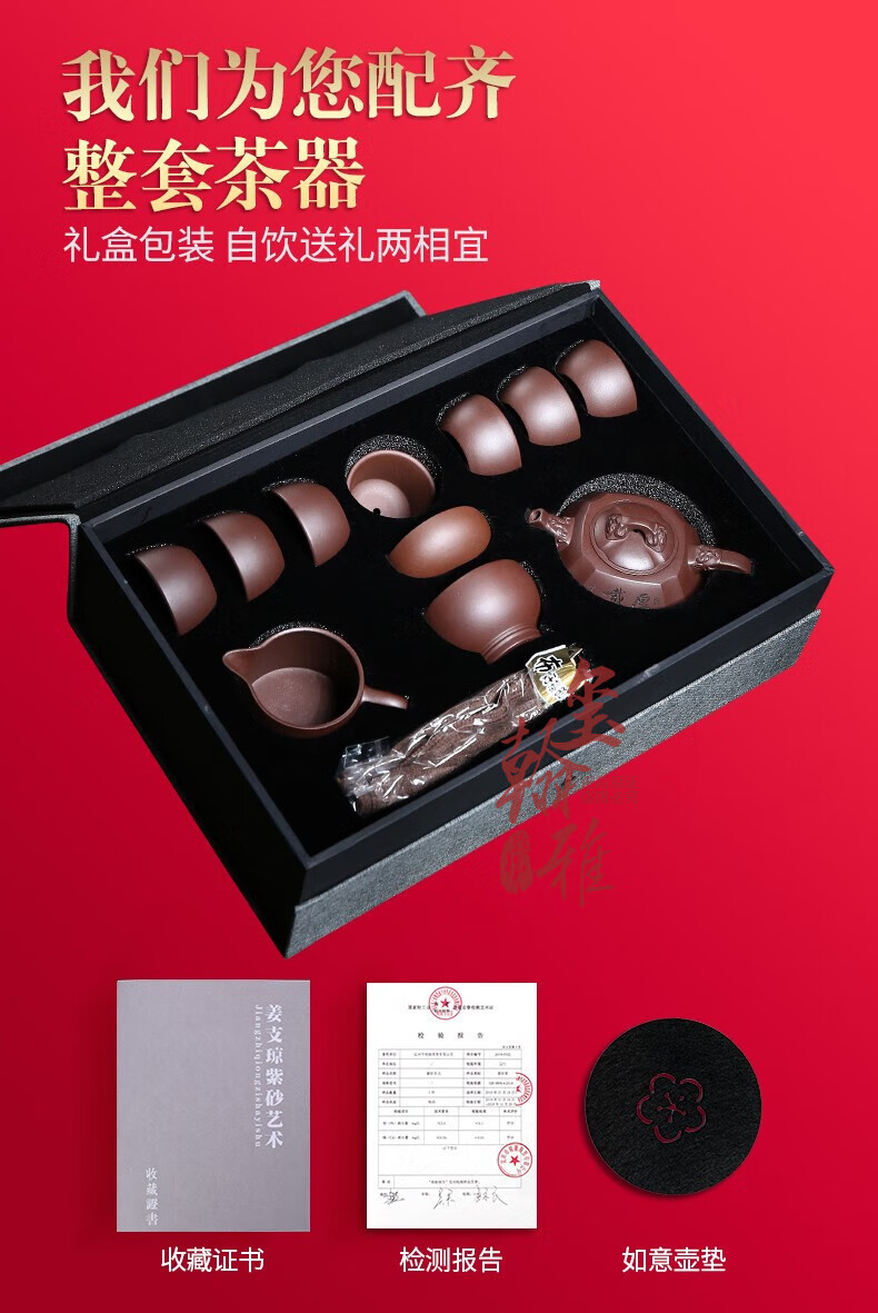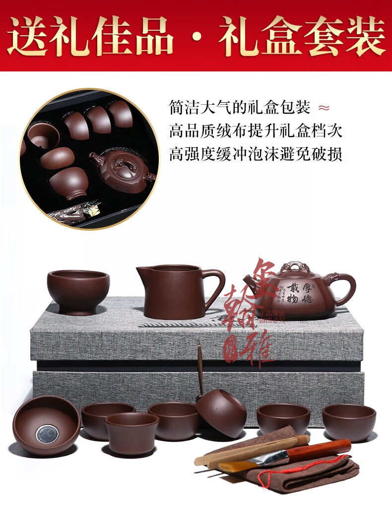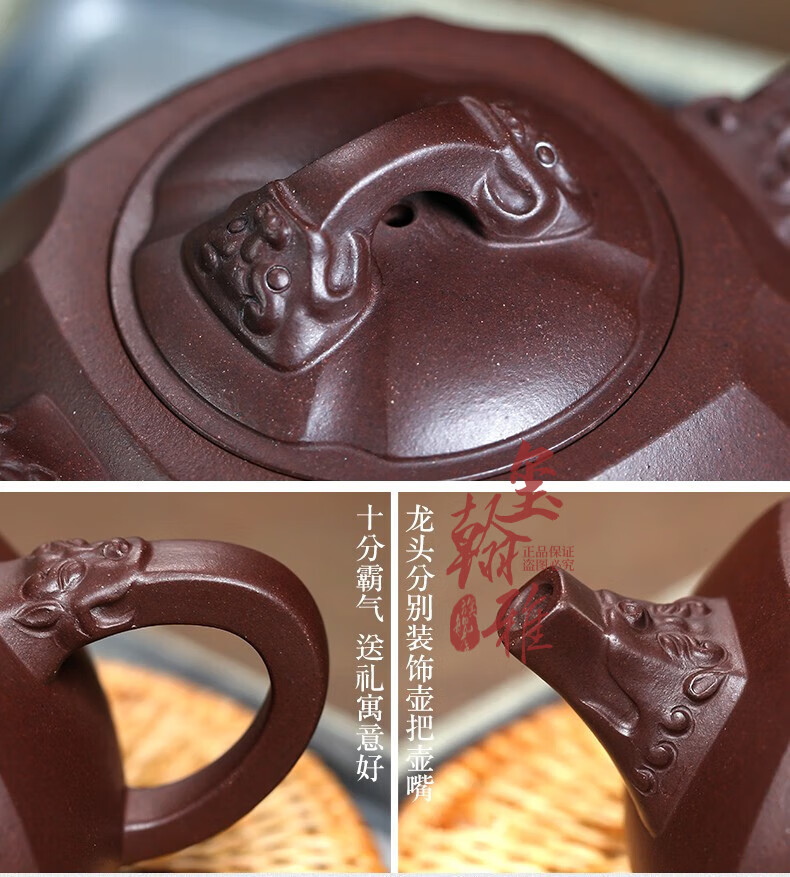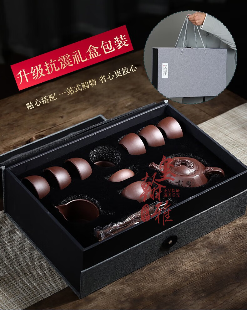 Xihanya Yixing authentic purple clay pot set, high-end gift teapot, high-end gift box, luxury dragon rhyme stone scoop pot, home kung fu tea set gift box, office tea set, purple clay dragon charm stone scoop, virtuous 15-piece gift box set