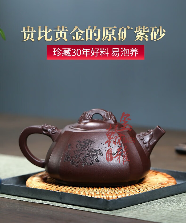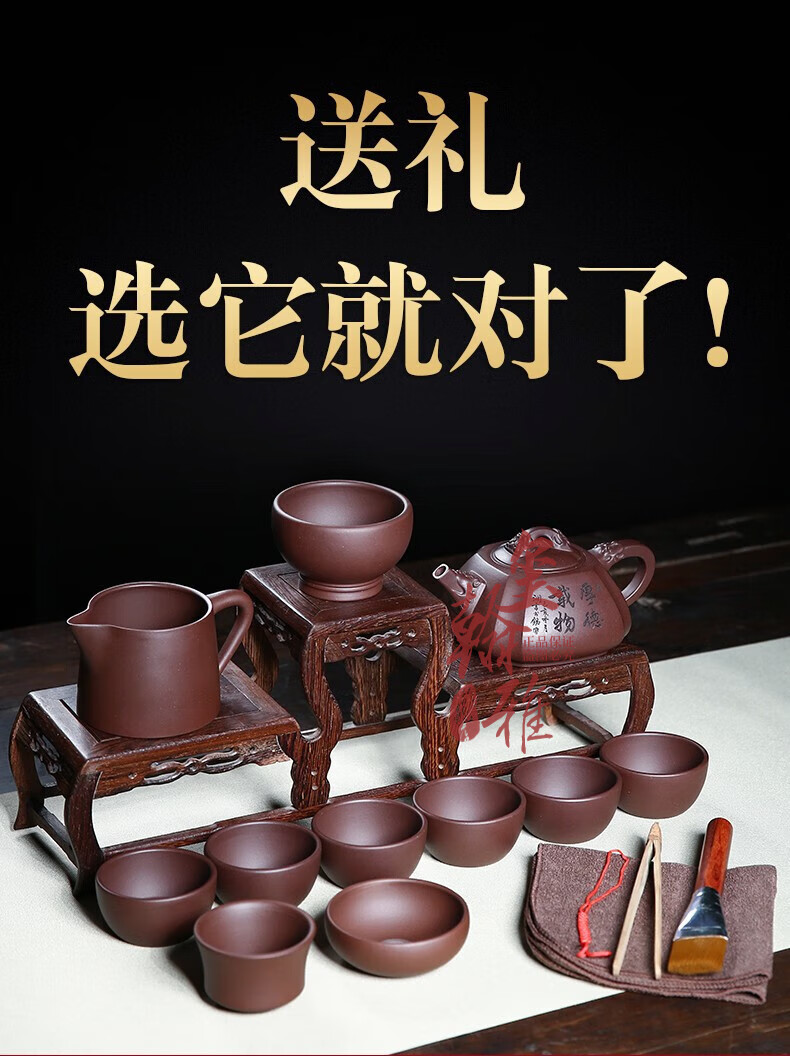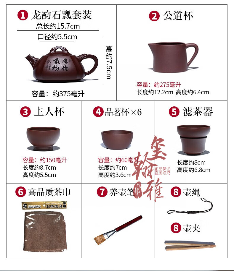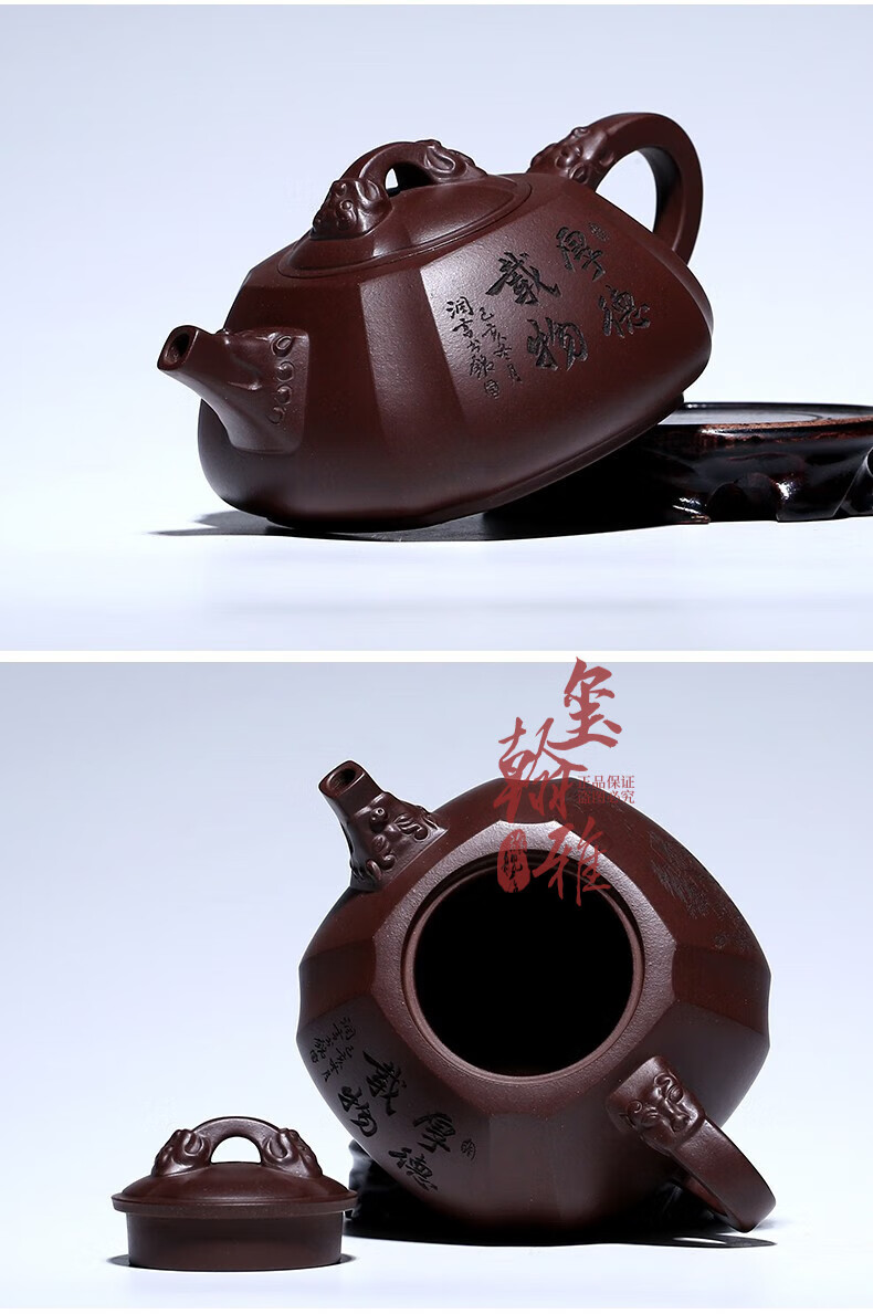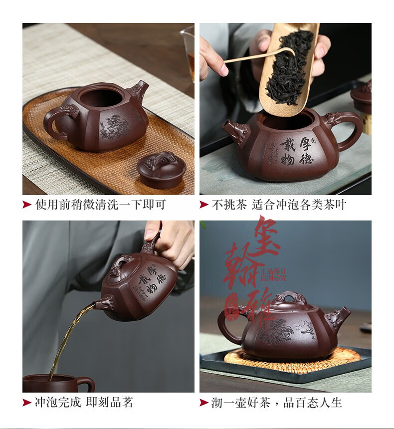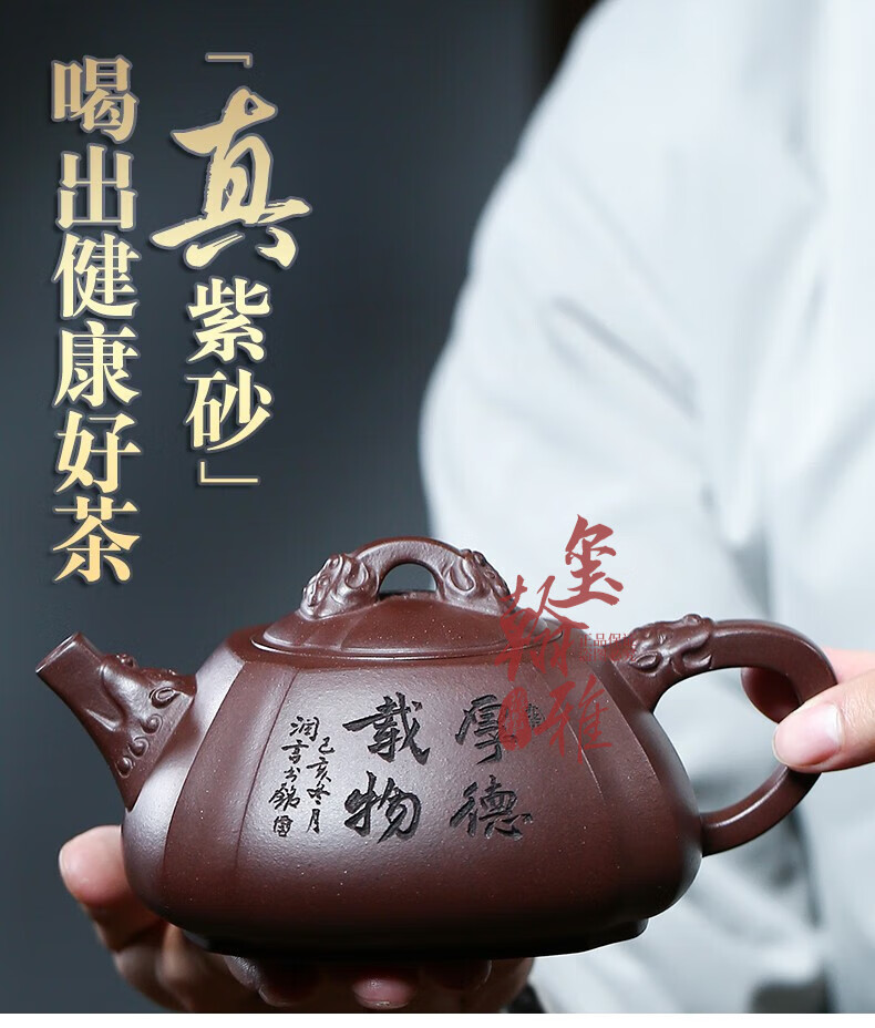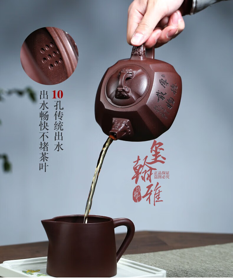 Xihanya Yixing authentic purple clay pot set, high-end gift teapot, high-end gift box, luxury dragon rhyme stone scoop pot, home kung fu tea set gift box, office tea set, purple clay dragon charm stone scoop, virtuous 15-piece gift box set