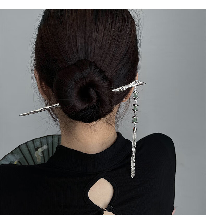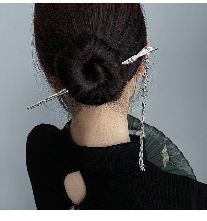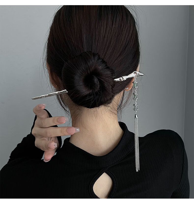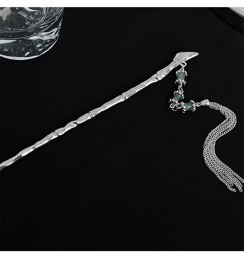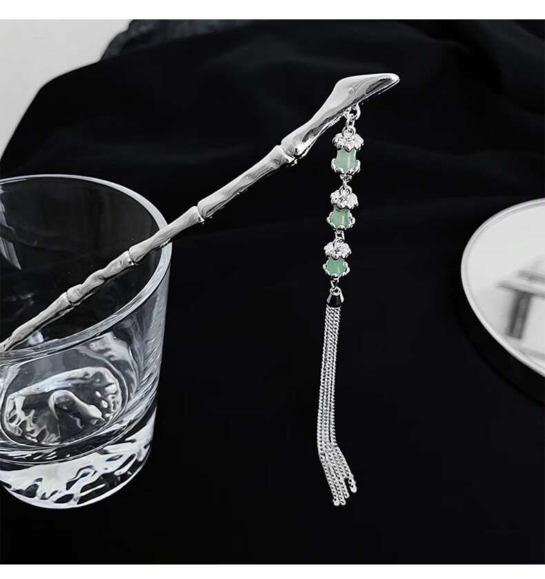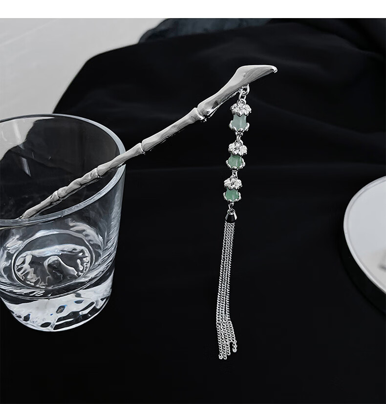 MiU Se ancient style bamboo jade tassel hairpin new Chinese hairpin simple modern hairpin design hair accessories AA0515 silver bamboo tassel hairpin