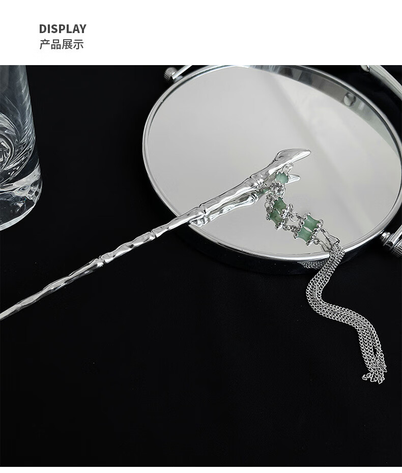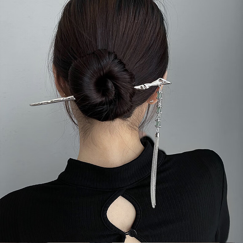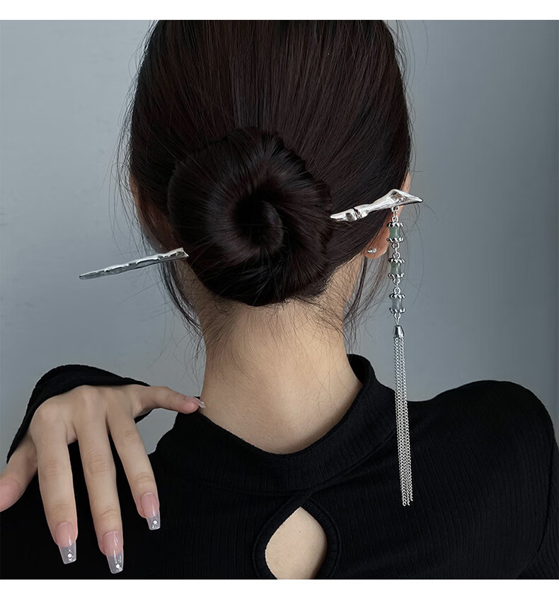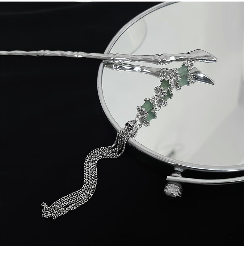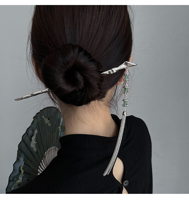 MiU Se ancient style bamboo jade tassel hairpin new Chinese hairpin simple modern hairpin design hair accessories AA0515 silver bamboo tassel hairpin