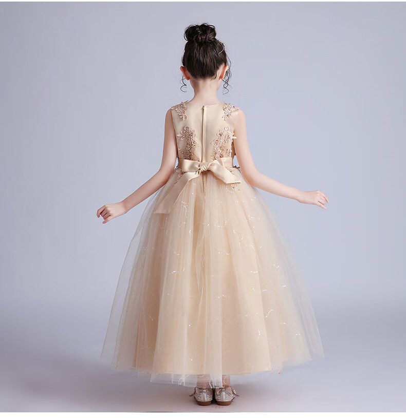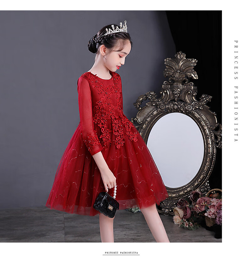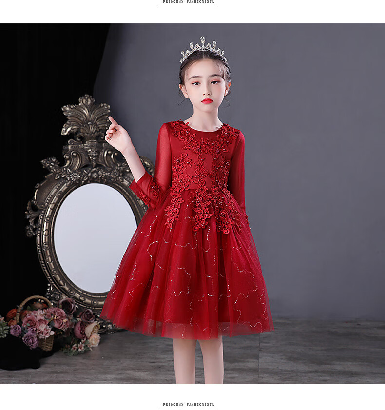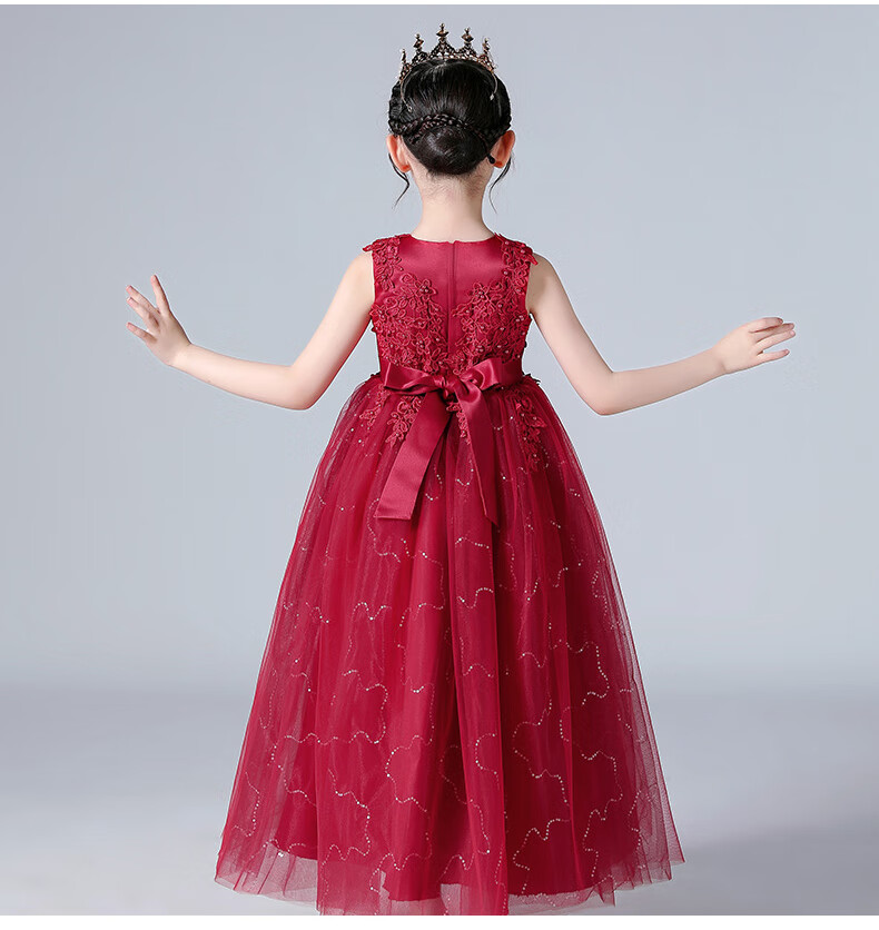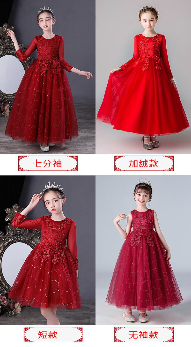 Children's knitted girl princess dress flower girl dress dress wedding dress children's dress tutu skirt children's program performance dress long wine red 160