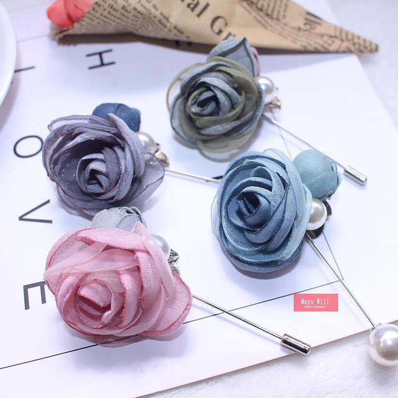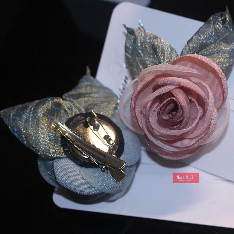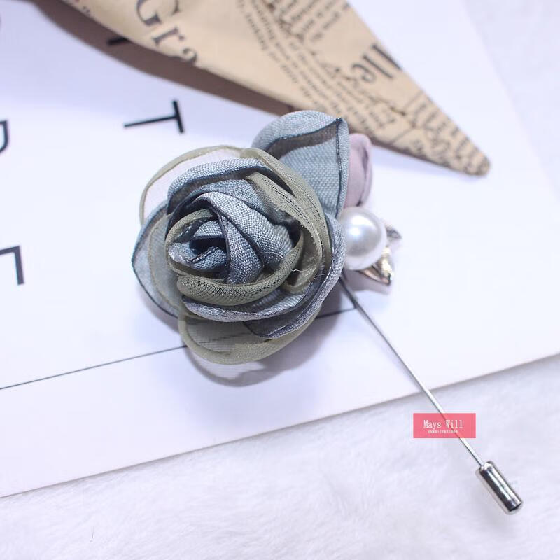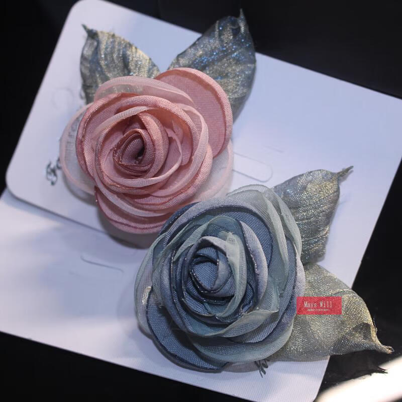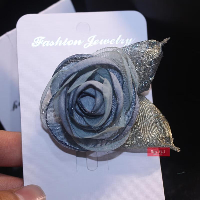 Mays Will temperament camellia brooch fabric Japanese and Korean female flowers long blue needle.