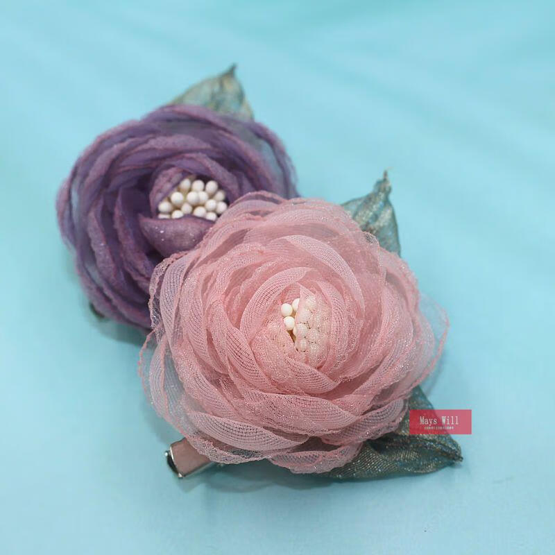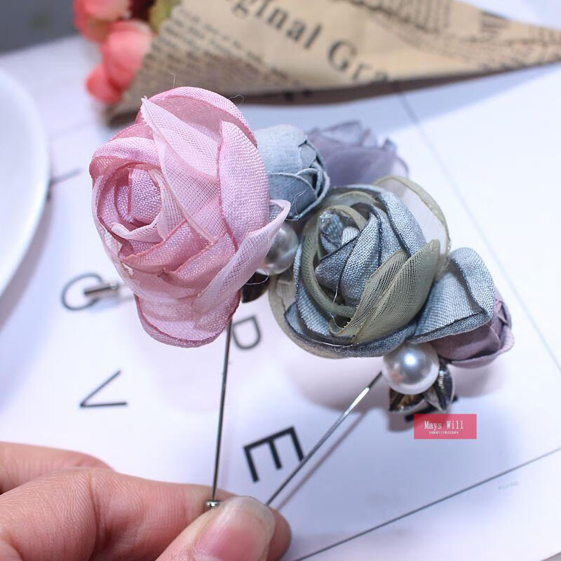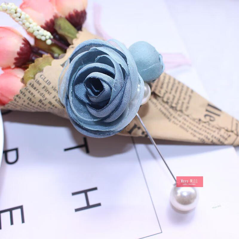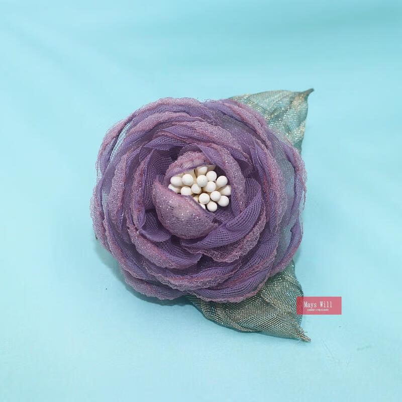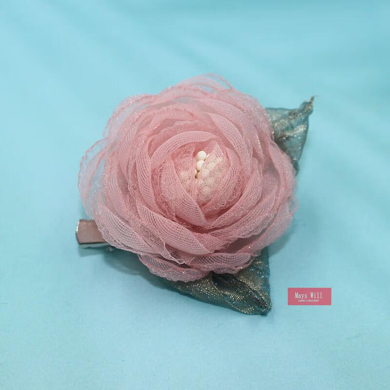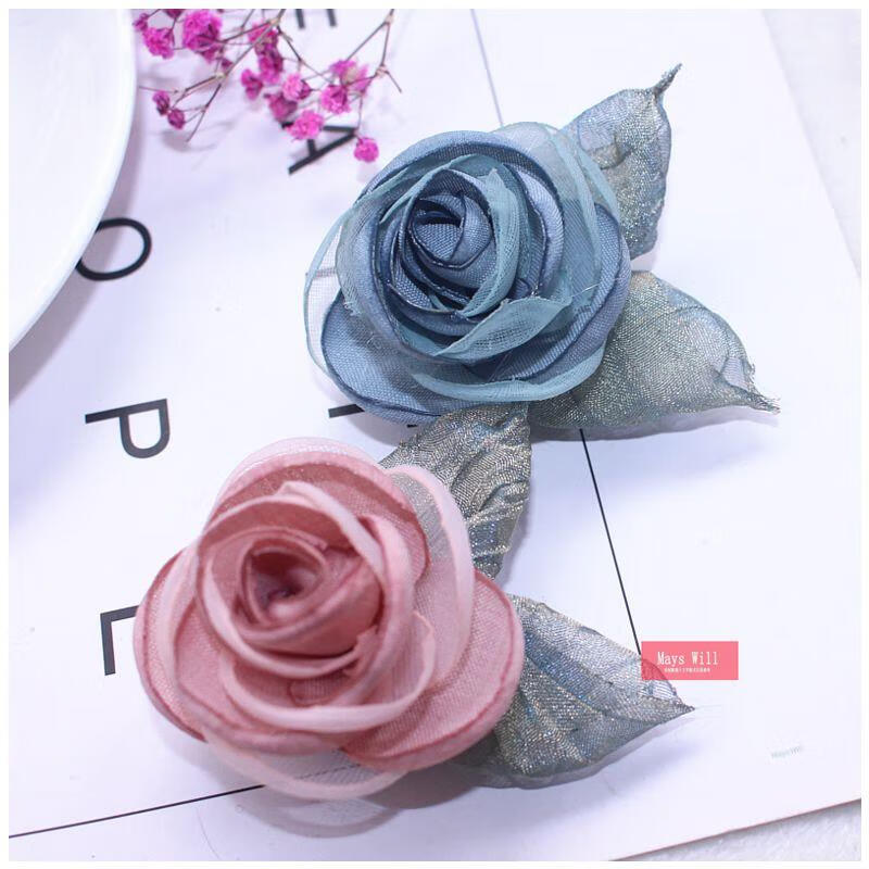 Mays Will temperament camellia brooch fabric Japanese and Korean female flowers long blue needle.