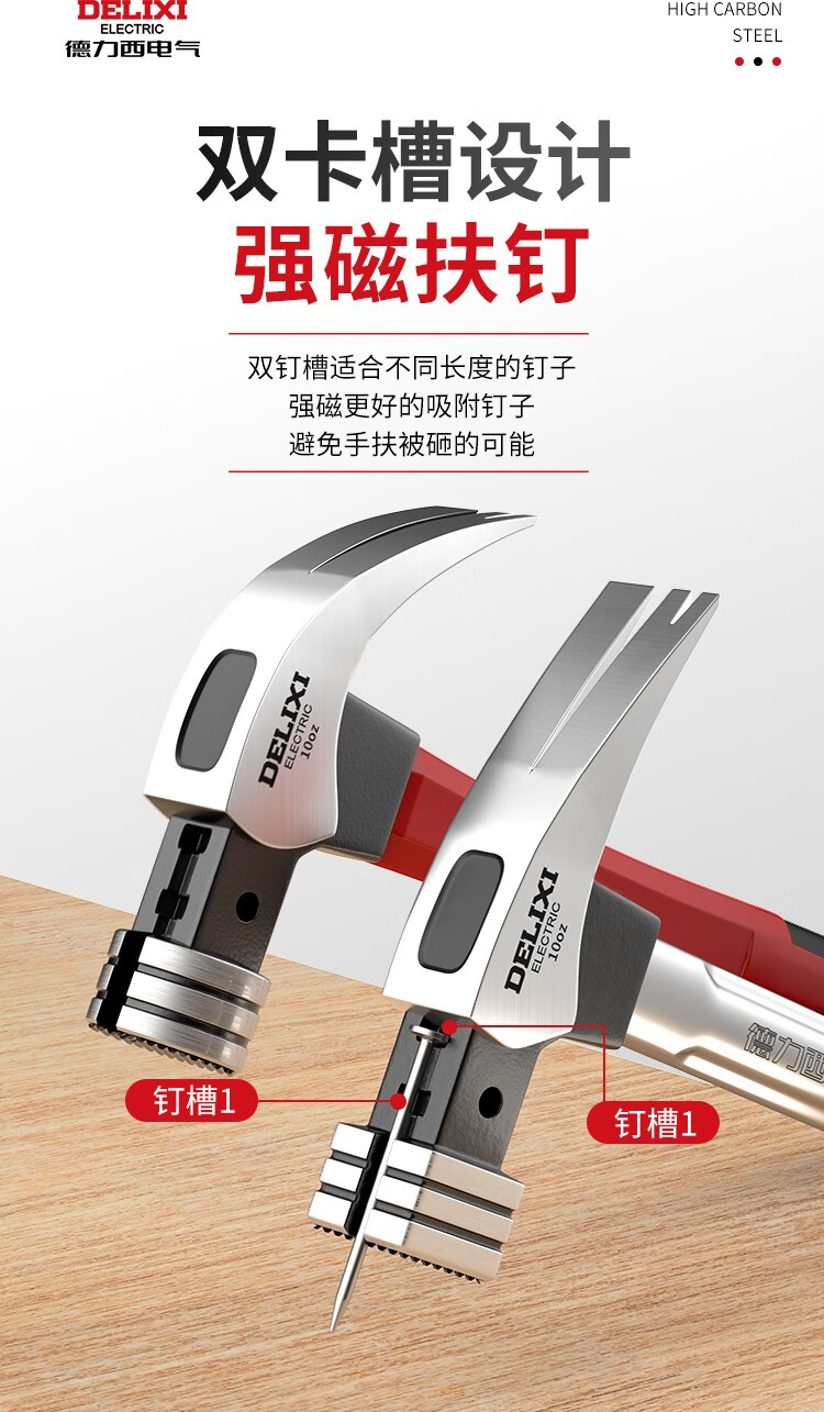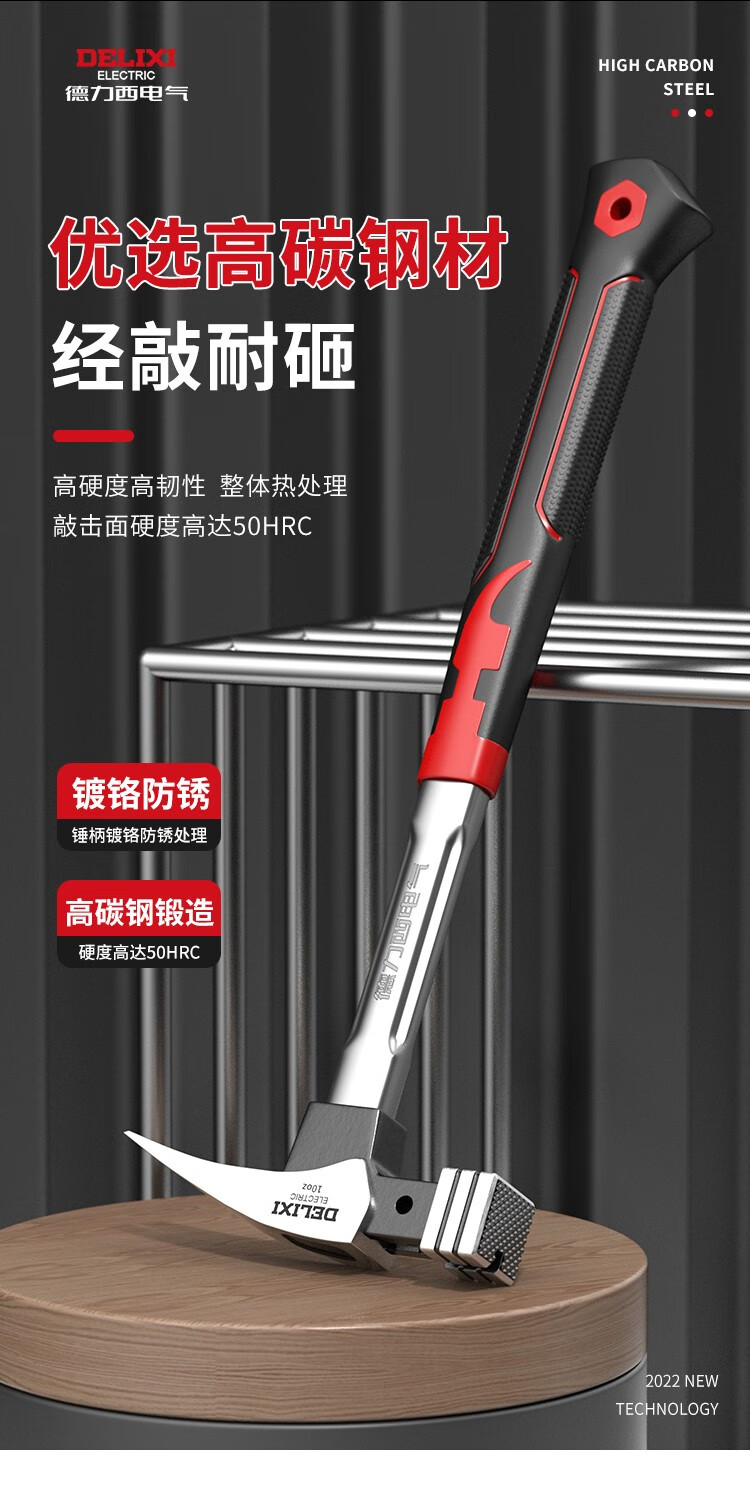 Delixi Electric Claw Hammer Woodworking Hammer Hardware Household Hammer Nail Pickup Insulated Small Hammer Fiber Handle Right Angle Square Head Integrated Hammer 6 Two Square Head Straight Tail Composite Fiber Handle
