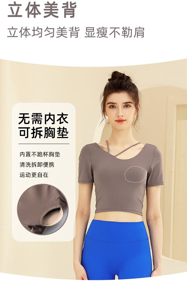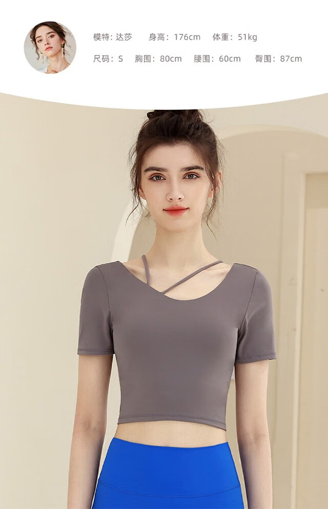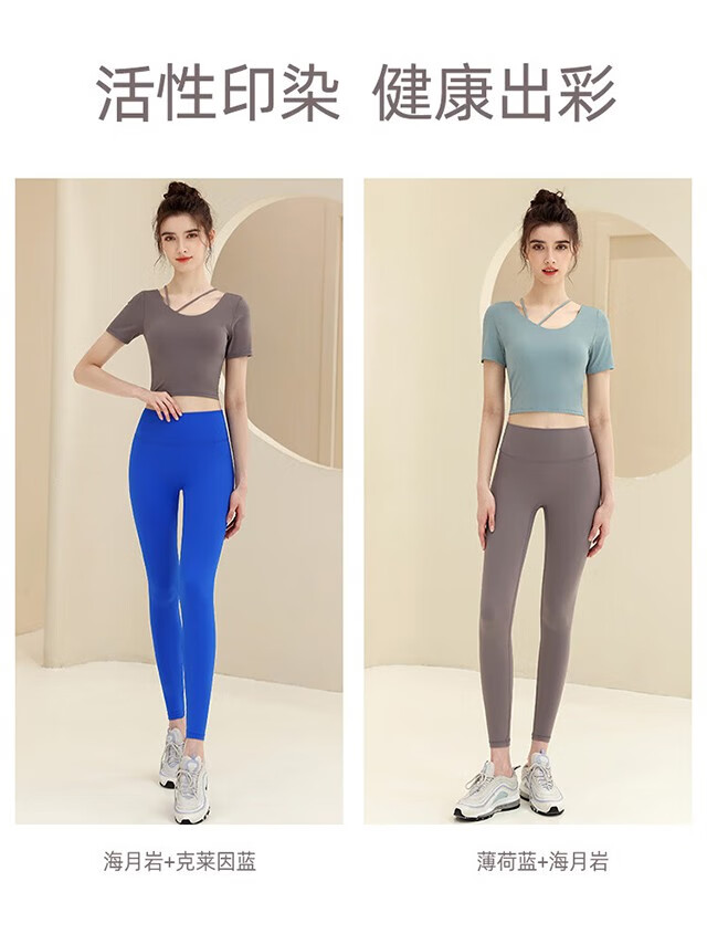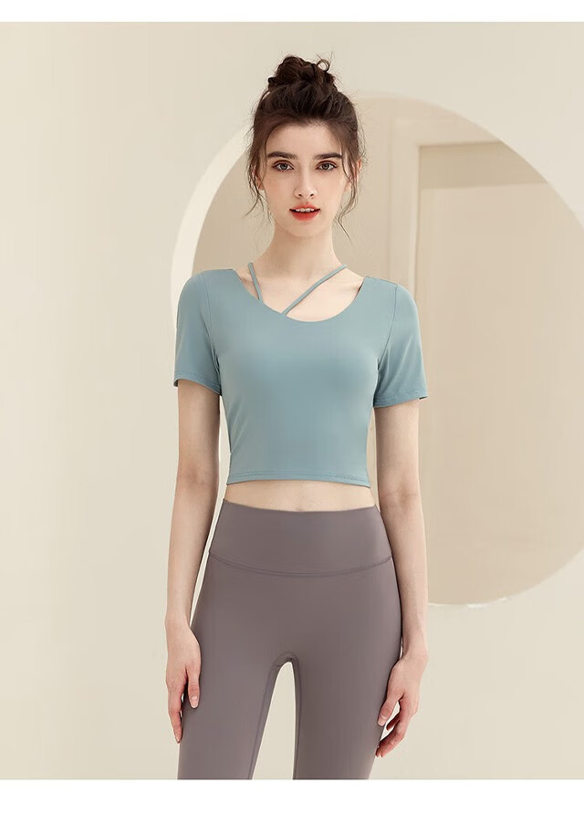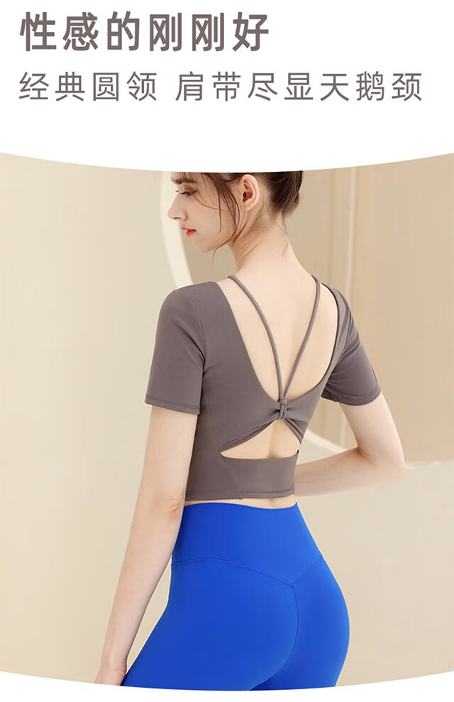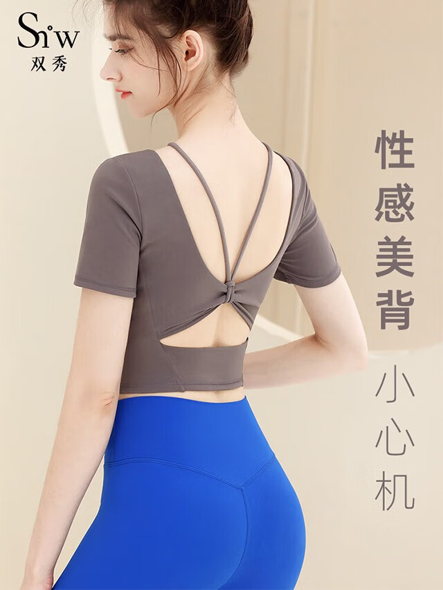 Shuangxiu Yoga Wear Set Sexy Back Slimming Pilates Training Running Fitness Mint Blue Short Sleeve + Haiyue Rock Pants S (85-100Jin Jin is equal to 0.5kg)