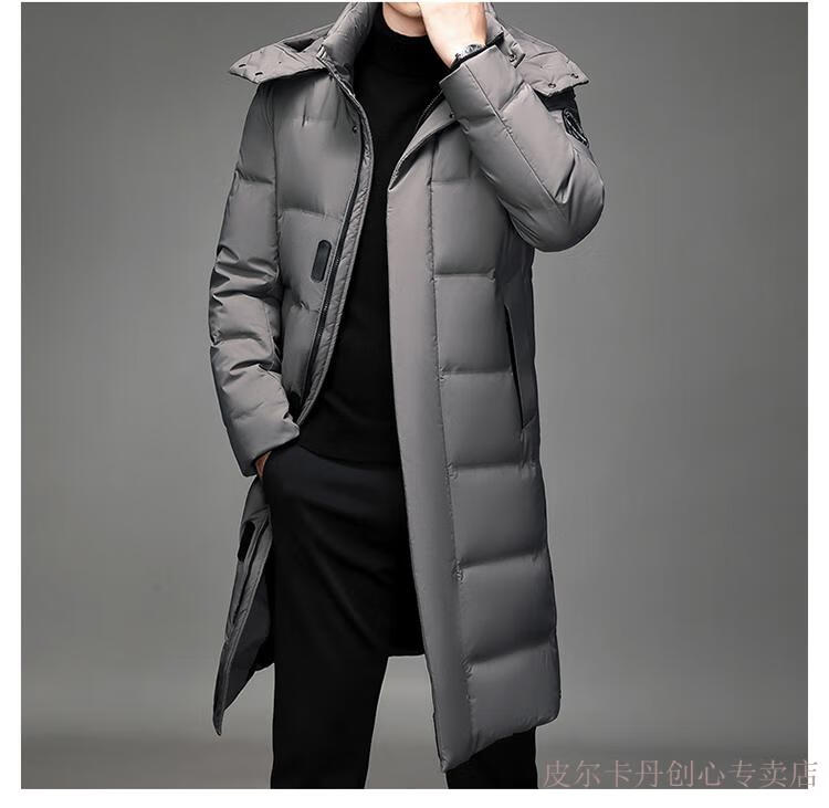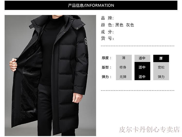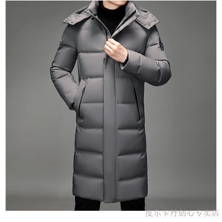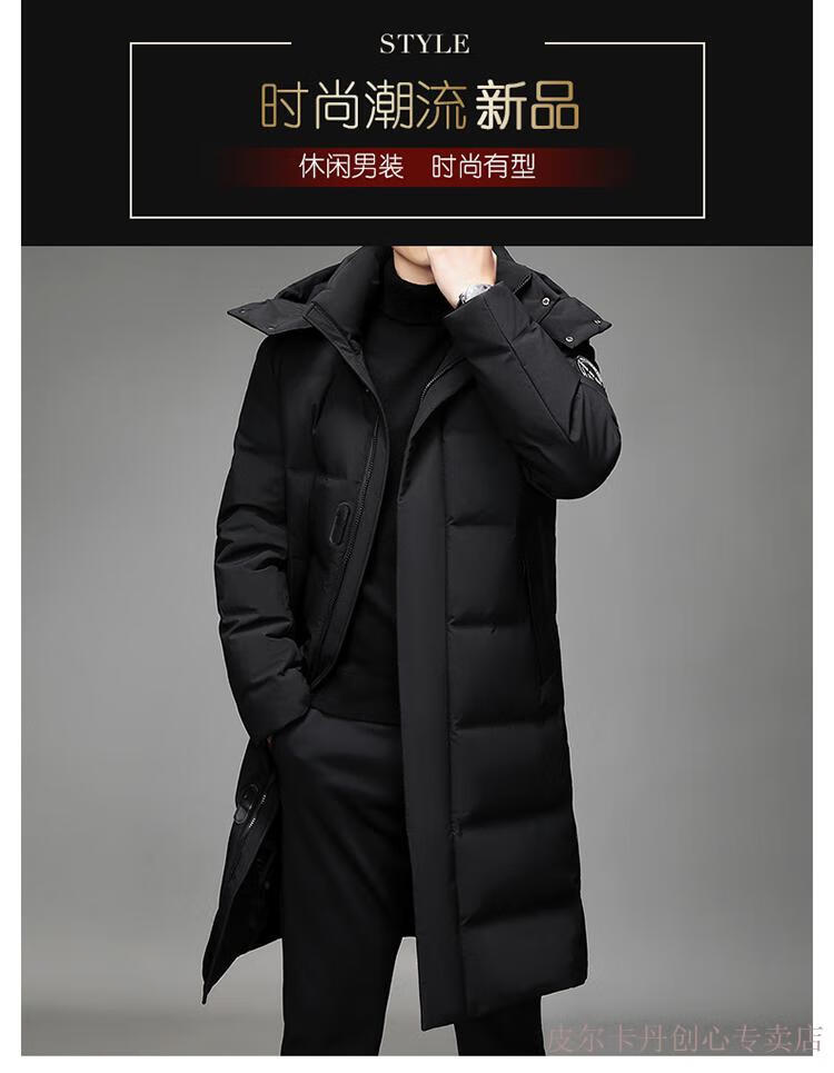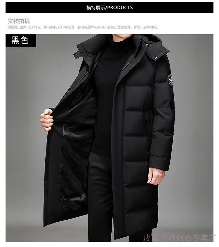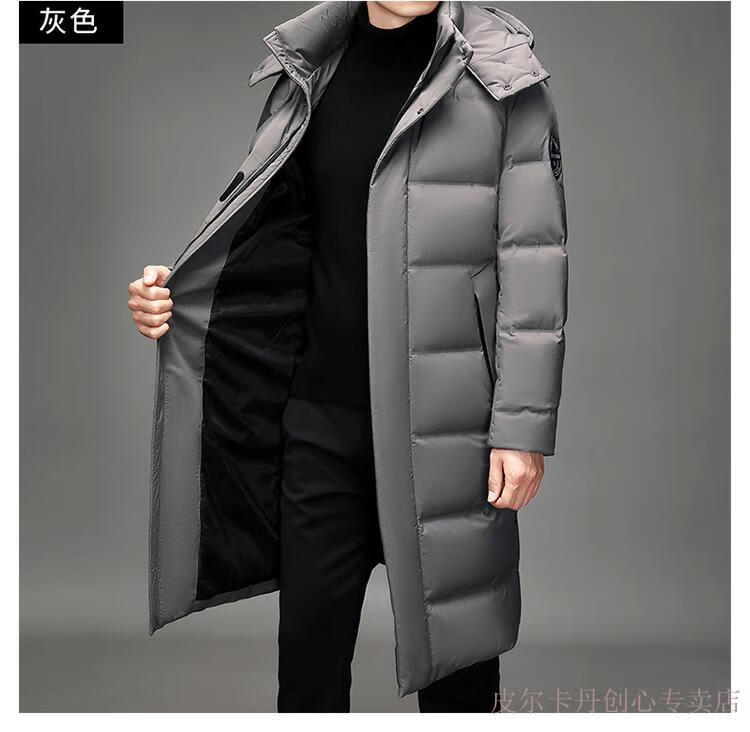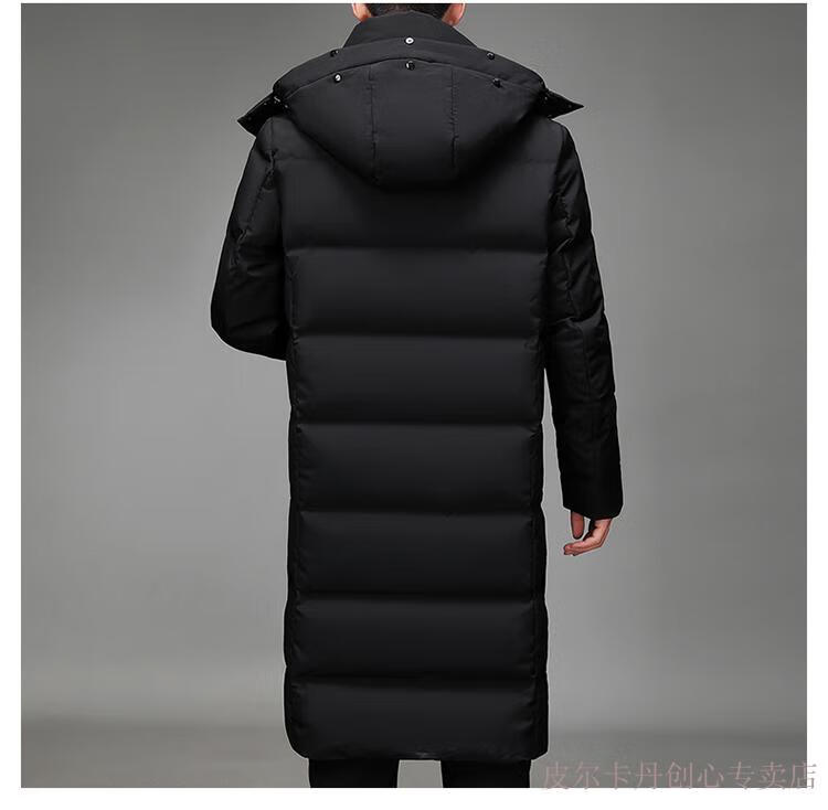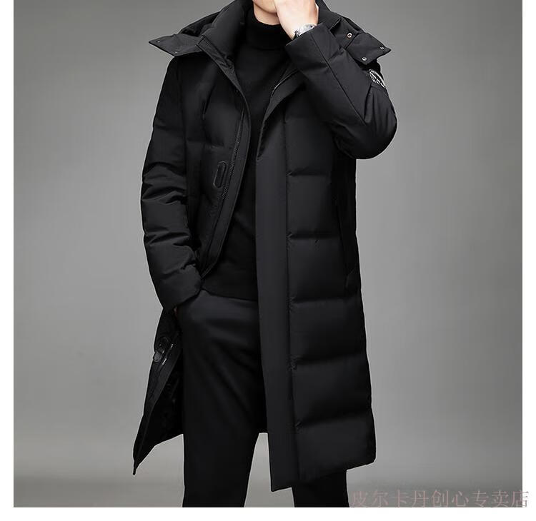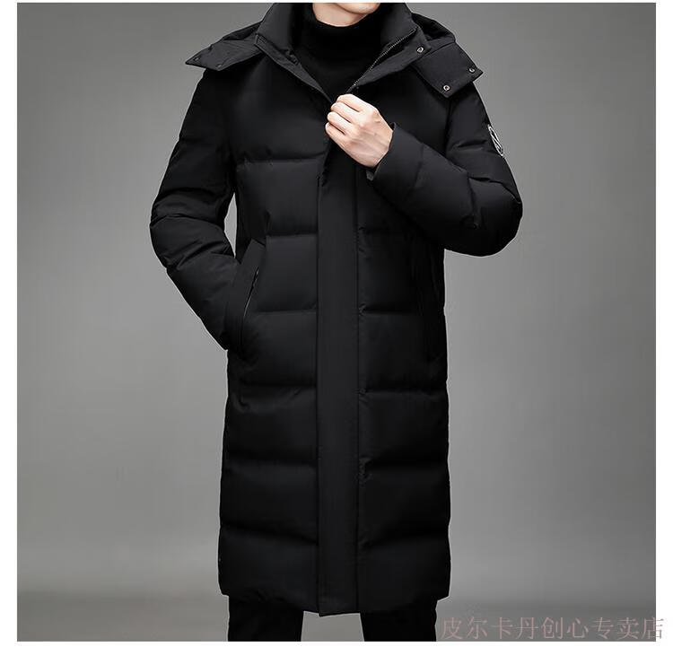 Pierre Cardin Men's Down Jacket Men's New Winter Long Over-the-Knee Thickened Warm Large Size Versatile Casual Jacket Knitted G Flower 377-Black 2XL Recommended 150-170Jin Jin equals 0.5 kg