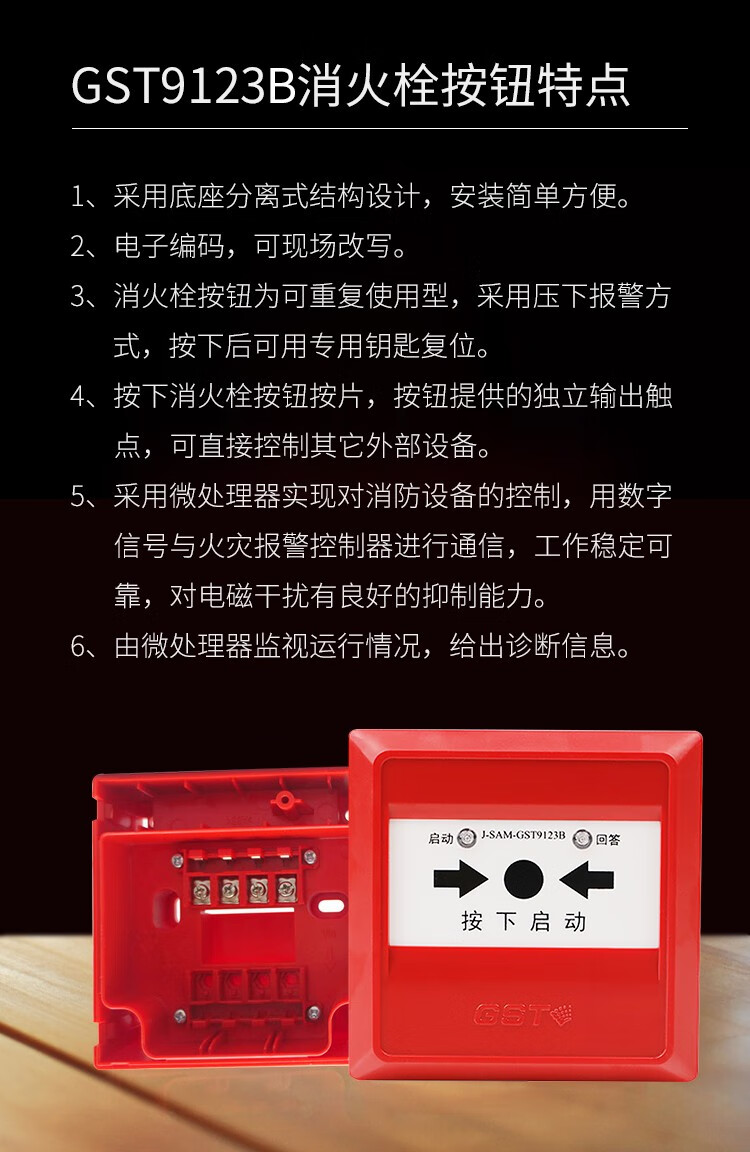 Bay fire hydrant button J-SAM-GST9123B fire alarm pump start button alarm 9123A J-SAM-GST9123B two-wire system