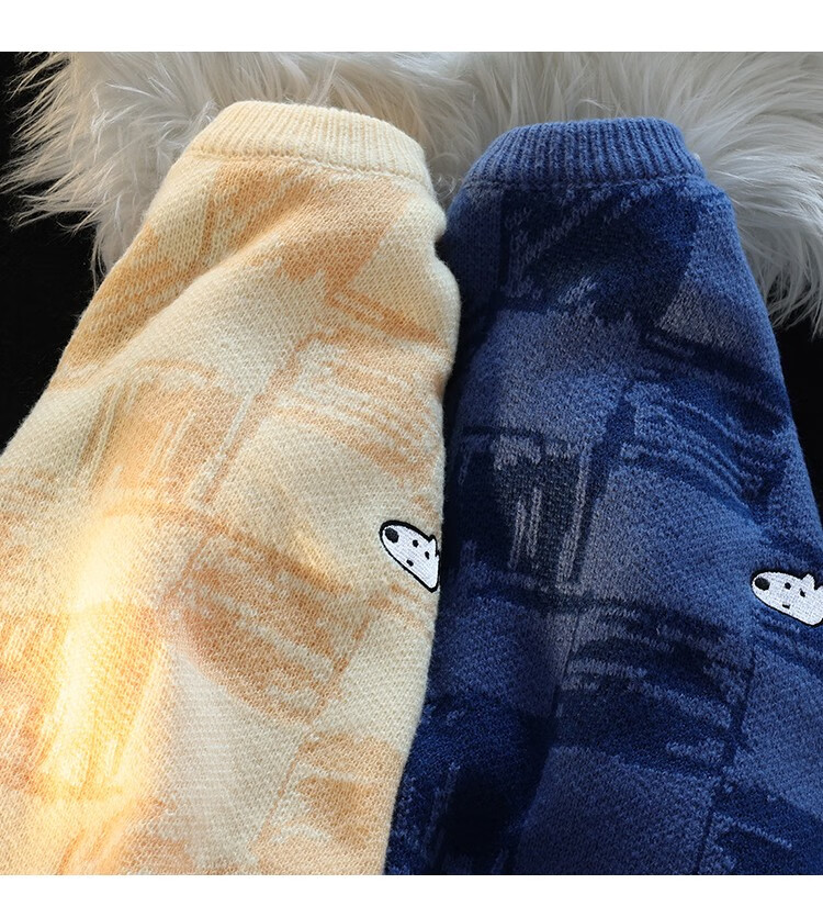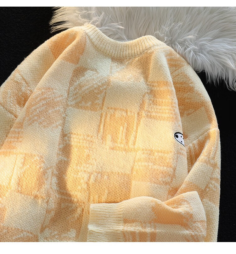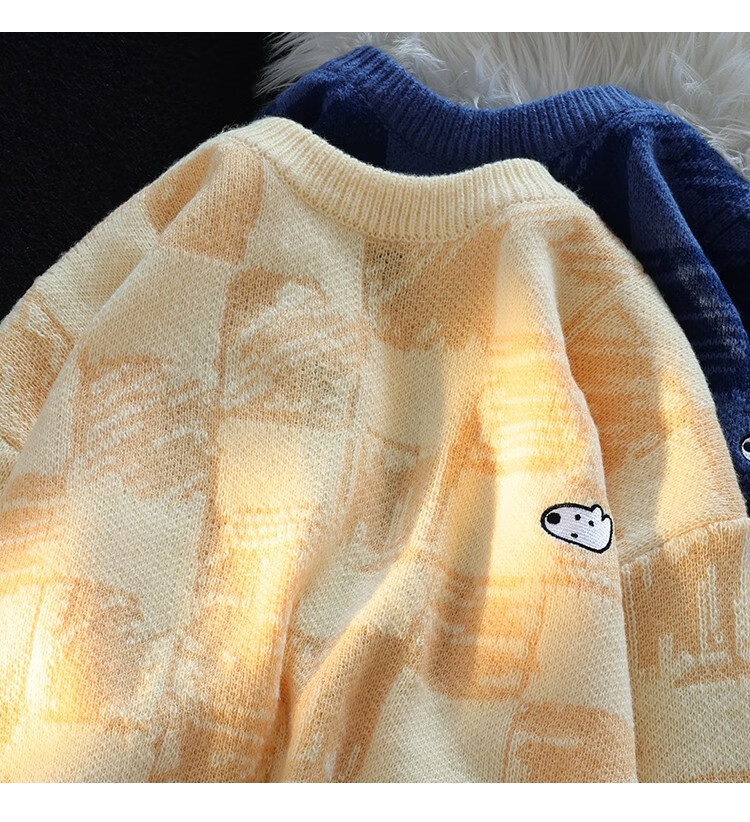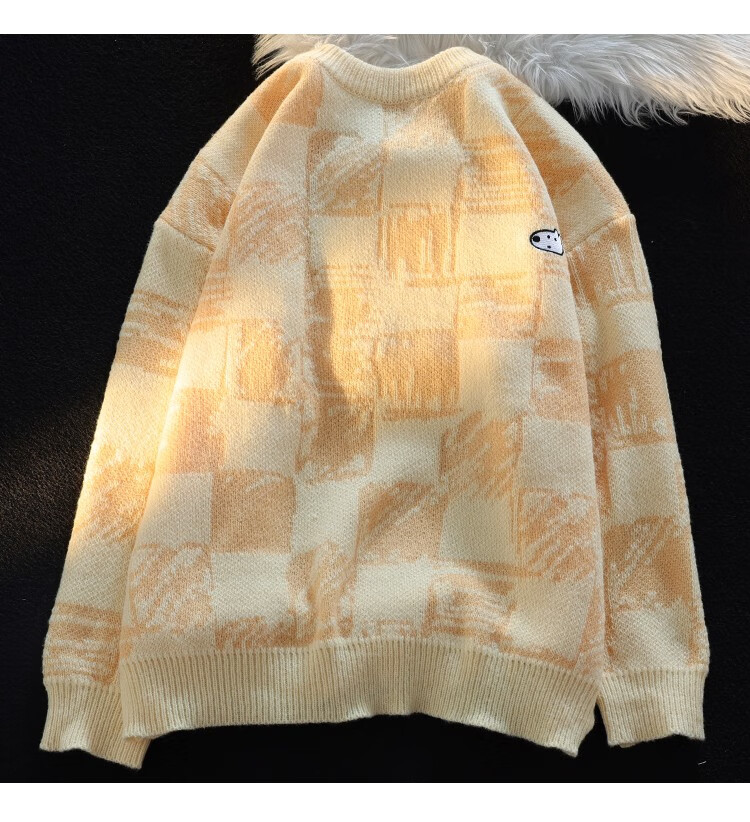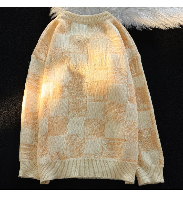 POUM Men's Clothing Joint New Year Couple Sweater Men's Autumn Loose Casual Bottoming Sweater Hong Kong Style Casual Round Neck Jacket TCFS-553 Apricot L