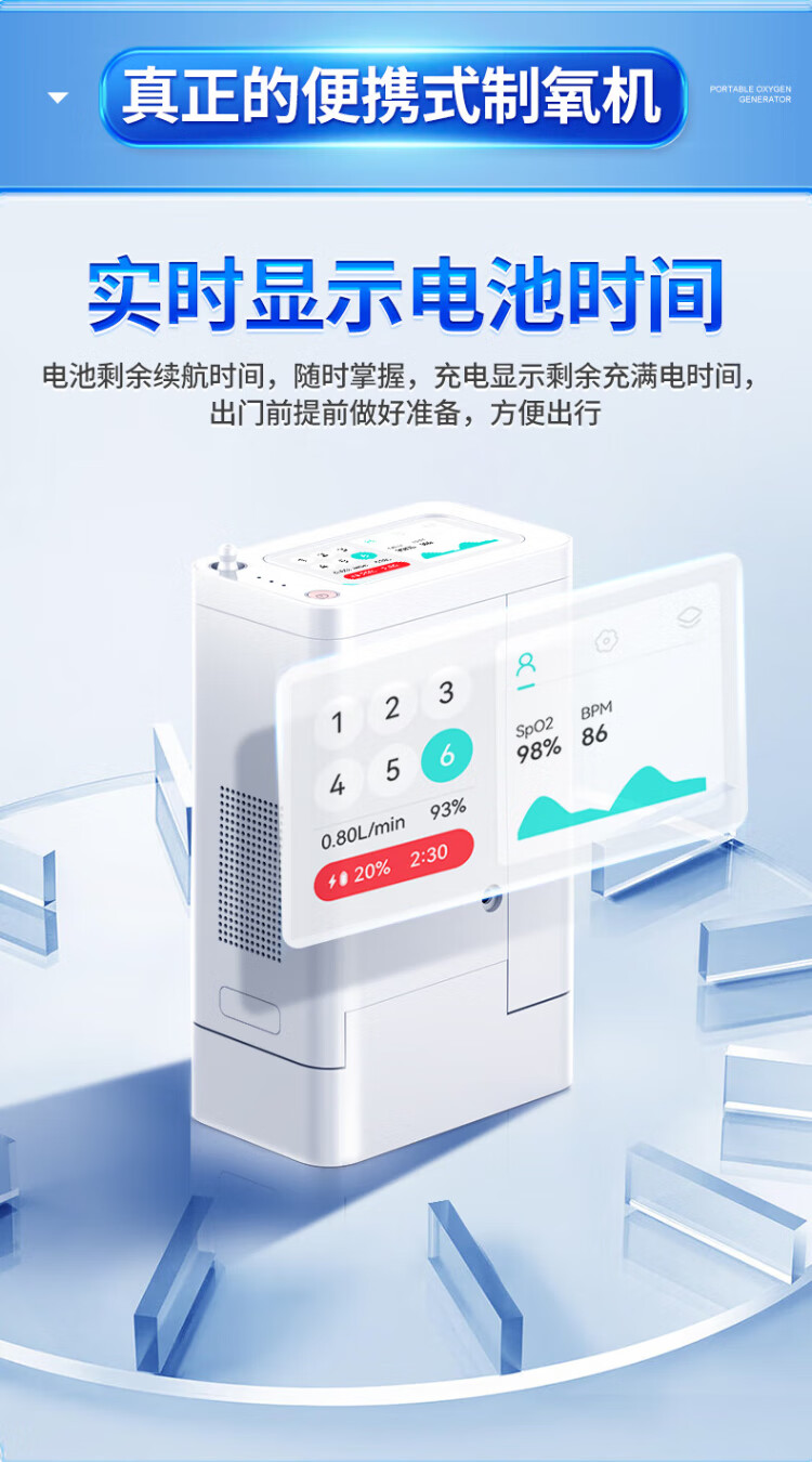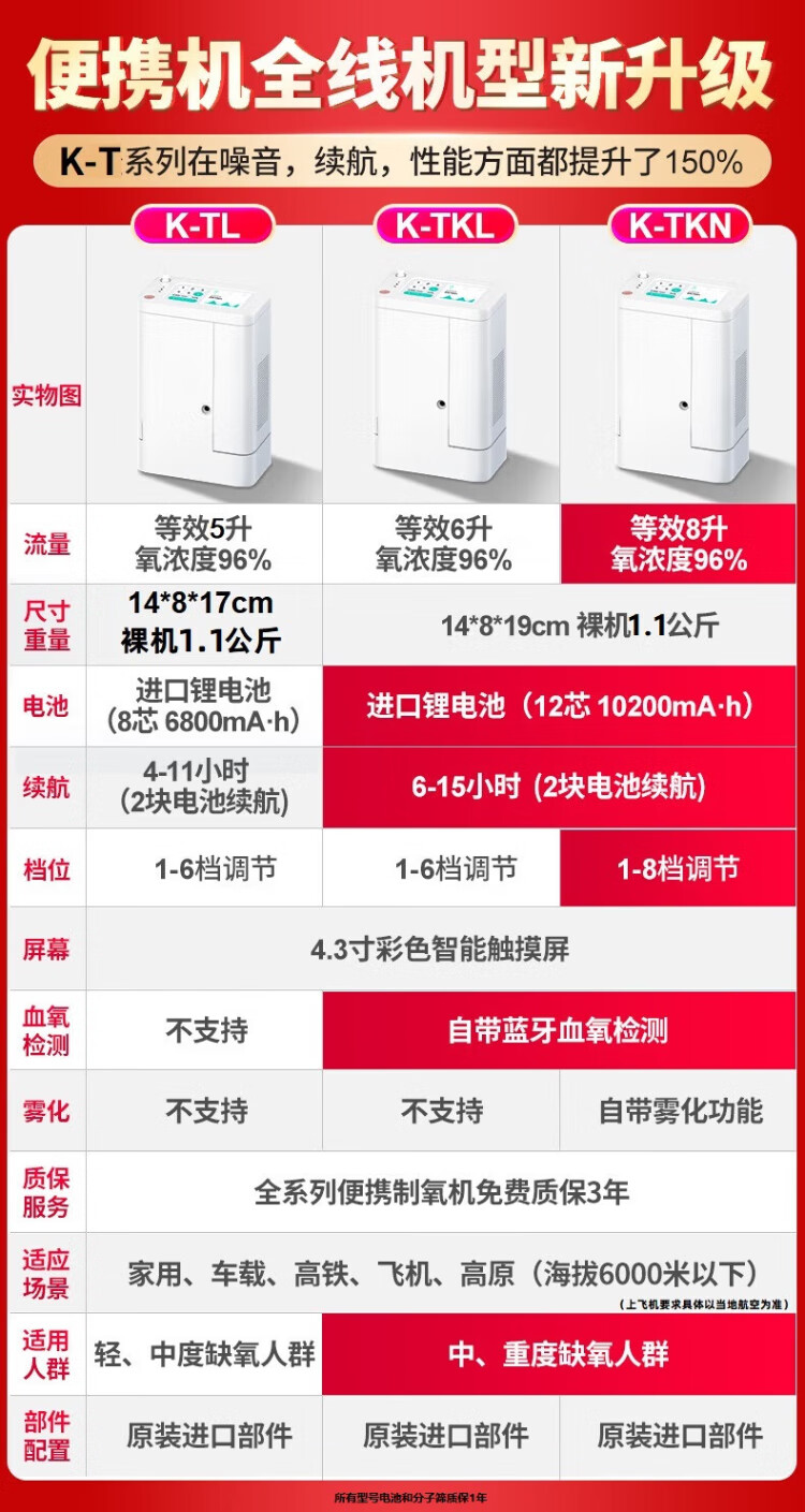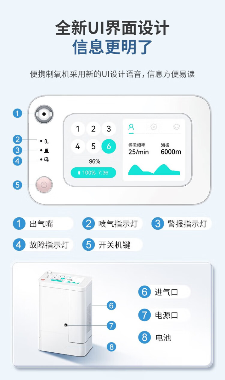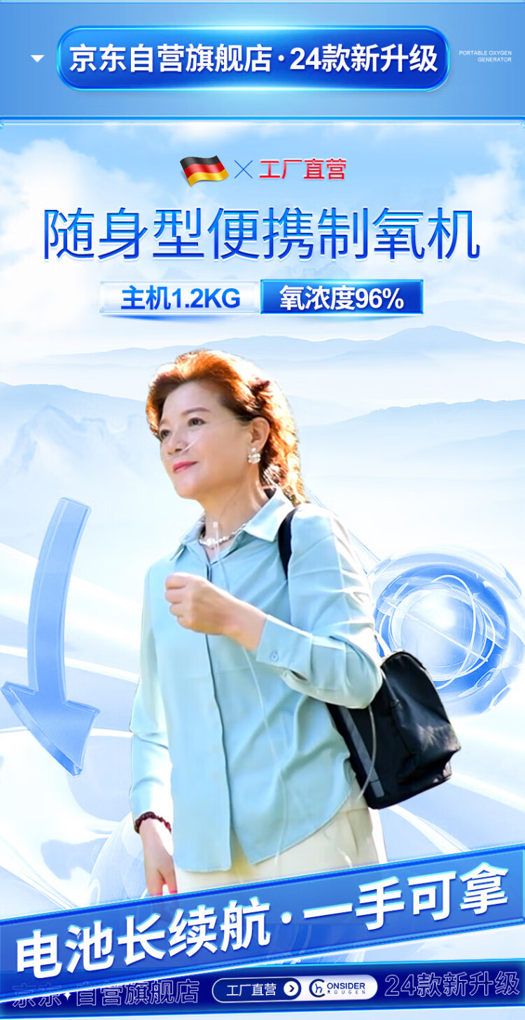Koside, a German brand, high-end portable oxygen concentrator, portable rechargeable oxygen machine for the elderly, plateau oxygen inhaler, 24-year-old new 6-liter K-TKL (2 batteries, 24 cells in total)