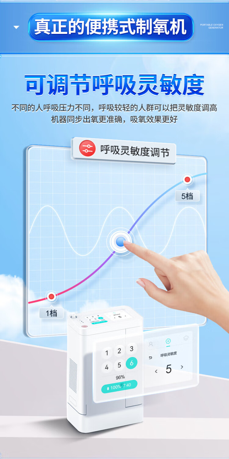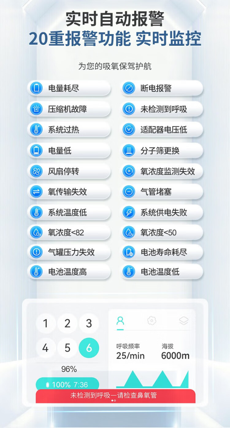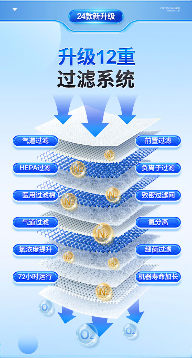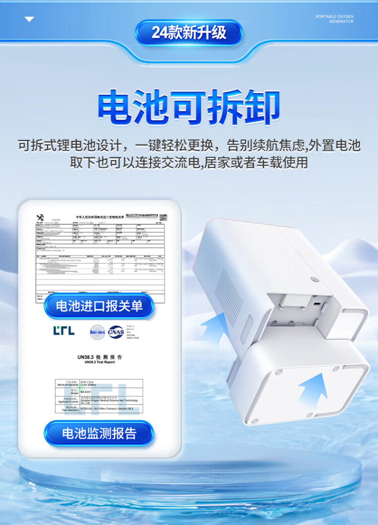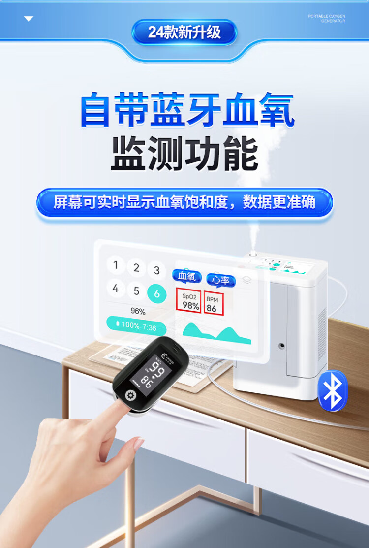 Koside, a German brand, high-end portable oxygen concentrator, portable rechargeable oxygen machine for the elderly, plateau oxygen inhaler, 24-year-old new 6-liter K-TKL (2 batteries, 24 cells in total)