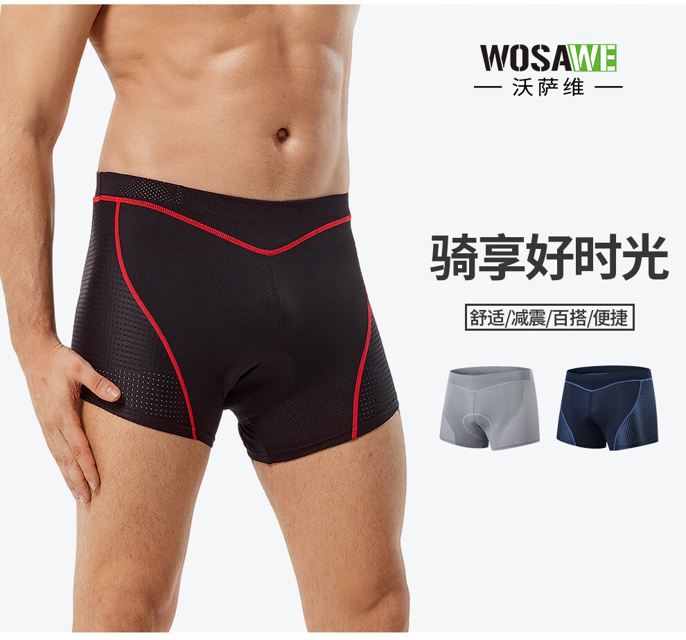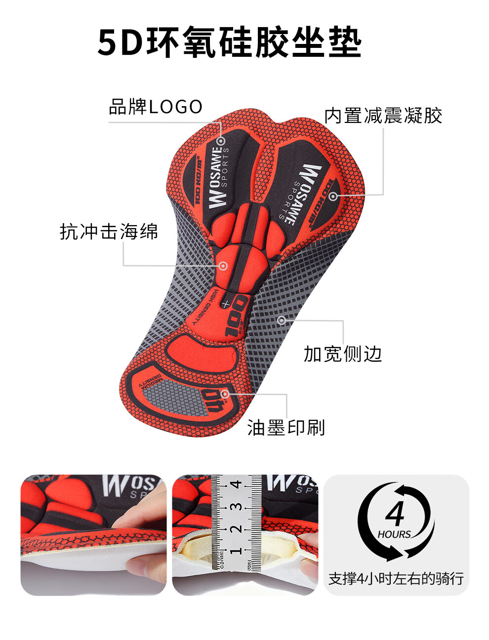 WOSAWE road cycling briefs for men and women, silicone shock-absorbing cushions, breathable and quick-drying mountain bike shorts, black and red high-end style - epoxy 5D silicone pad L (suitable for 70-80 kg)