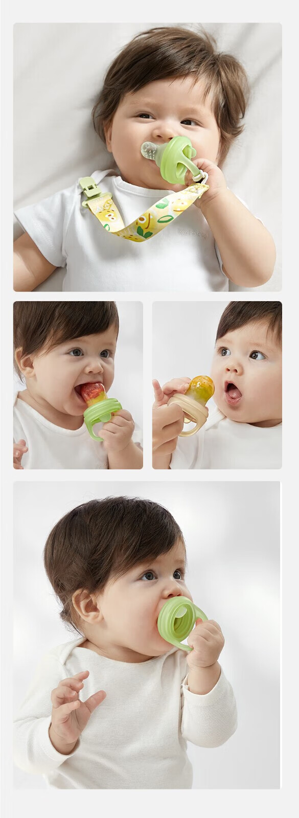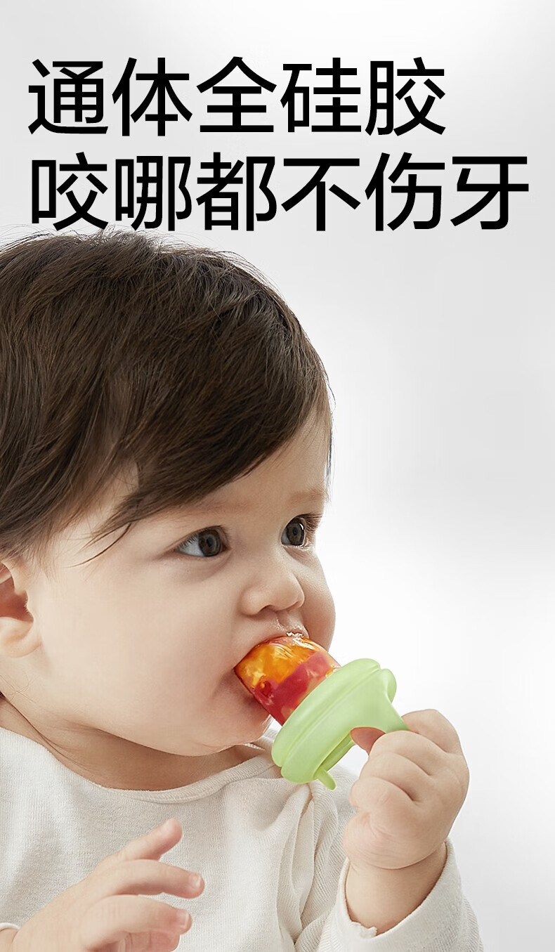 Babycare baby food fruit and vegetable bite bag silicone toy teething baby fruit food supplement with anti-falling chain winter green 2 pack
