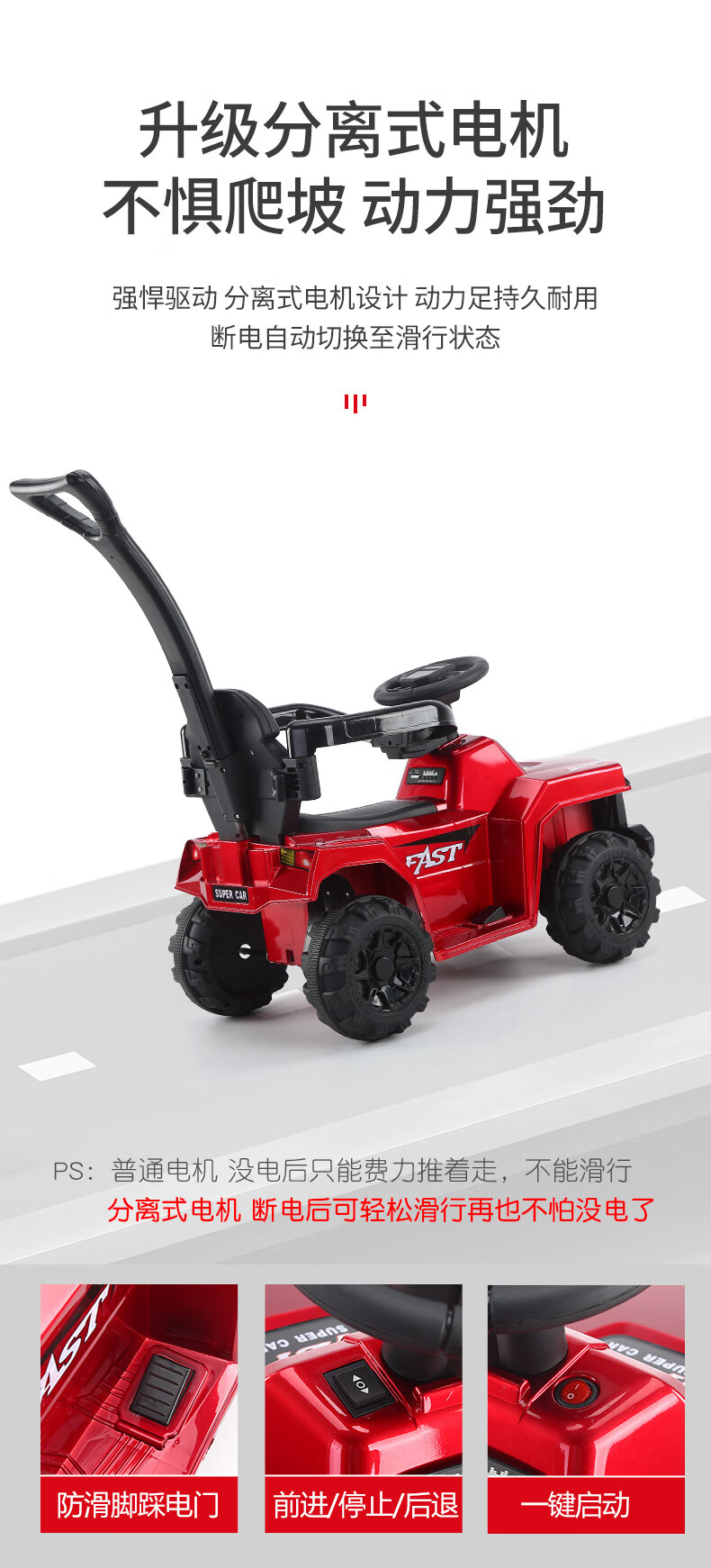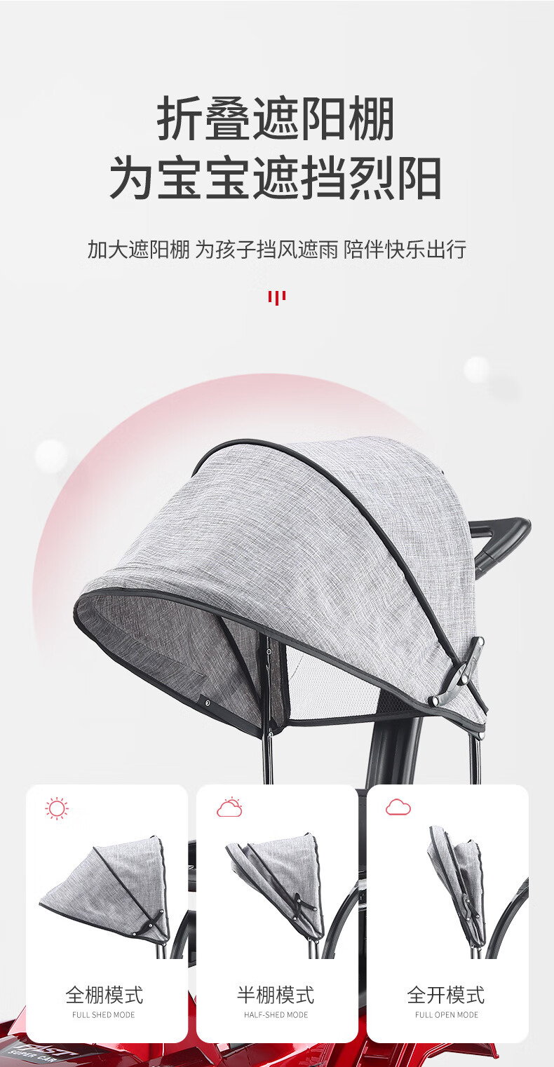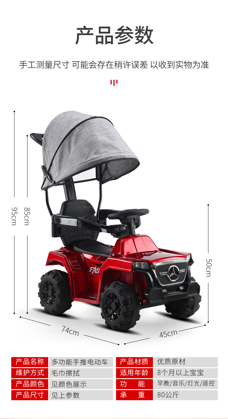 Haolewa Children's Electric Car Stroller Charging Remote Control Can Sit Men and Women Baby Toy Car Painted Red Electric Model + Hand Push + Awning + Remote Control