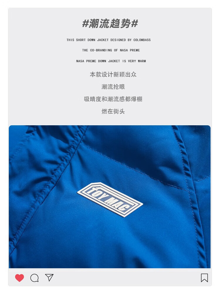 Colombass NASA trendy brand down jacket men's new winter short style men's thickened warm loose winter jacket black (upgraded) L (175) (recommended 115-130Jin Jin equals 0.5 kg)