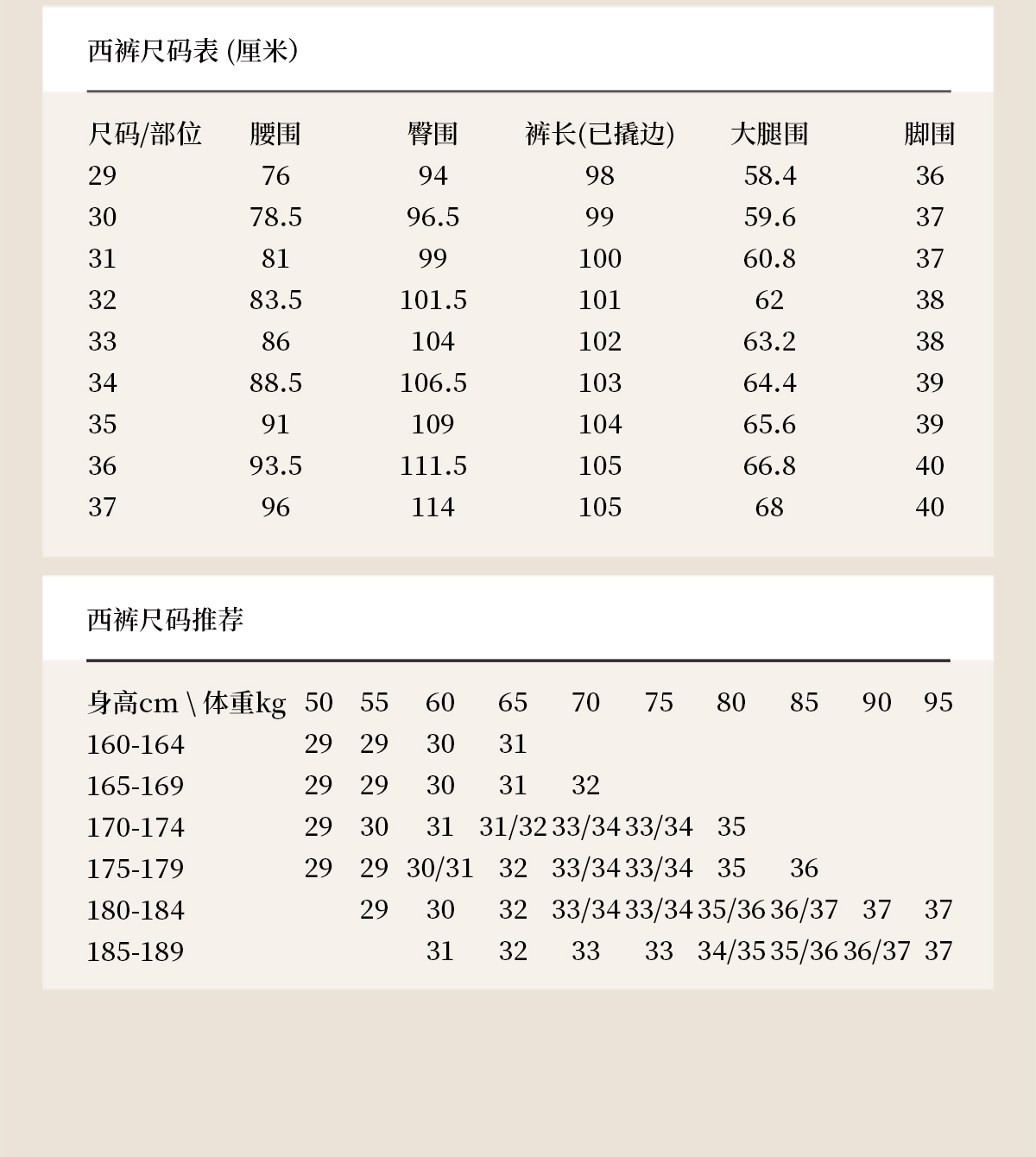 China (cm) 160-165/84-86 165-170 / 88-90 167-172 / 92-96 168-173 / 98-102 170-176 / 106-110