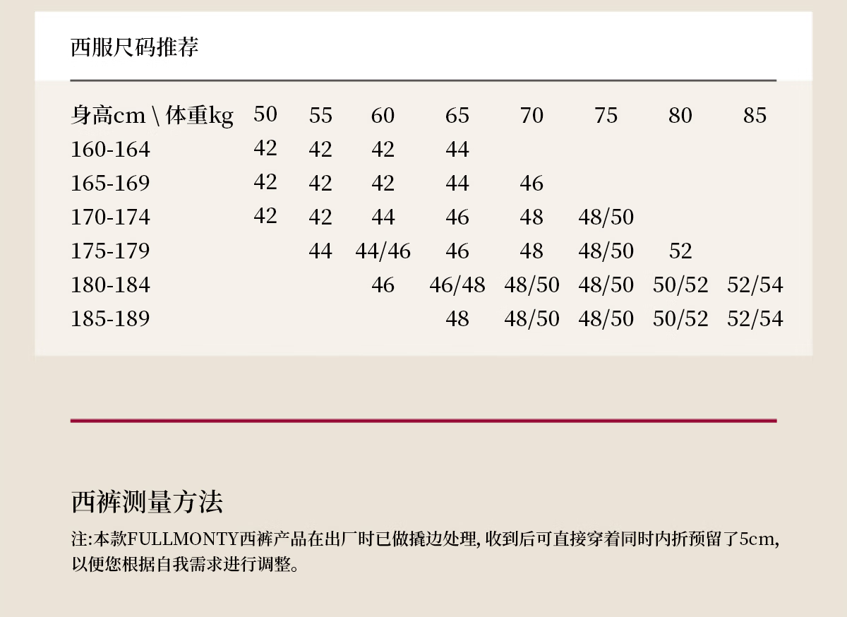 China (cm) 165 / 88-90 170 / 96-98 175 / 108-110 180 / 118-122 185 / 126-130