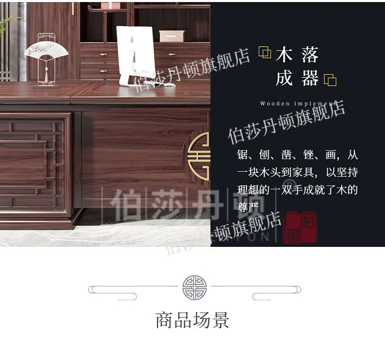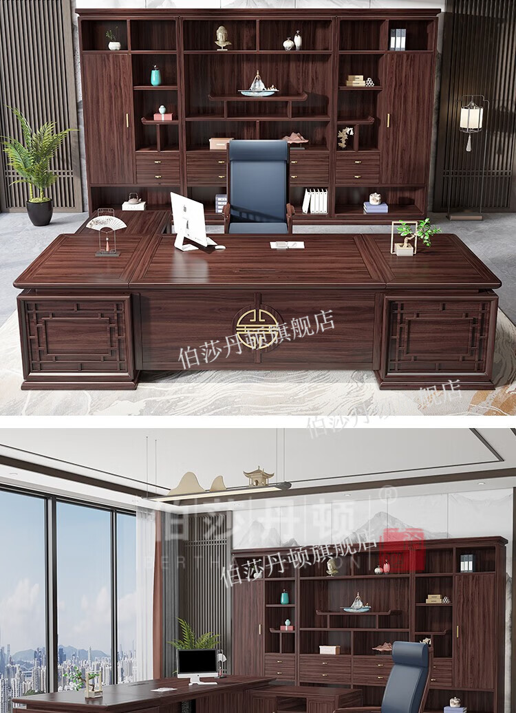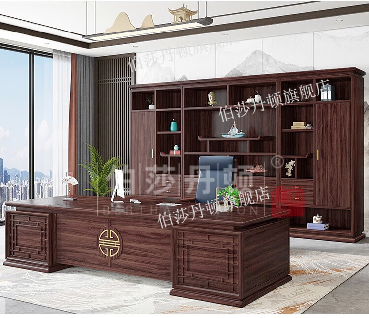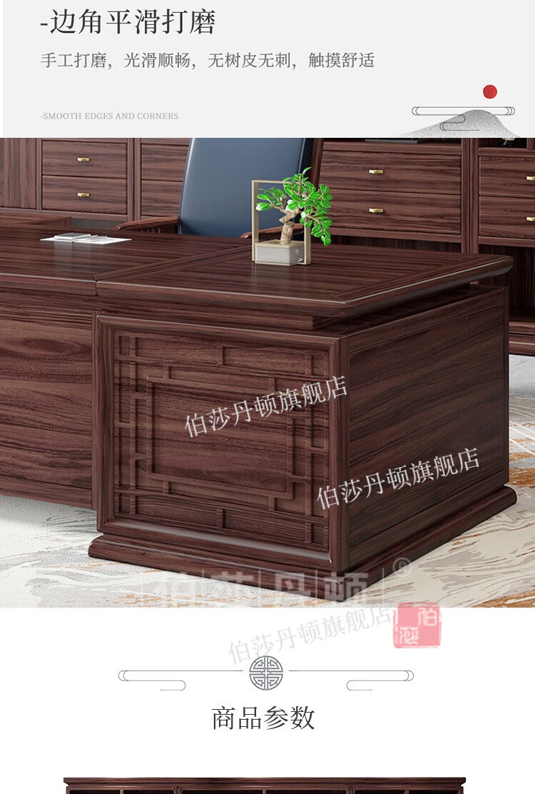 BERTHA DENTON New Chinese style solid wood boss desk office desk and chair combination CEO office furniture ebony wood custom executive desk ebony wood 2.4 meters boss desk