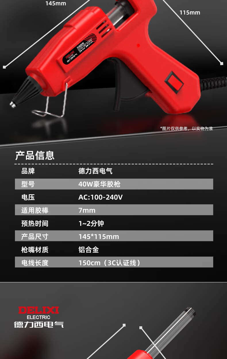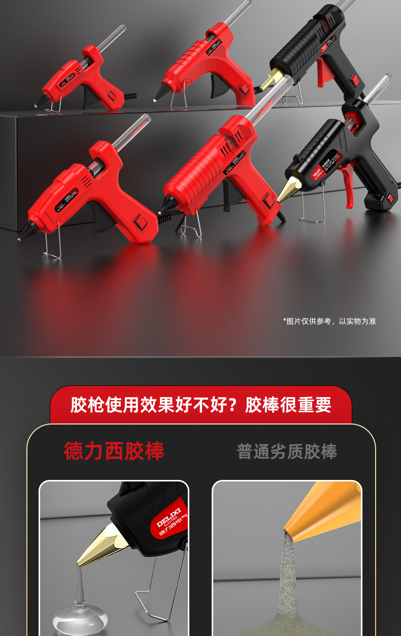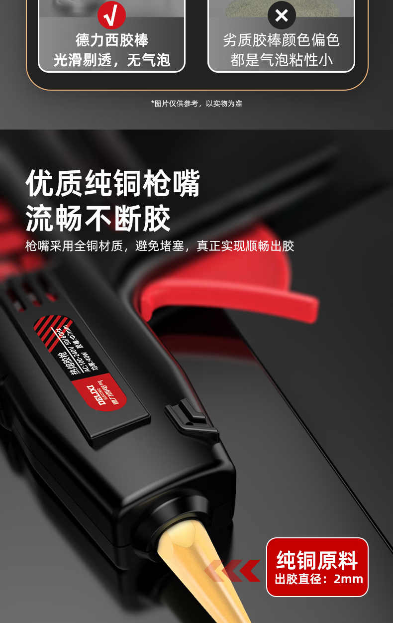 DELIXI ELECTRIC Delixi hot melt glue gun high-power household temperature-adjustable hot glue gun children's handmade hot melt gun hot melt glue stick 40W luxury glue gun + 10 glue sticks