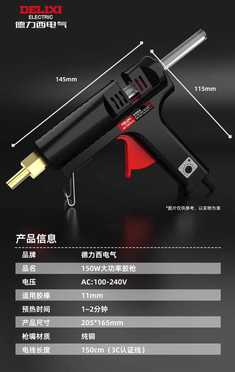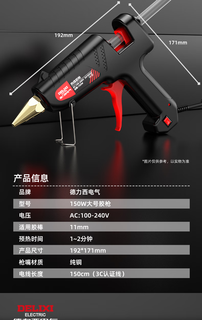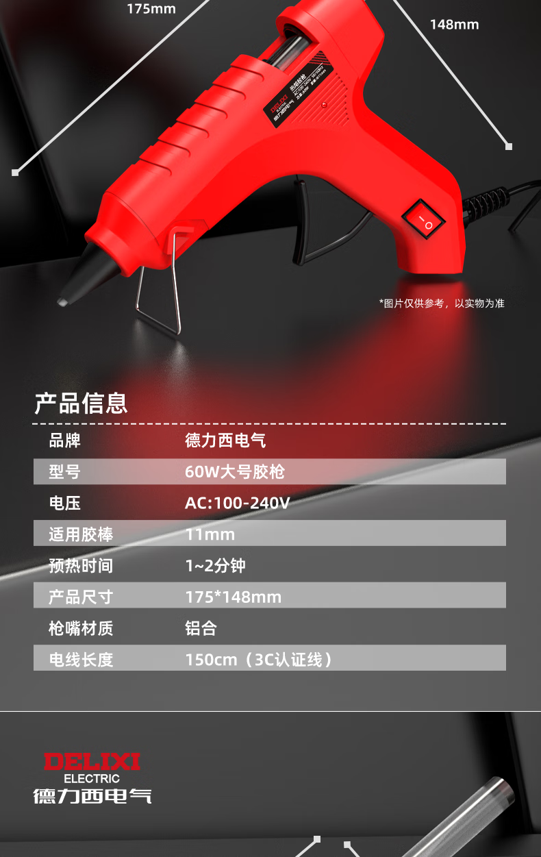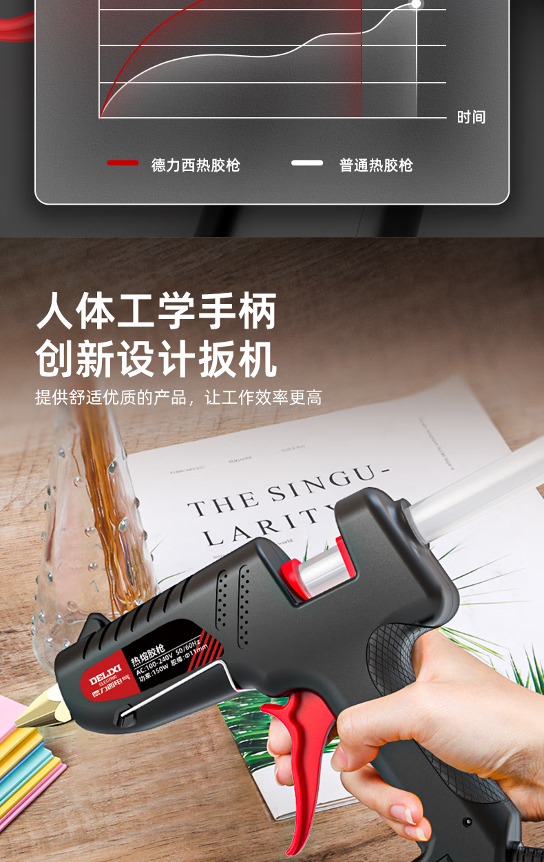 DELIXI ELECTRIC Delixi hot melt glue gun high-power household temperature-adjustable hot glue gun children's handmade hot melt gun hot melt glue stick 40W luxury glue gun + 10 glue sticks